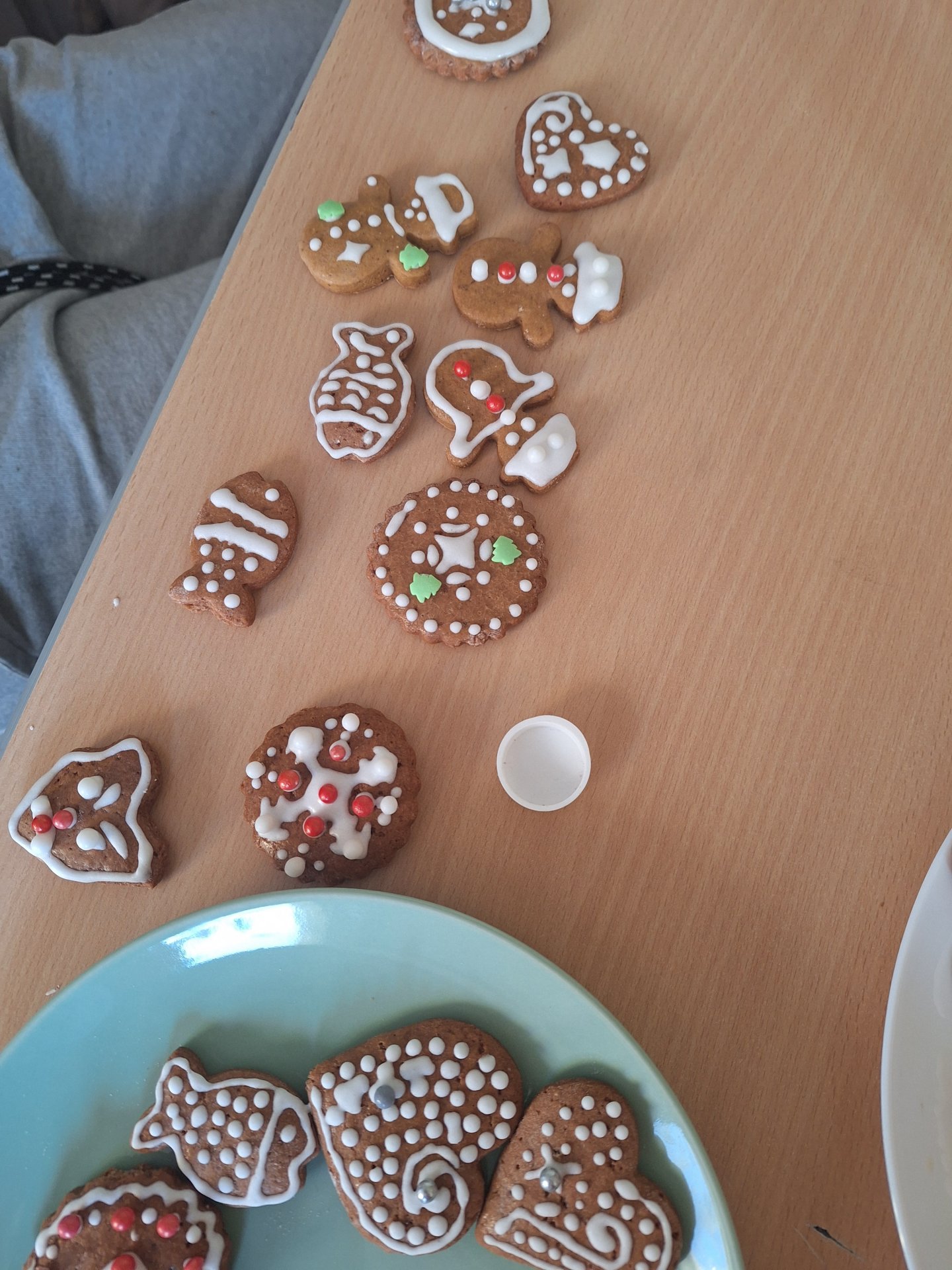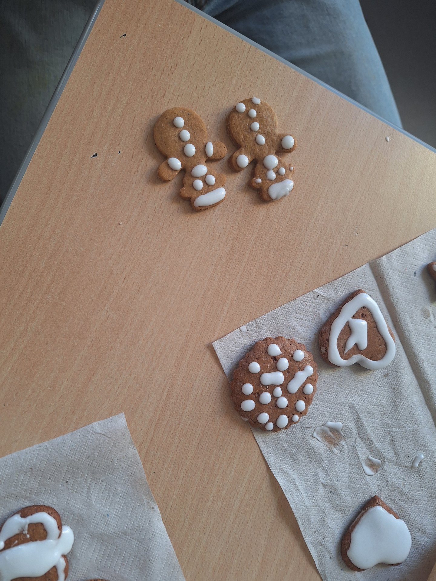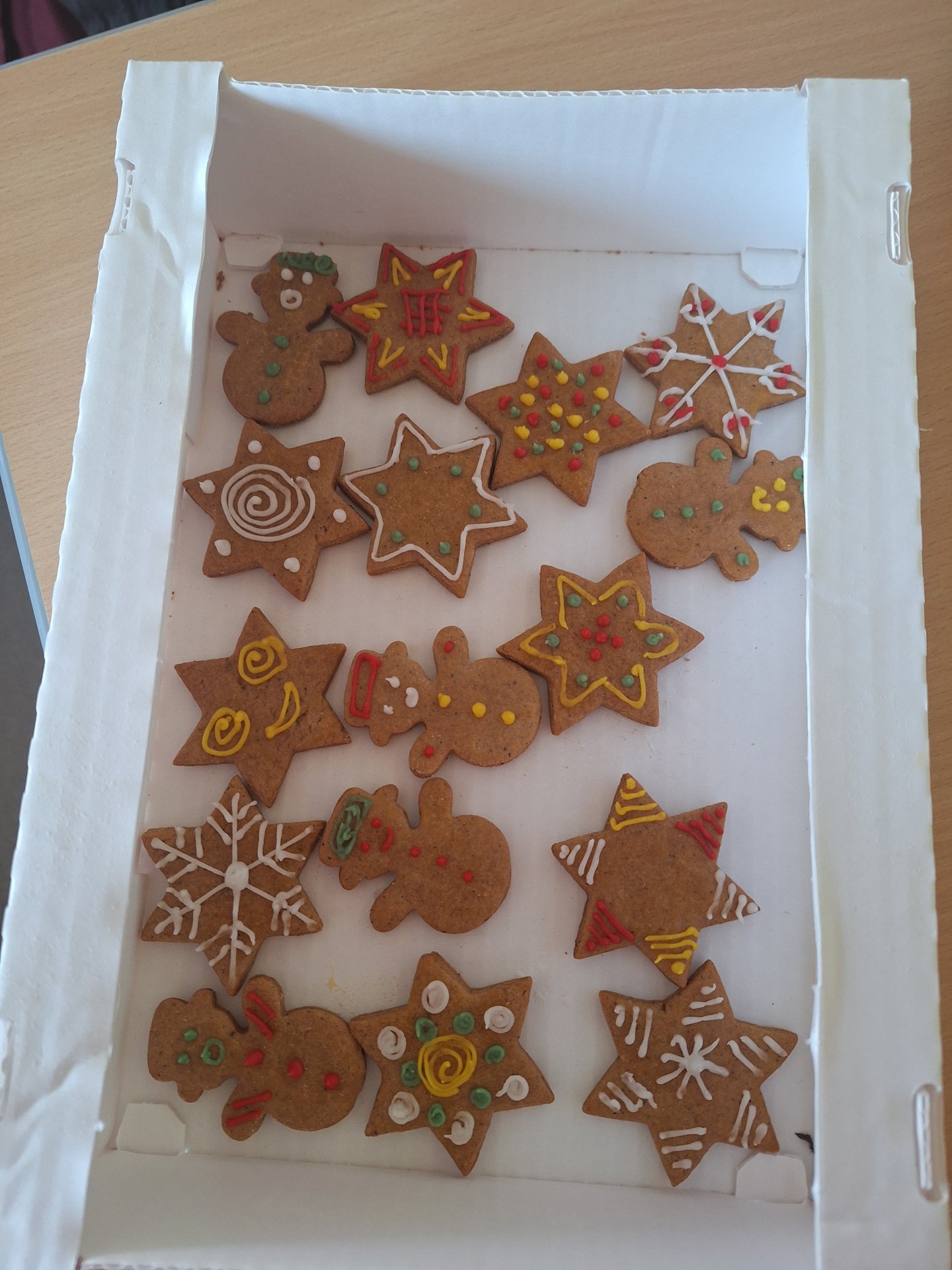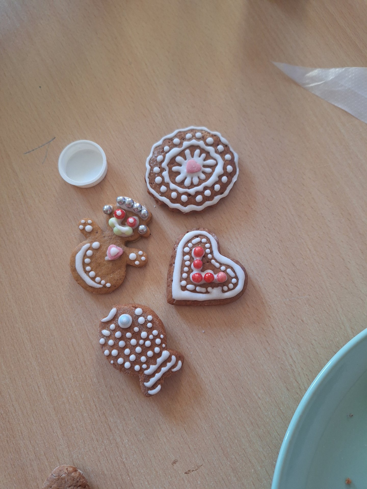 I v předmětu "vaření" probíhají přípravy na Vánoce. Před 2 týdny jsme ve školní cvičné kuchyni napekli perníčky a ve čtvrtek jsme je zdobili. Vyrobili jsme si polevu z bílků a cukru a použili jednorázové sáčky. Někteří si přinesli své zdobení. Myslím, že se dílo povedlo. Perníčky byly nejen hezké, ale i chutné a tak jich do Vánoc moc nevydrželo. J. Horníčková