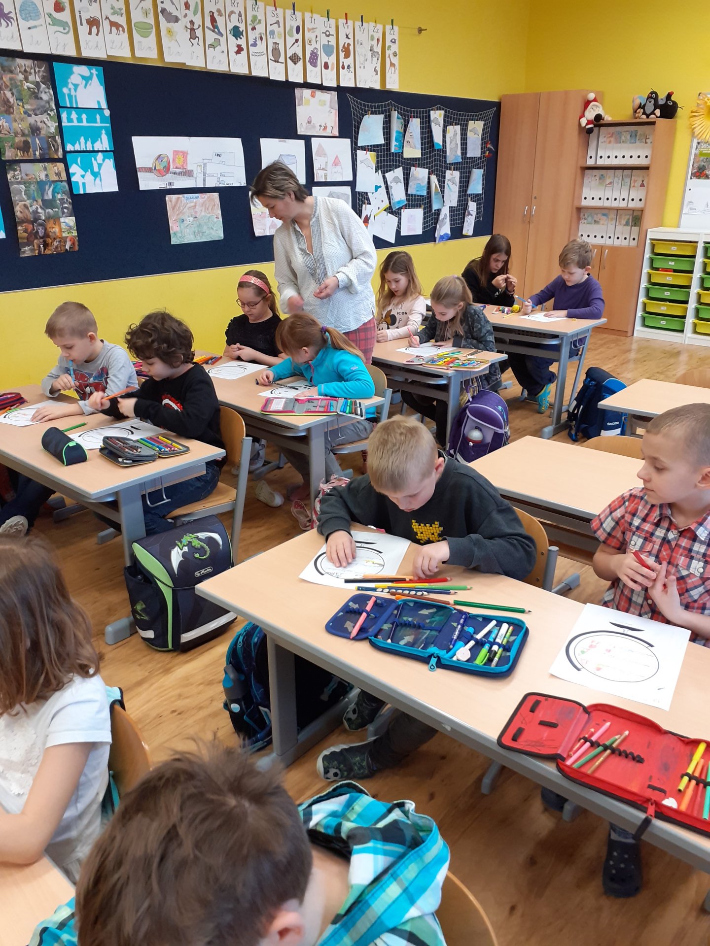 V lednu jsme si sněhuláky vyrobili, domečky si zasněžili, o snížku si zazpívali, ale zatím se ho nedočkali. Posuďte sami, jak se nám obrázky podařily.