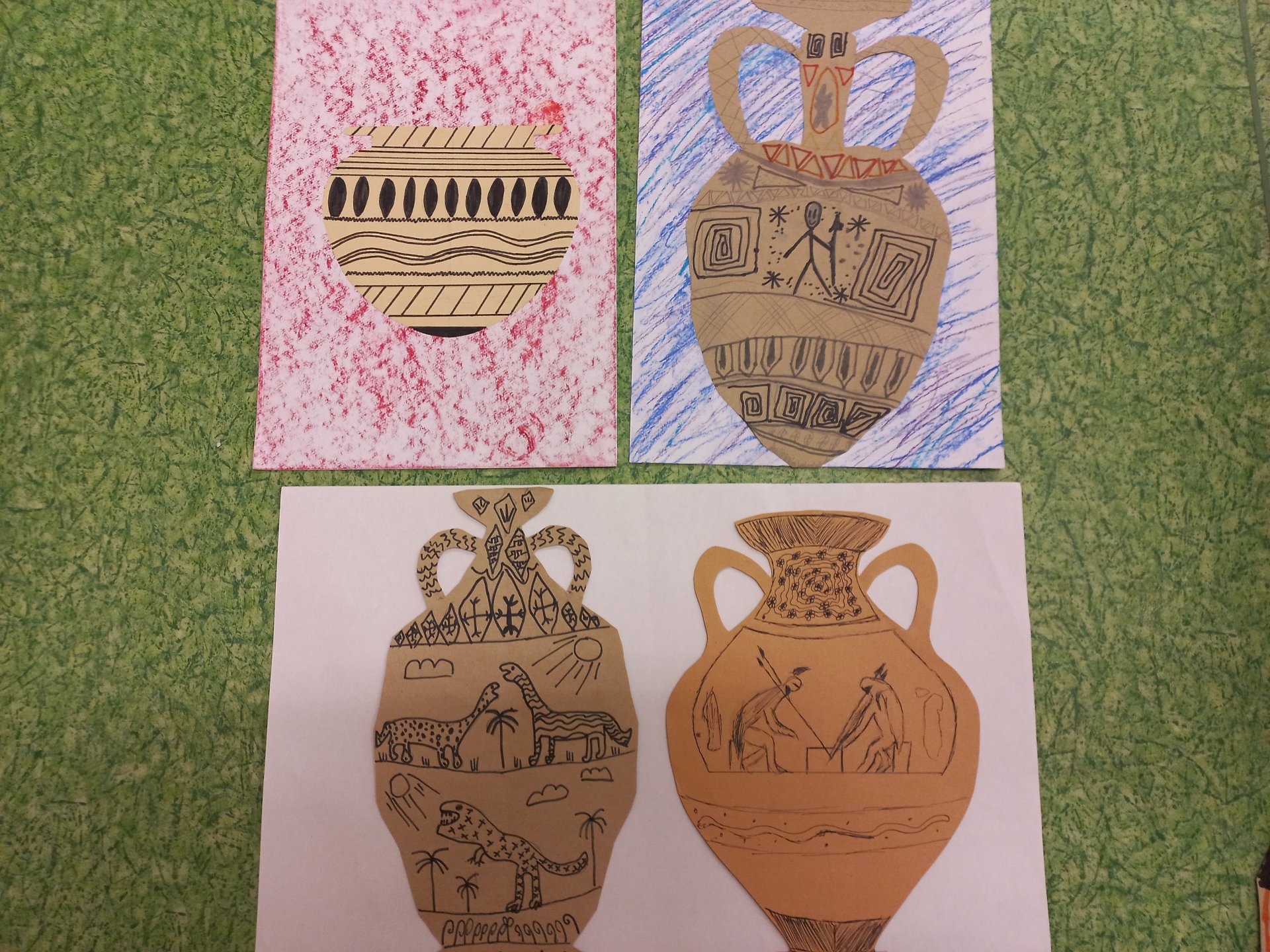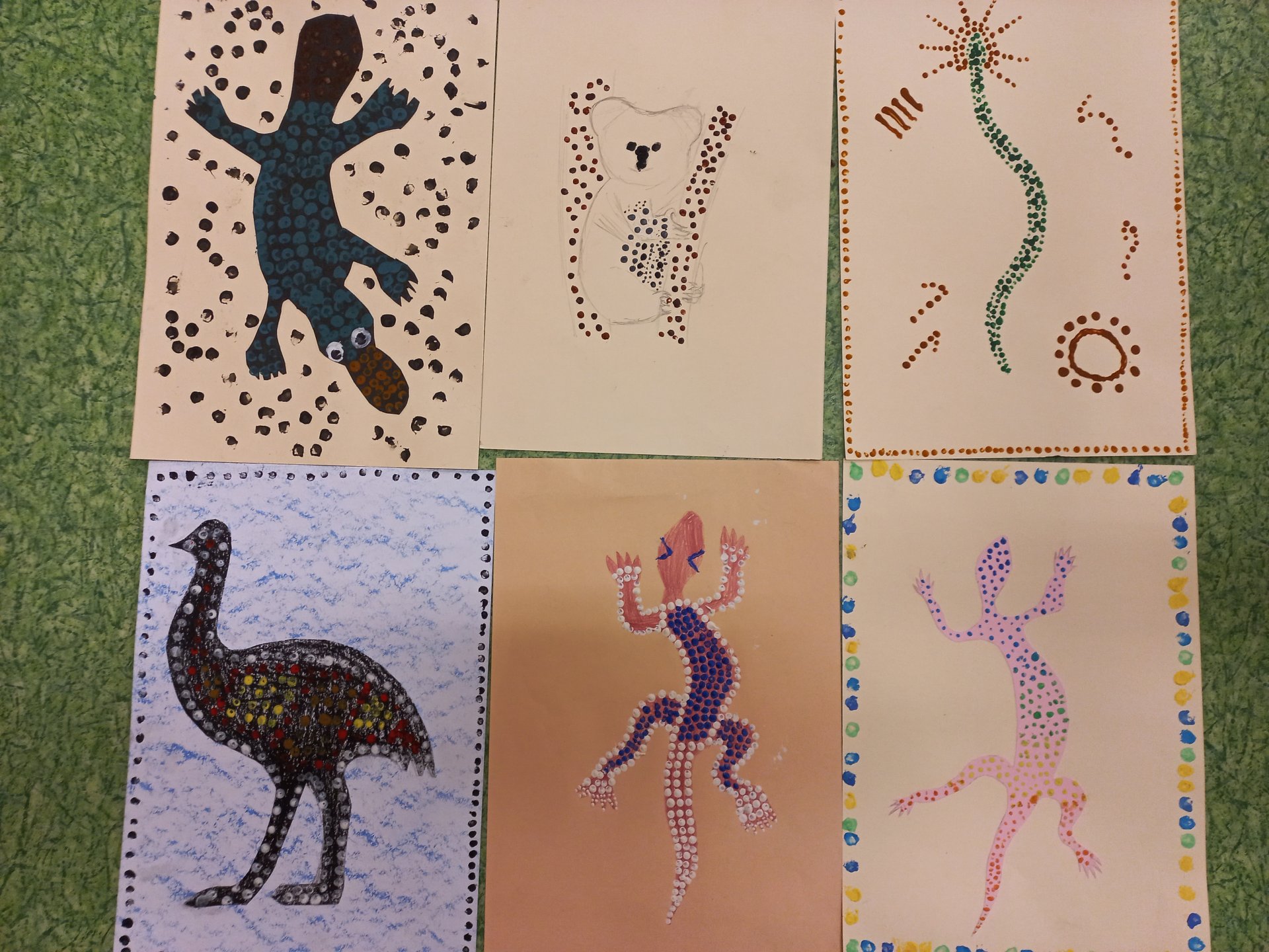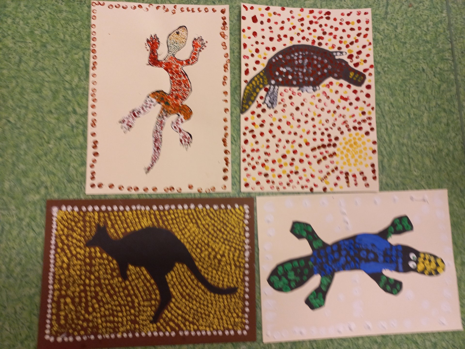 V listopadu si děti zkoušely tečkovanou techniku na tématu “Umění Aboriginců”, poté jsme se přesunuli do Řecka, kdy děti kreslily řeckou keramiku. Dalším tématem byly pravěké jeskynní malby - vytváření šablon a tupování houbičkou. Listopad jsme zakončili vytvářením prostorových luceren. Děti také malovaly lucerny na papír.
