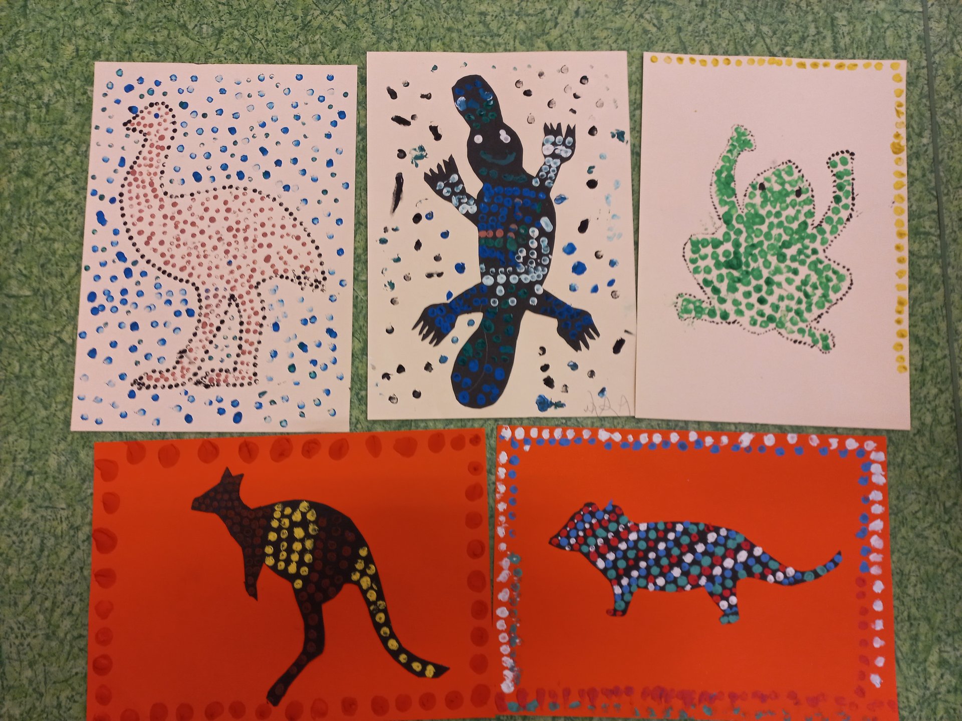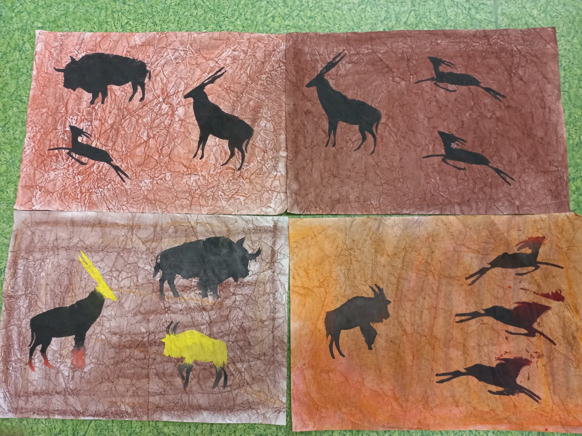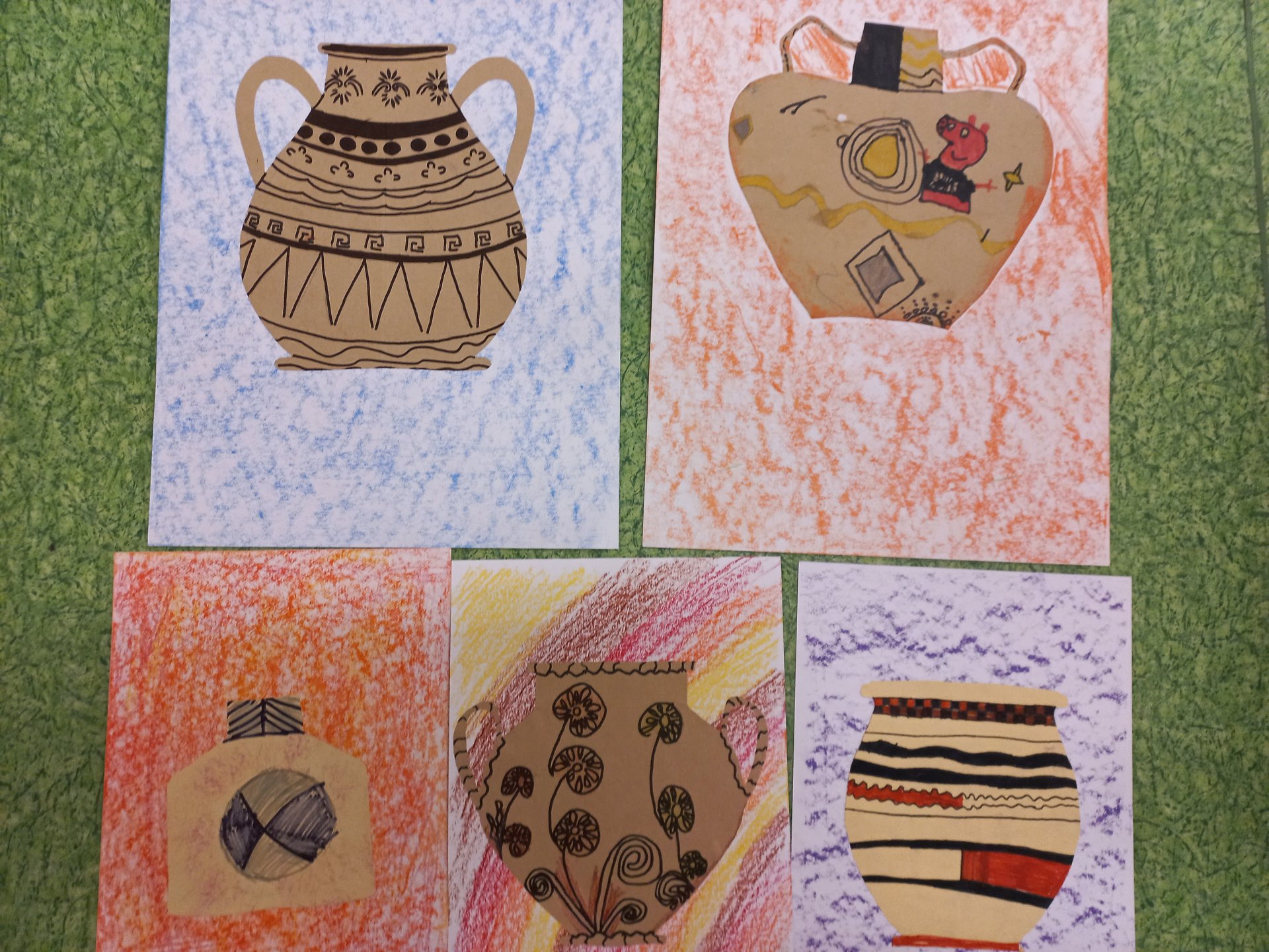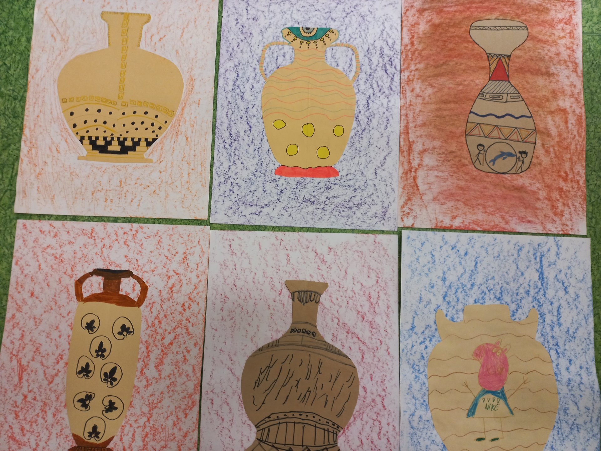 V listopadu si děti zkoušely tečkovanou techniku na tématu “Umění Aboriginců”, poté jsme se přesunuli do Řecka, kdy děti kreslily řeckou keramiku. Dalším tématem byly pravěké jeskynní malby - vytváření šablon a tupování houbičkou. Listopad jsme zakončili vytvářením prostorových luceren. Děti také malovaly lucerny na papír.