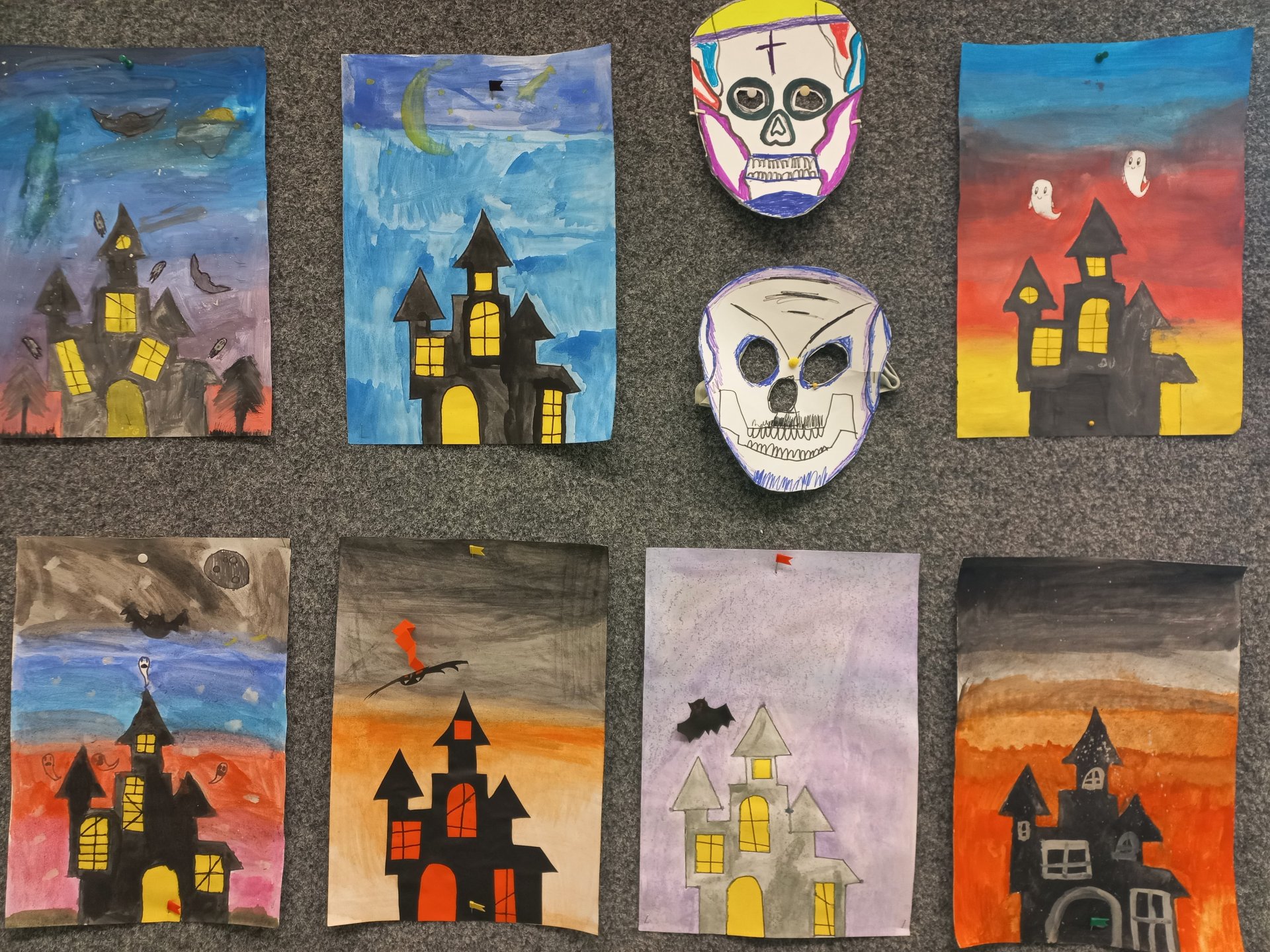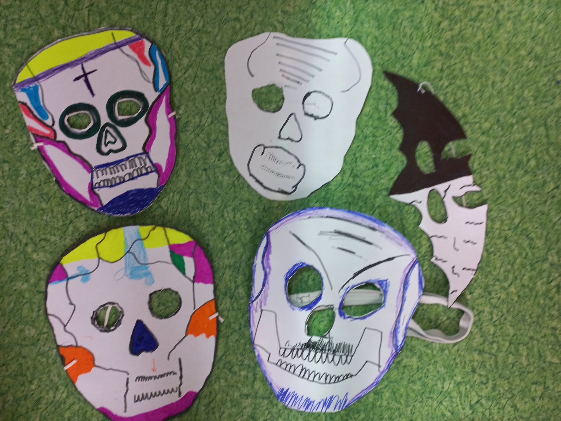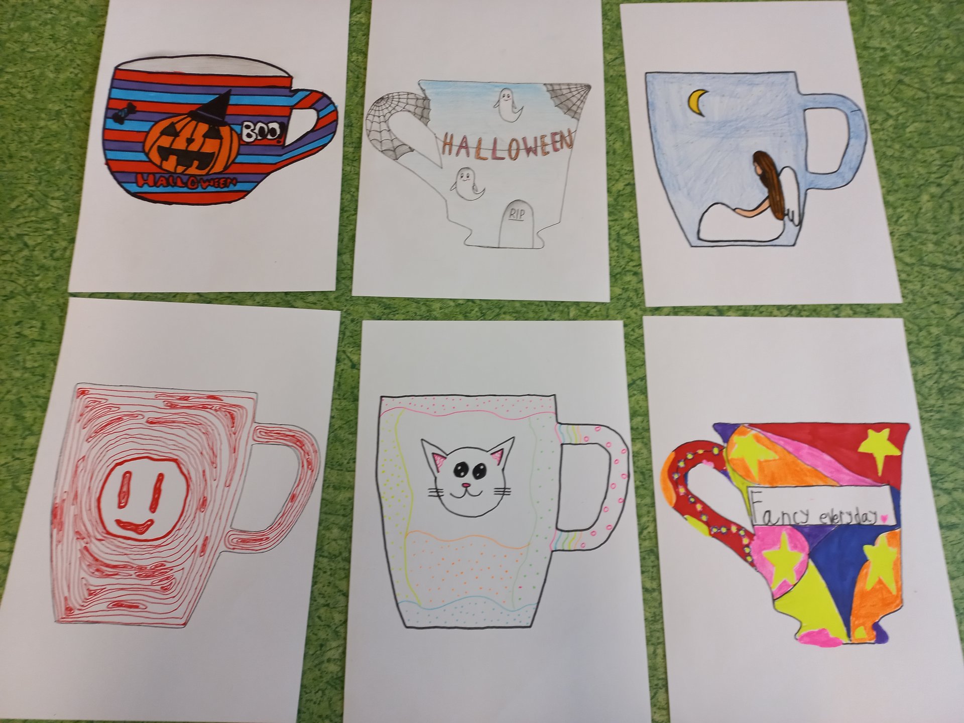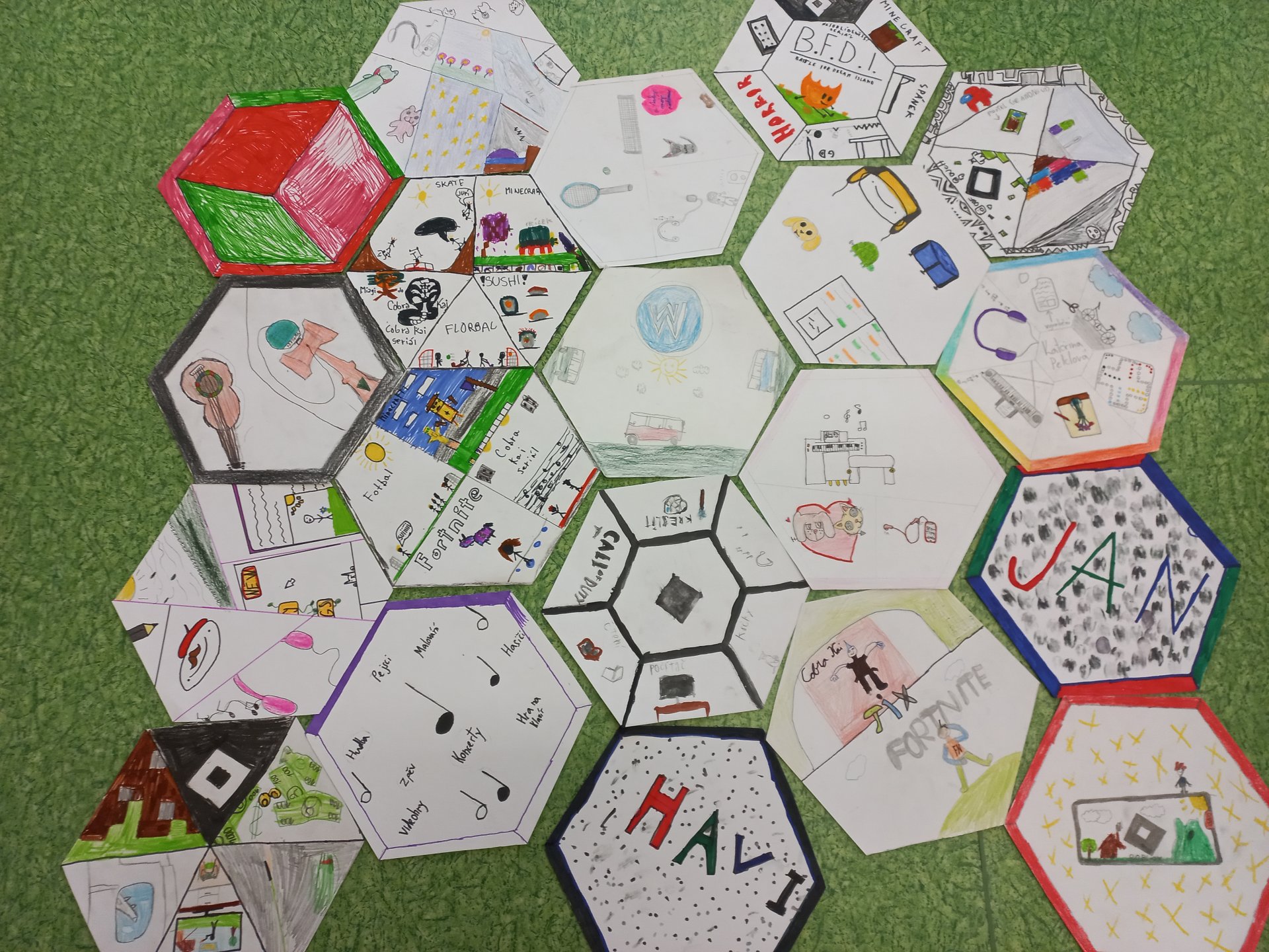 Výtvarnou výchovu jsme zahájili vzájemným seznámením. Děti vytvářely společenství své třídy - každý do jedné plástve nakreslil to, co ho charakterizuje. Poté jsme se věnovali malbě ovoce (téma “Ovoce ve spleti čar”). Pokračovali jsme kresbou / malbou podzimních listů. Také se všichni zúčastnili mezitřídní soutěže - kreativní návrh na hrnek nebo konvici. Věnovali jsme se skupinové práci na téma “Vesmír”. Zároveň si děti vyzkoušely jednoduchou animaci v programu Stop motion studio. Říjen jsme zakončili tvořením k Halloweenu a vytvářením masek.