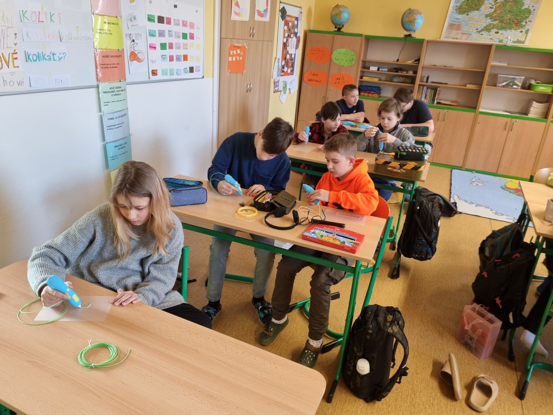 Žáci si během výtvarné výchovy vyzkoušeli používání nových 3D per. Moc je to bavilo.