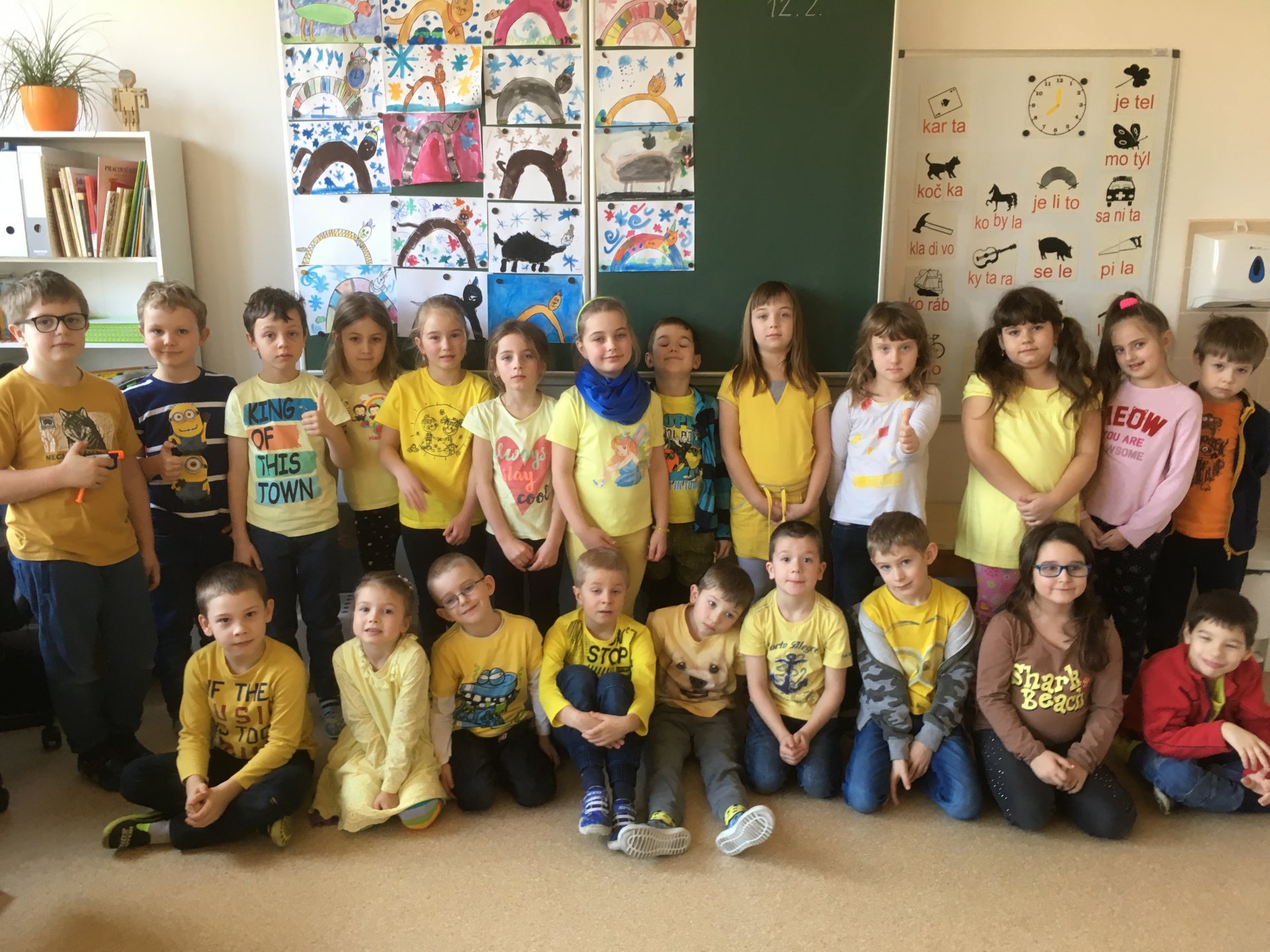 ÚTERÝ - skutečnost: 68 kusů žlutého oblečení. Jsme dobří ! Našli jsme více žlutých věcí, než jsme předpokládali!