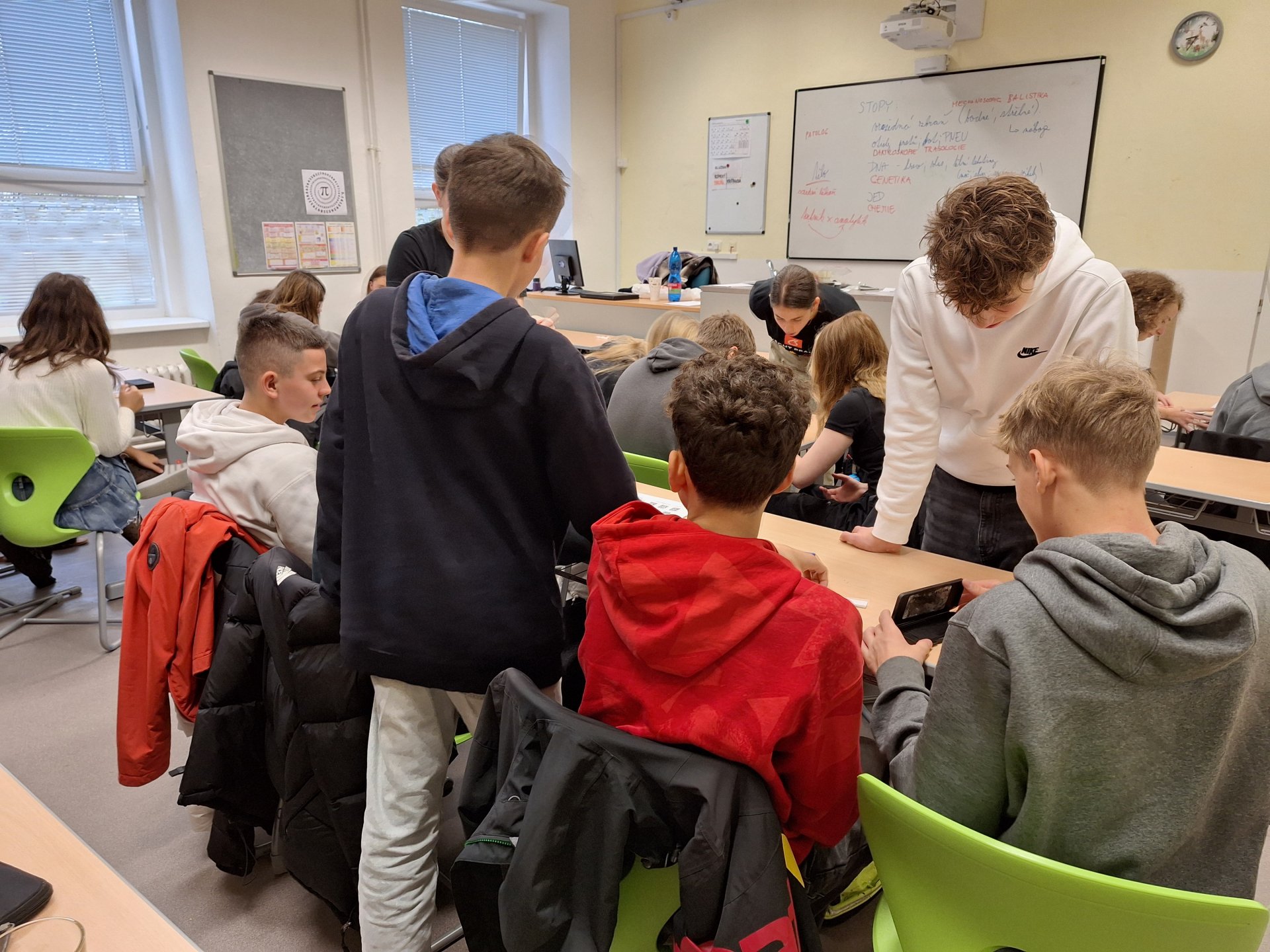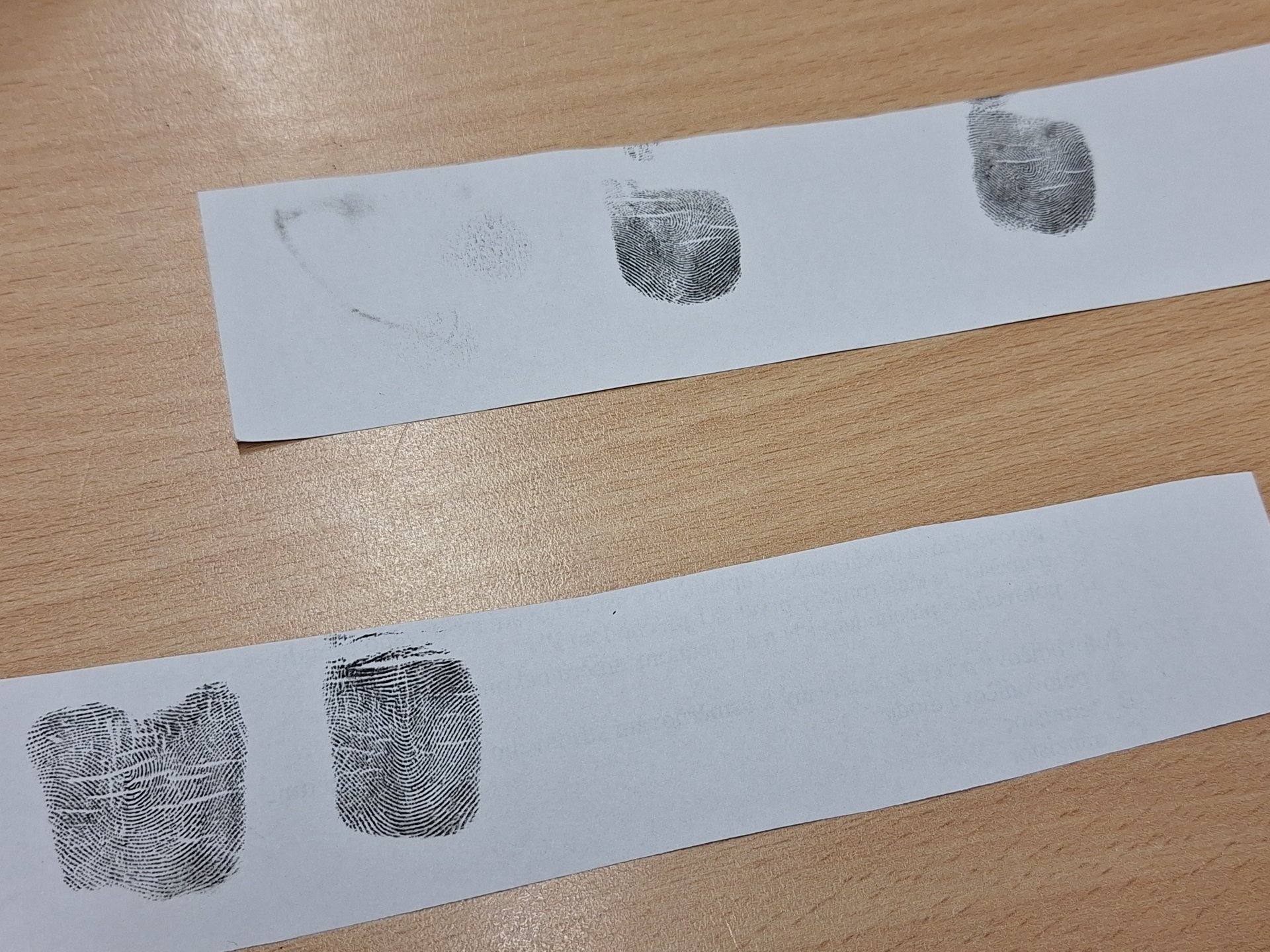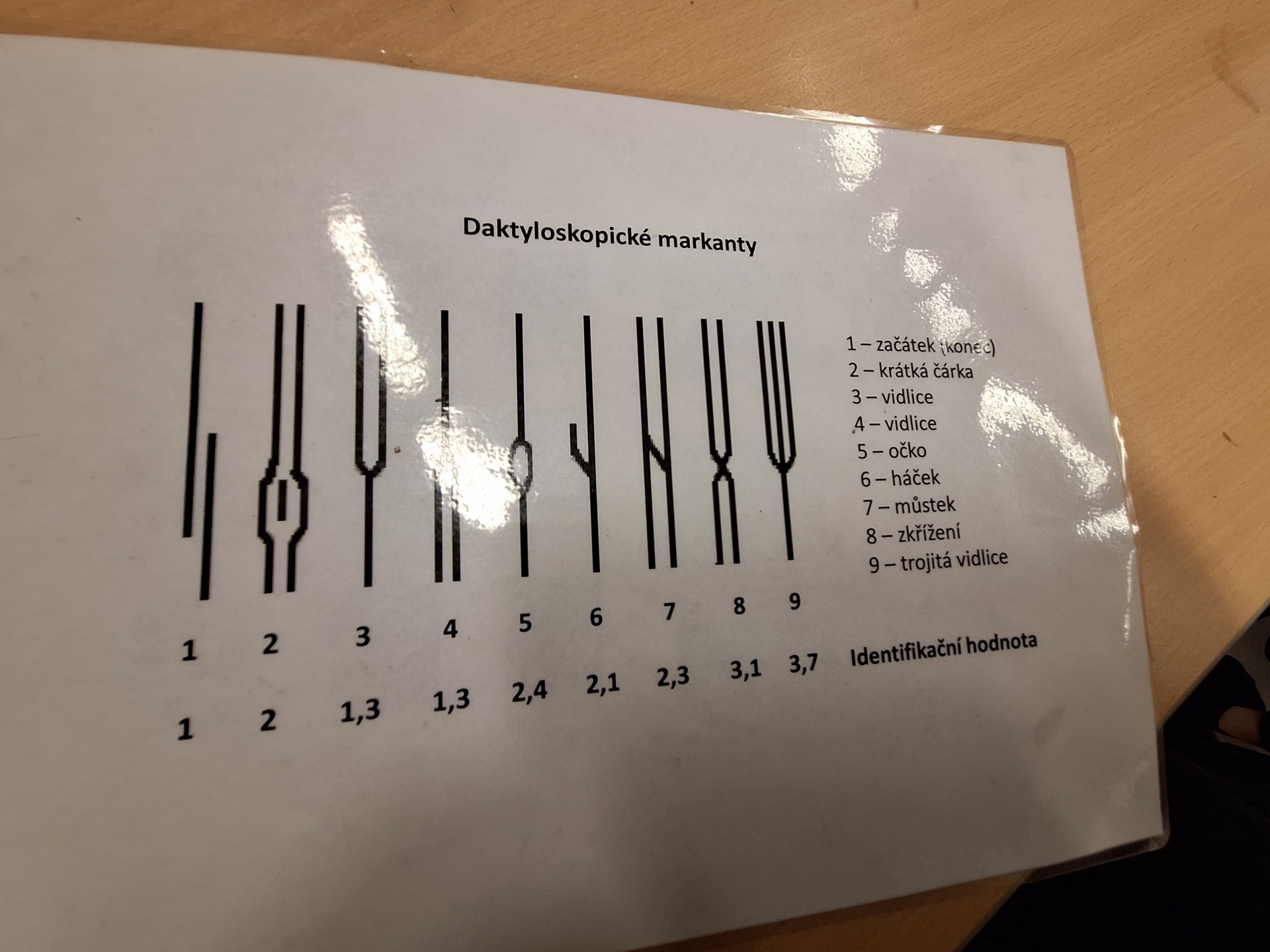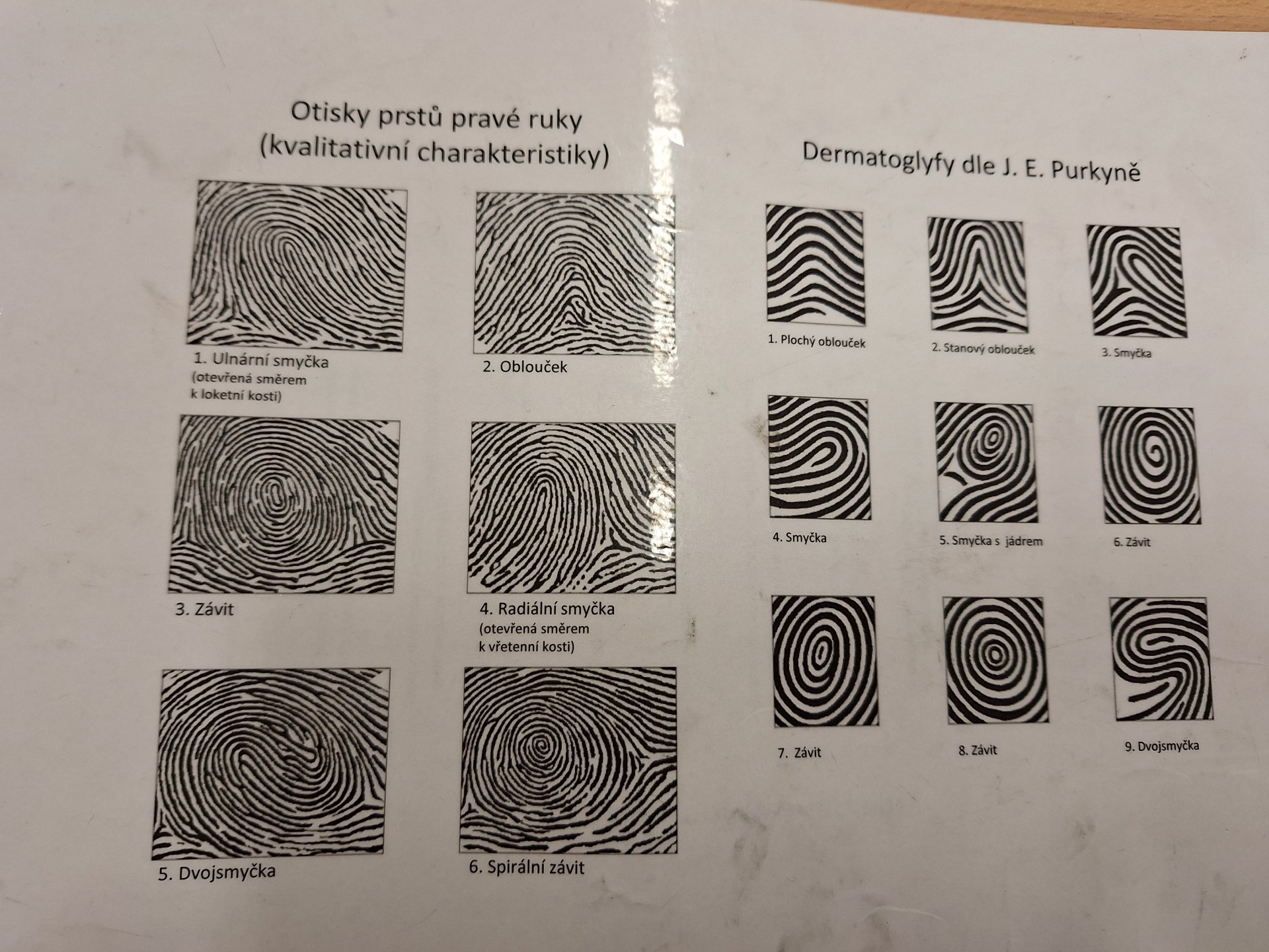 V pátek 8.11. zavítali již po několikáté do hodin chemie studenti z VŠCHT, aby nás blíže seznámili s vědou nazývanou forenzní analýza. Dozvěděli jsme se, jaké stopy lze nalézt na místě trestného činu, jak je objevit a uchovat pro pozdější vyšetřování, co bývá v detektivkách špatně. Podrobněji jsme se zaměřili na daktyloskopii, zhotovili jsme otisky našich palců a vyhodnotili je podle daktyloskopických markantů. Tak se zase příští rok těšíme na další témata z chemie. J. Horníčková