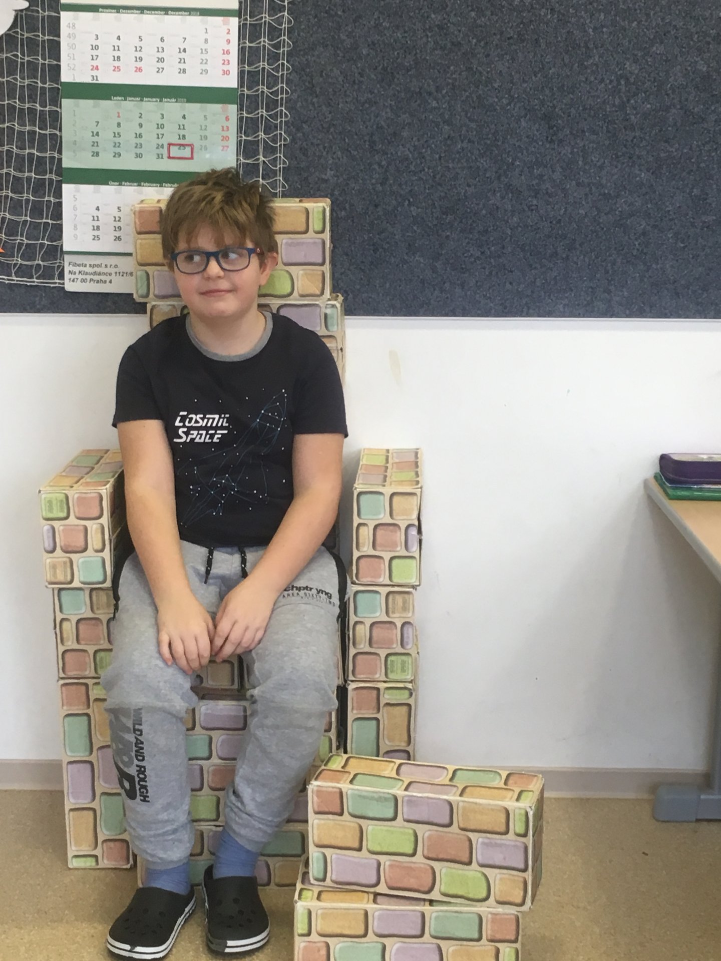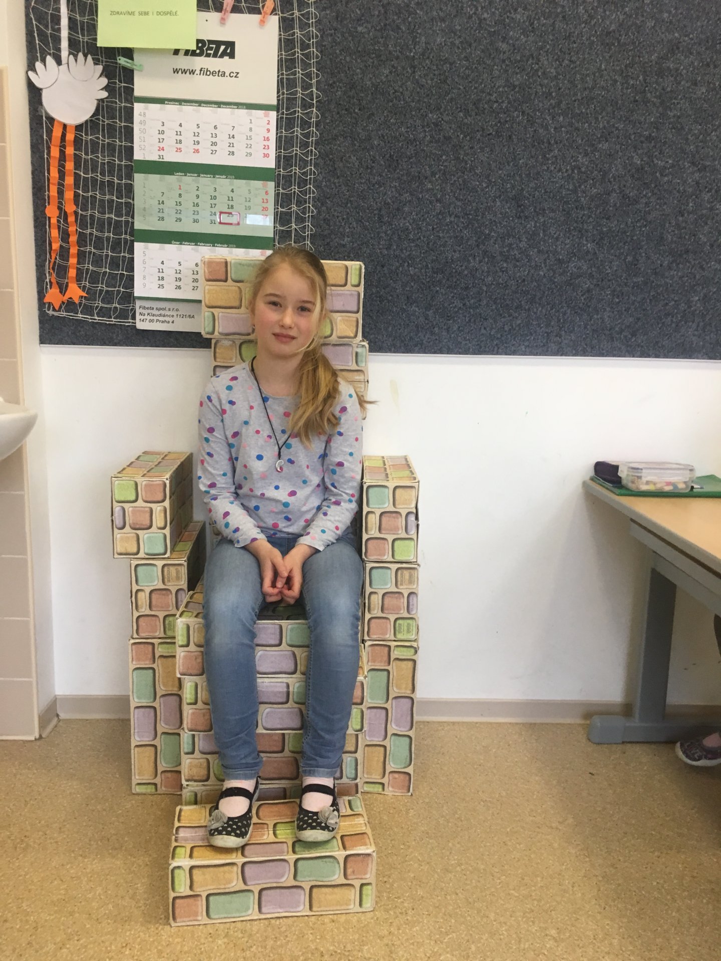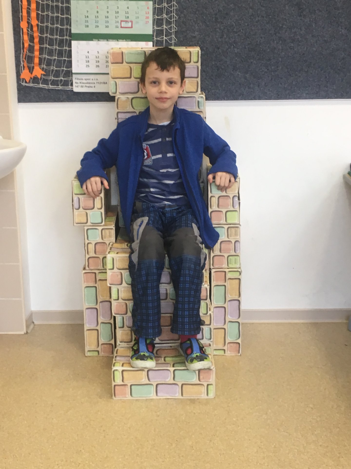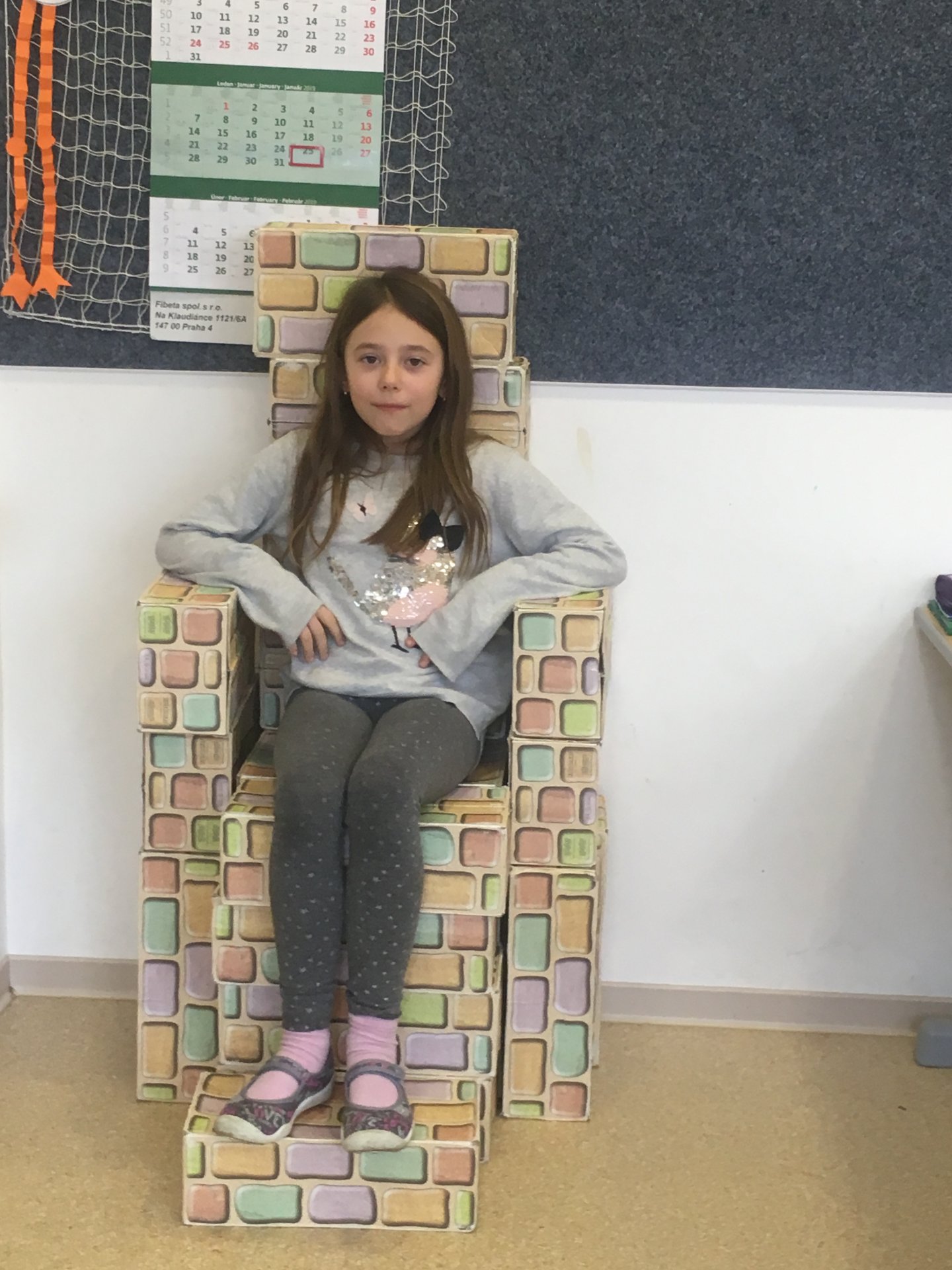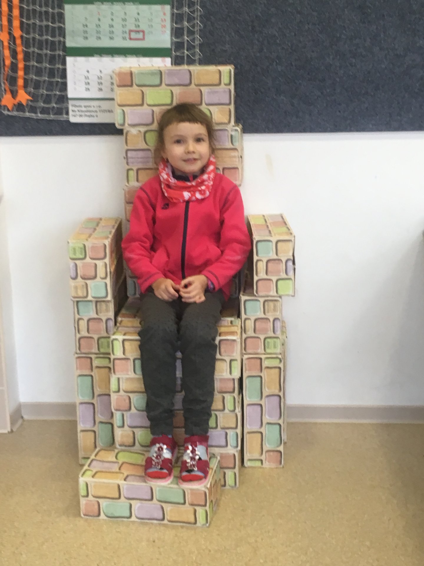 Z našich cihliček vznikají díky architektům z 2.A různé stavby. Tentokrát to bylo křeslo. Shodli jsme se na tom, že vypadá jako královské.