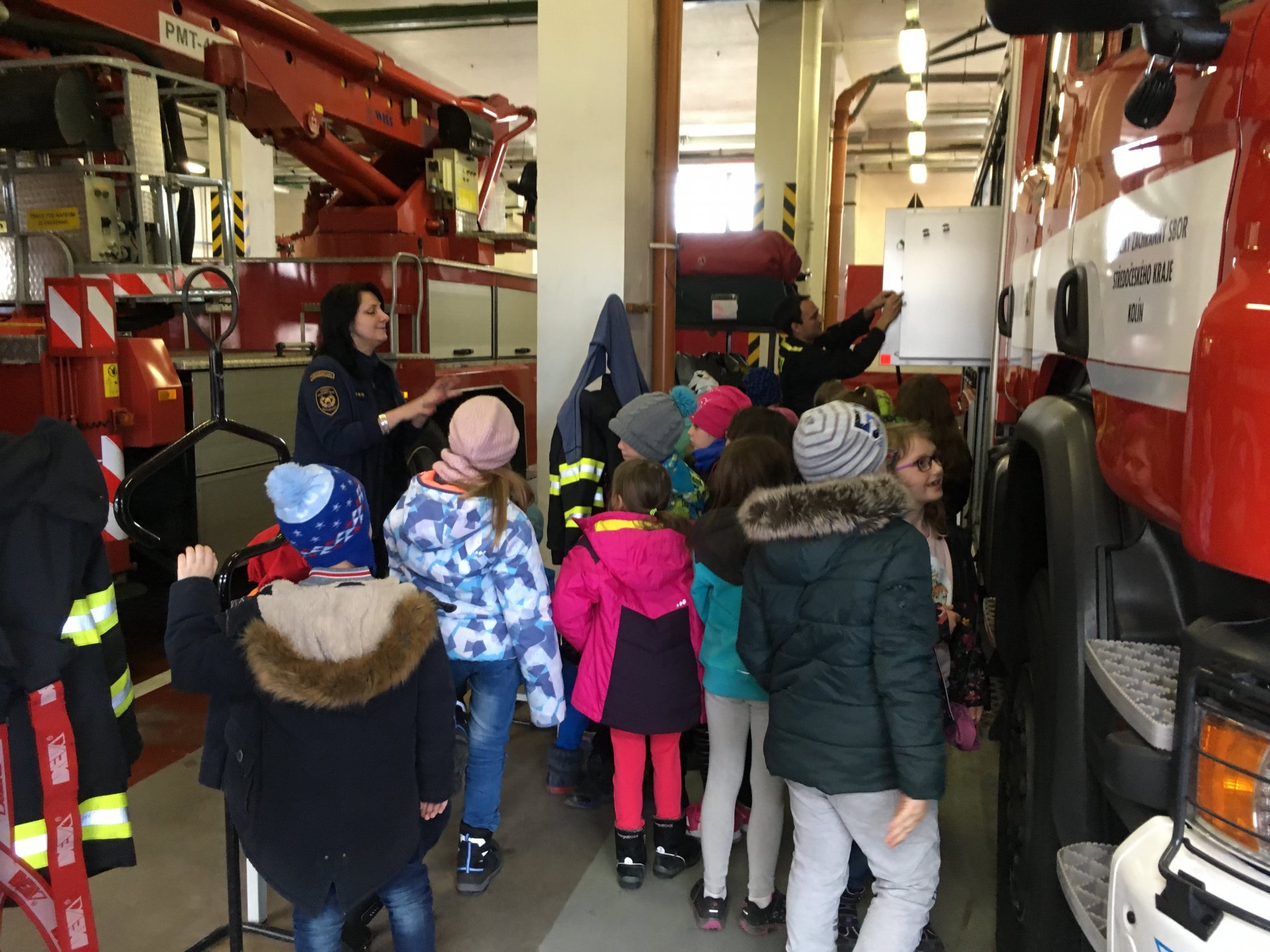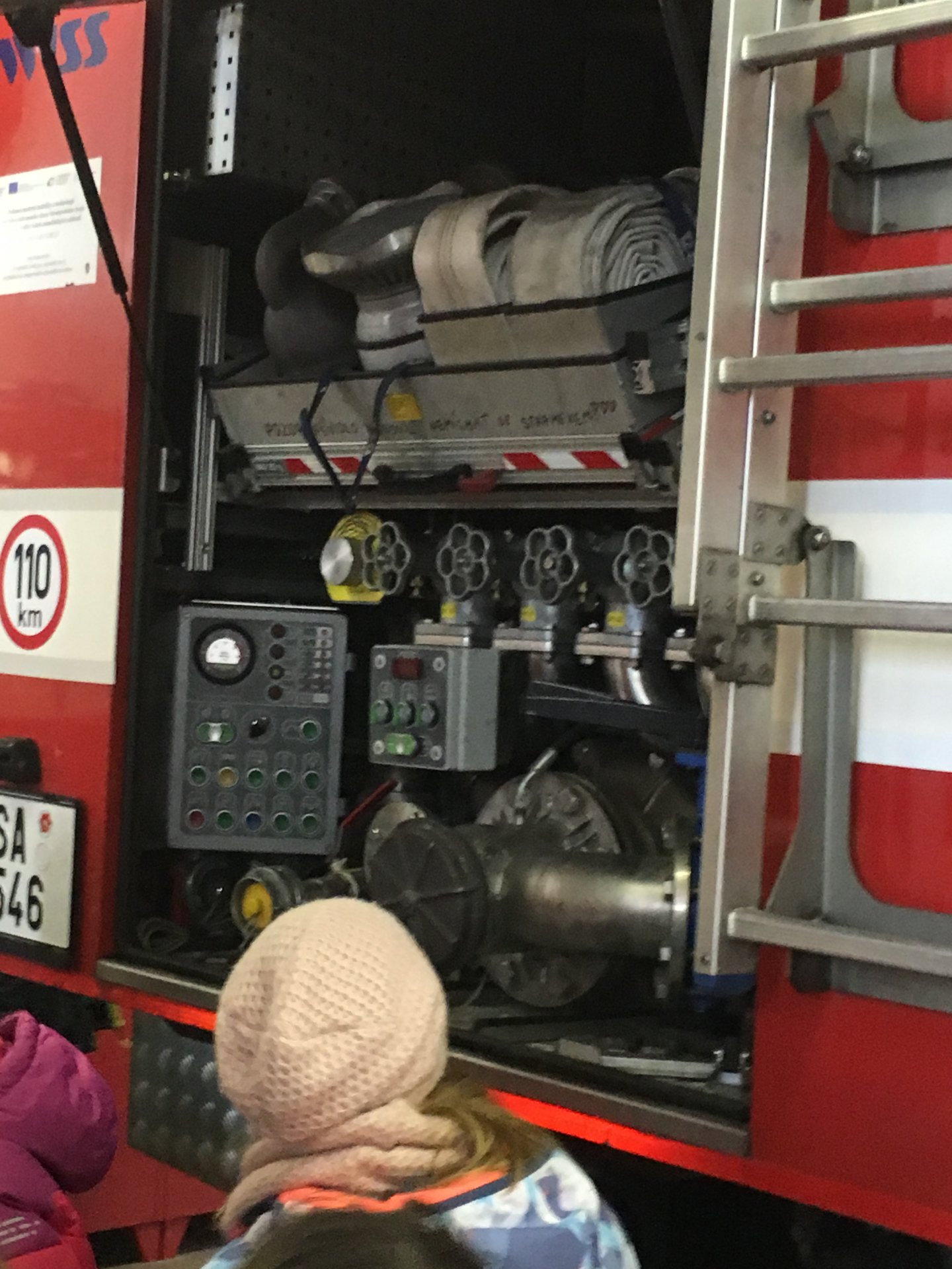 Ukázali nám auta, jejich vybavení, předvedli nám, jak při poplachu sjíždějí dolů po tyči. Mohli jsme nahlédnout dokonce do jejich kuchyně i odpočinkových prostor.