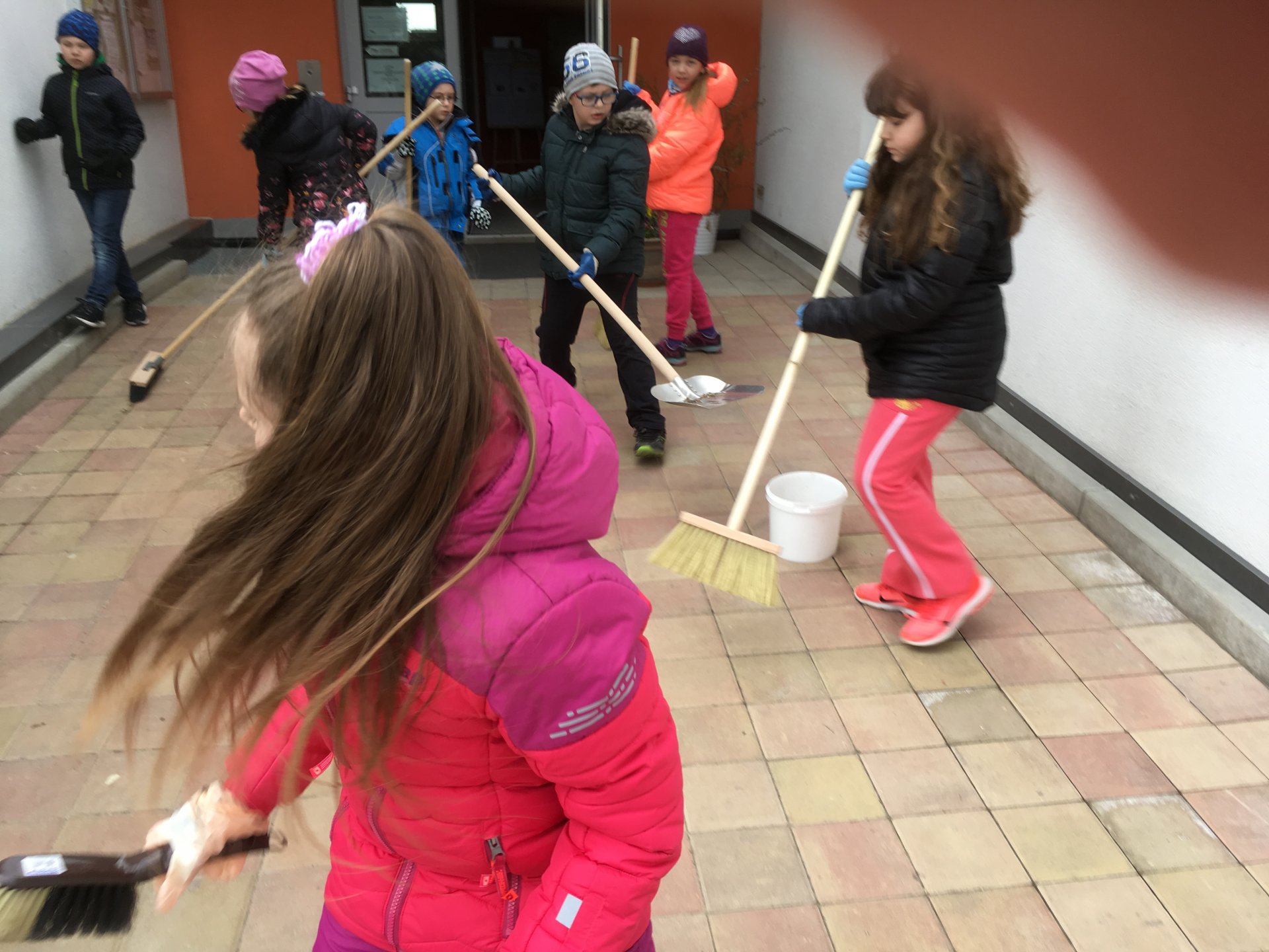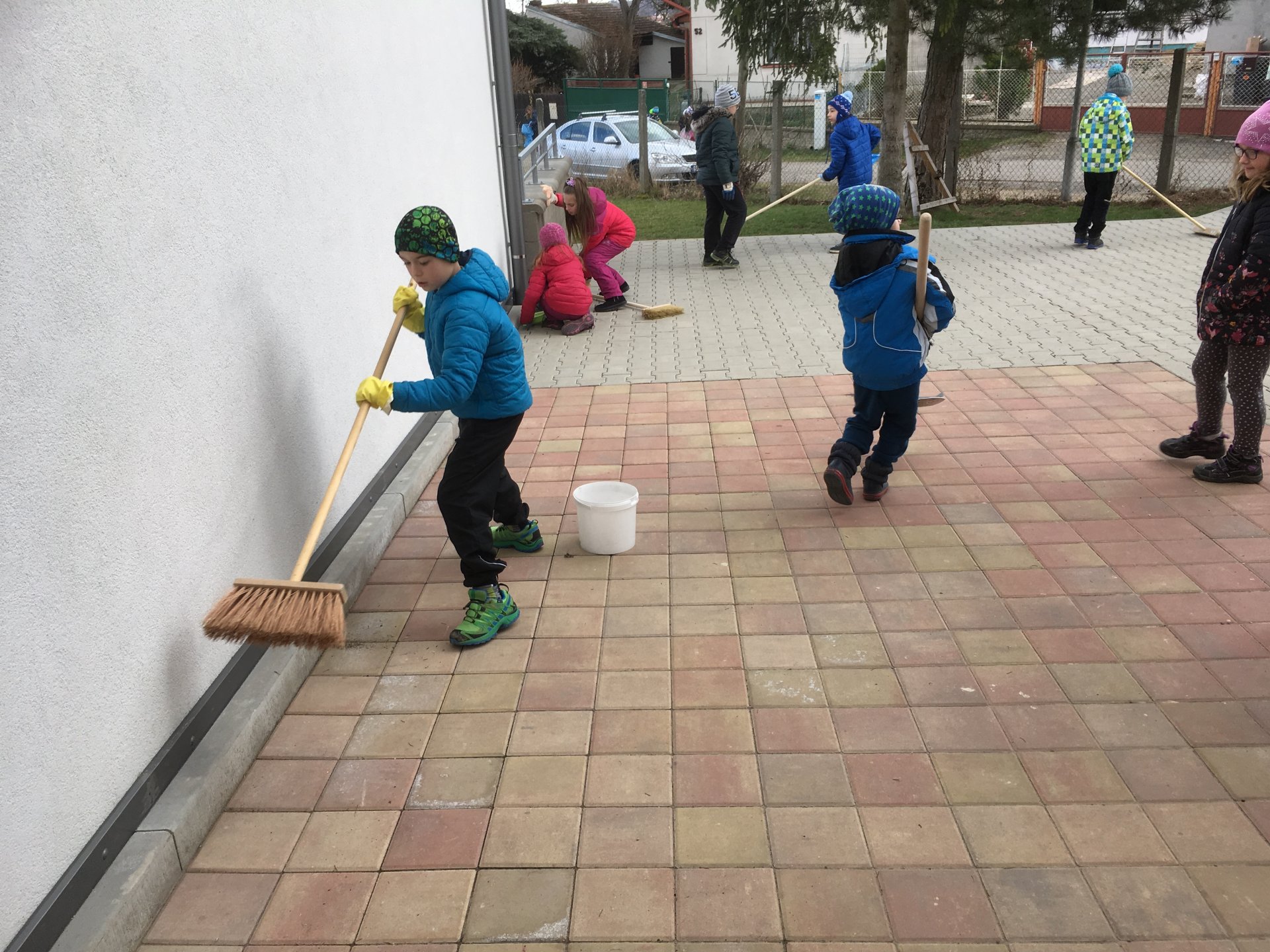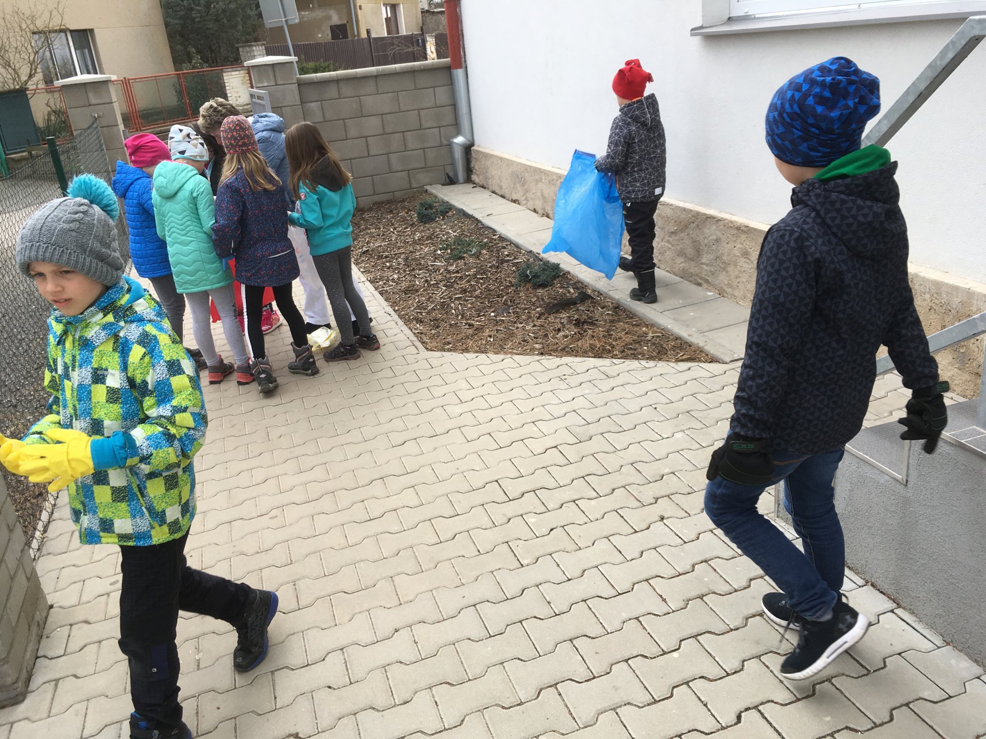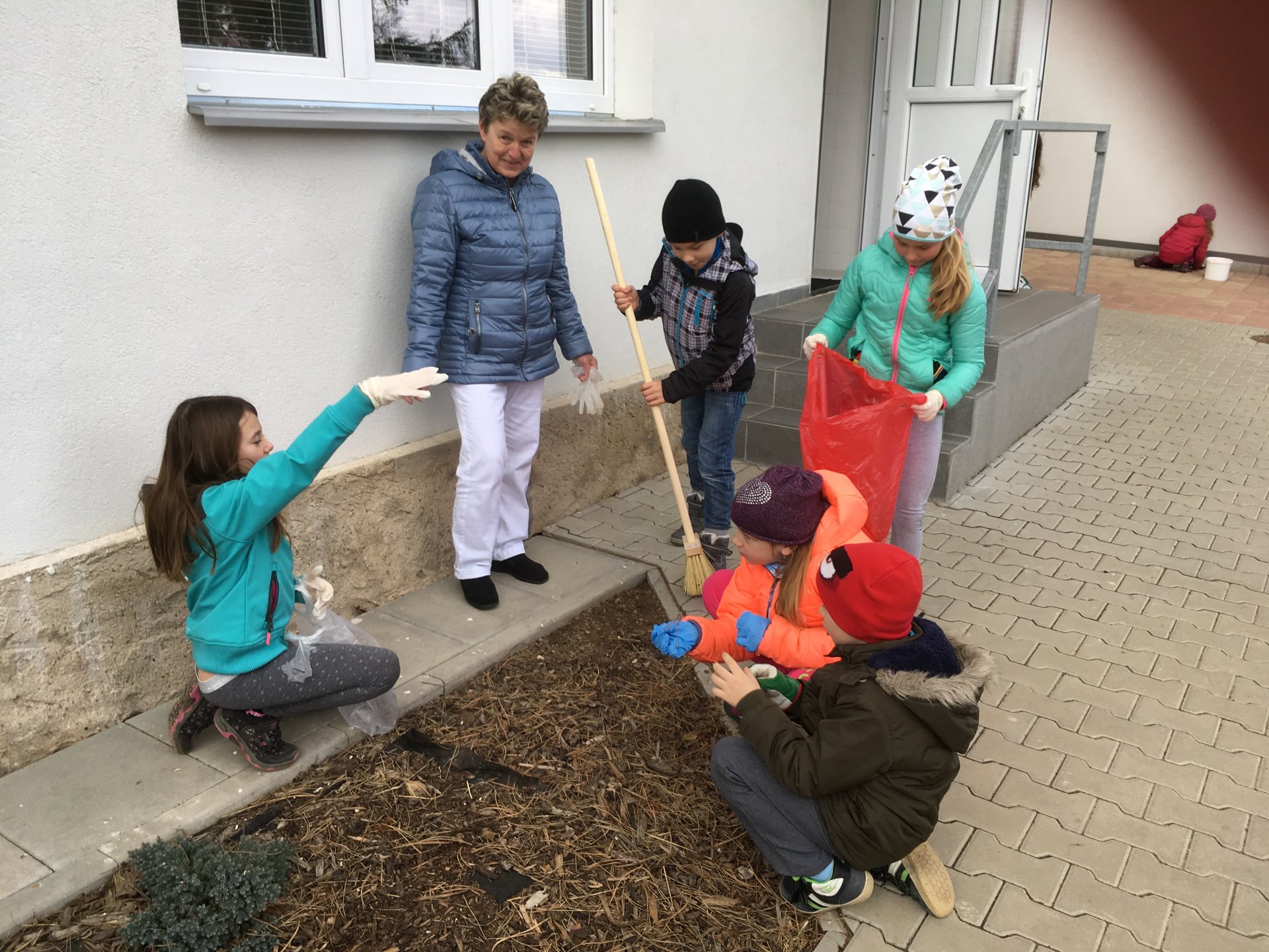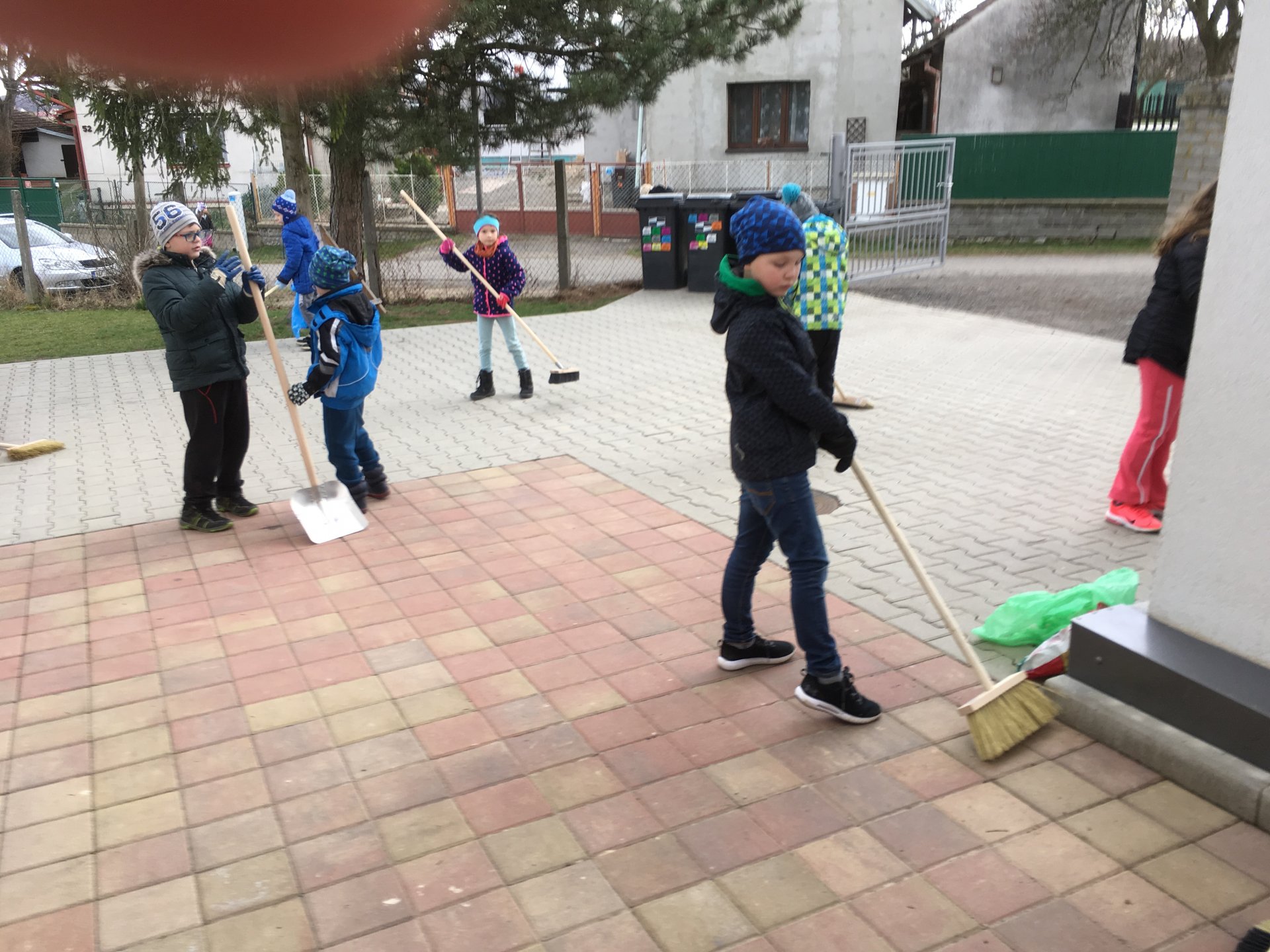 V rámci celostátního úklidu jsme i my přiložili ruce k dílu. Zametli jsme si a uklidili, obrazně i doslova, před vlastním školním prahem.