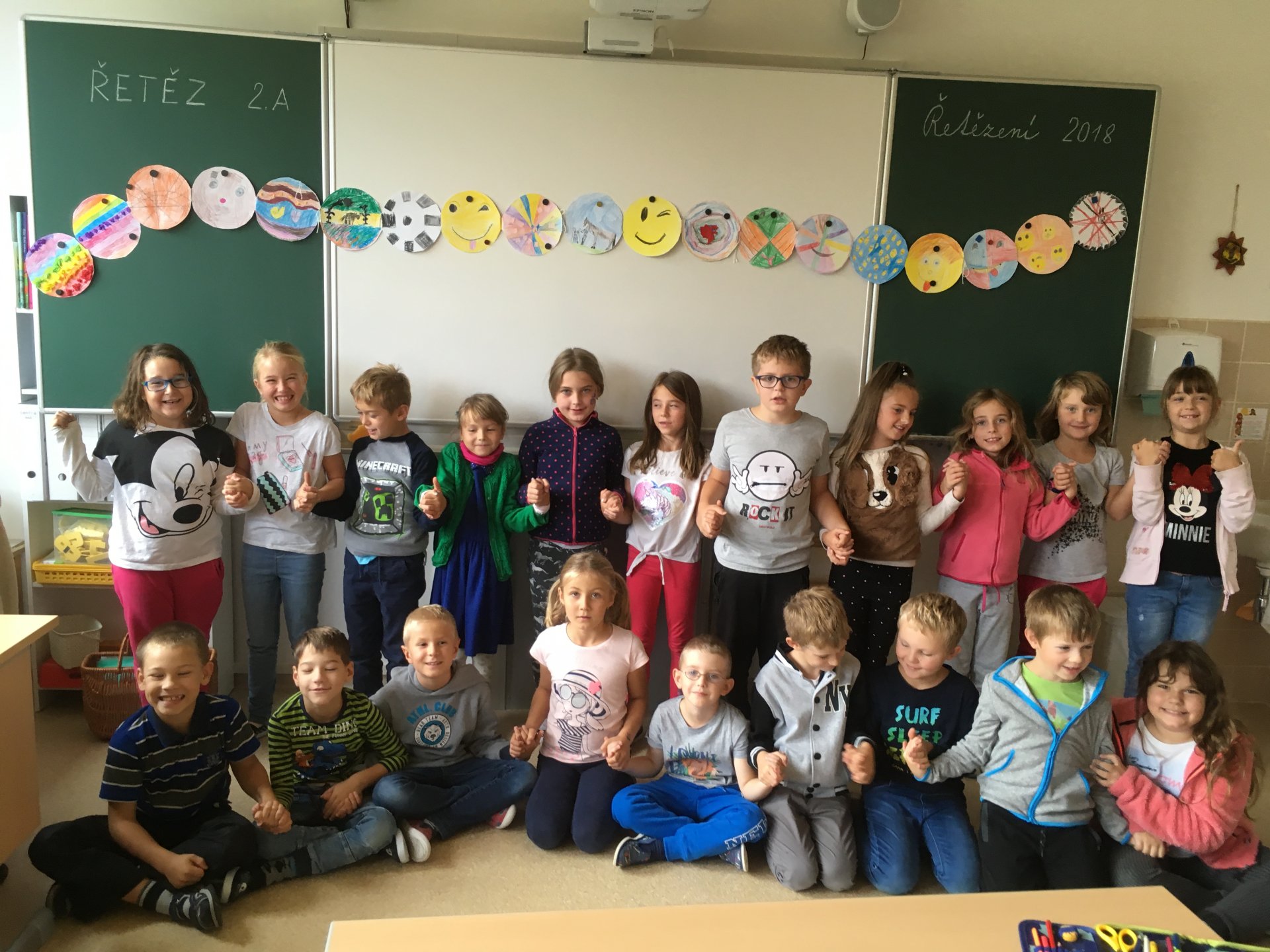 Vytvořili jsme rozmanitý řetěz z našich papírových míčů. Následně jsme demonstrovali pevnost a soudržnost třídního kolektivu. Jsme tým !