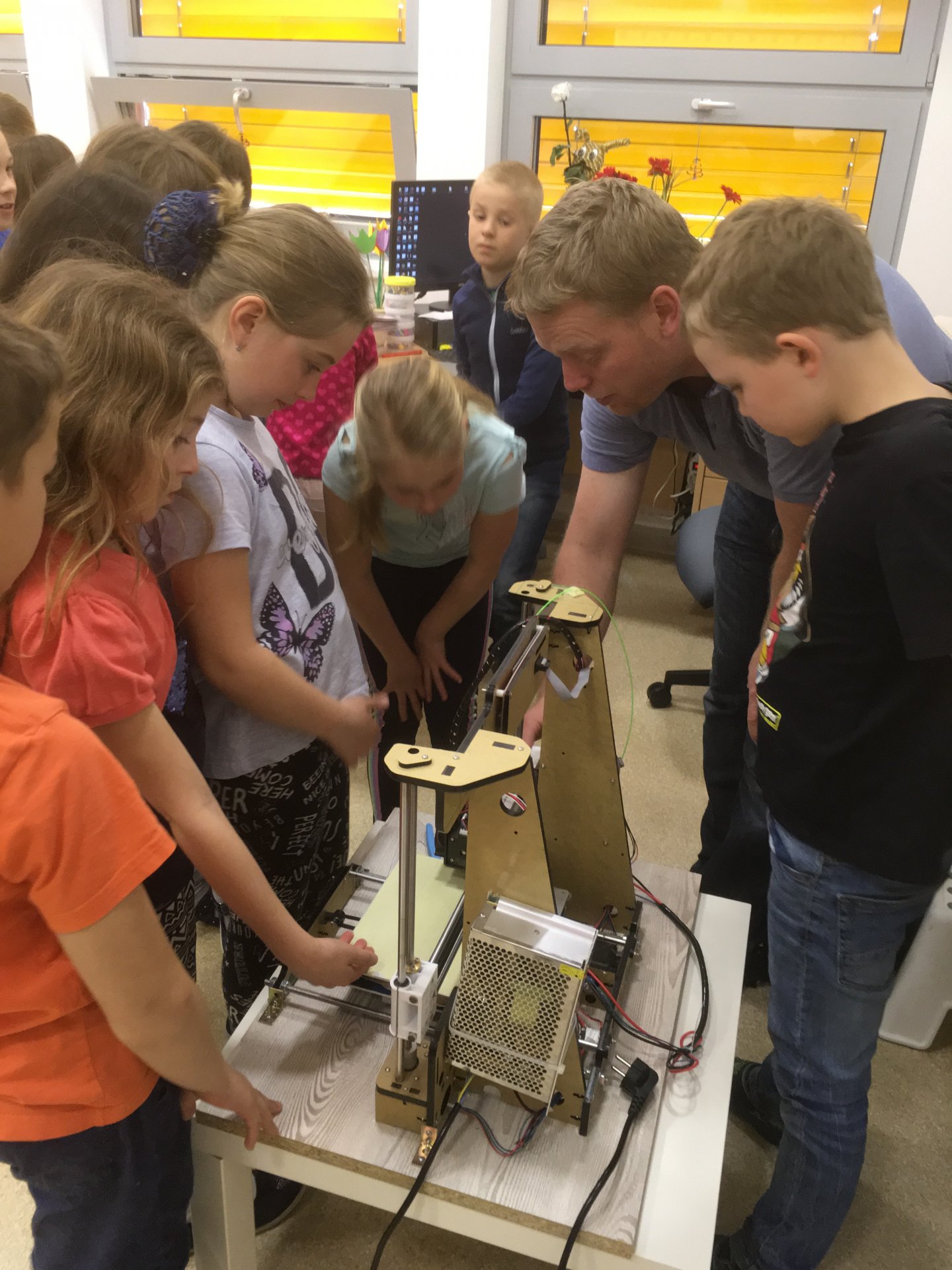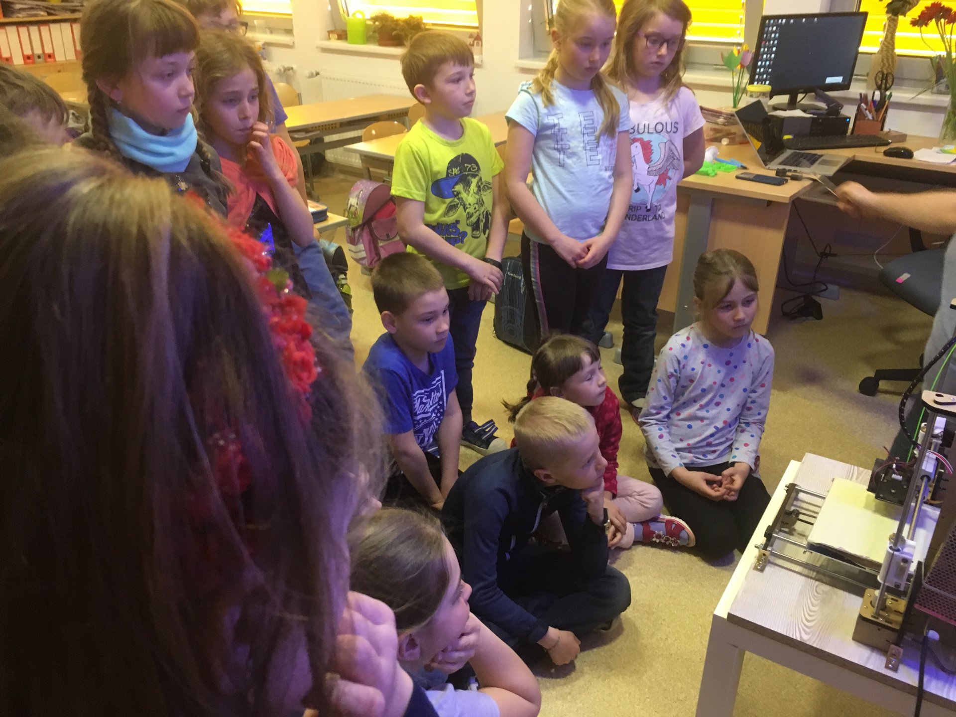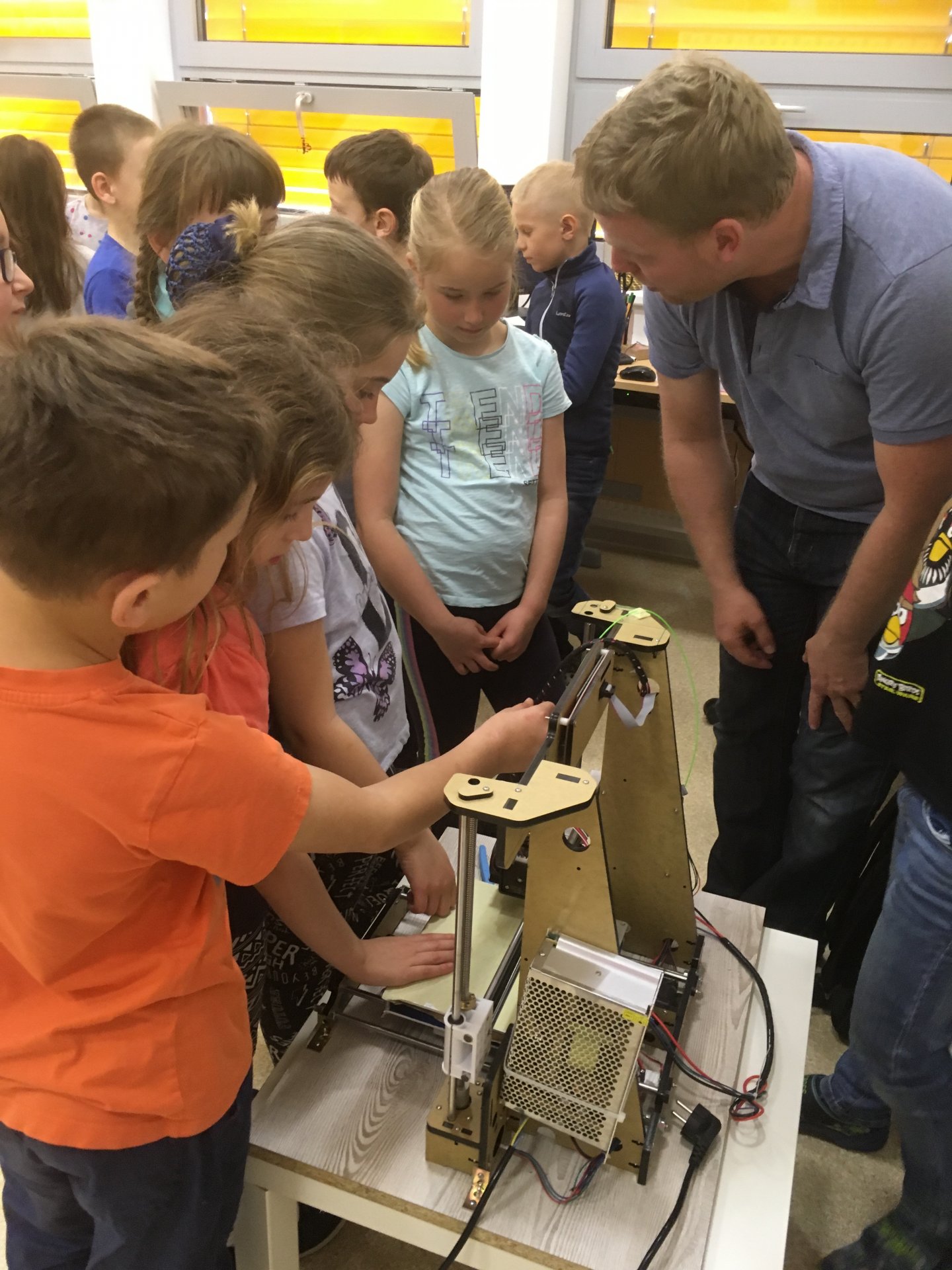 Aniččin tatínek nám nabídl, že by mohl přijít ukázat trošku jinou možnost práce s počítačem. To jsme rádi uvítali. Tatínek přišel a s sebou přinesl 3D tiskárnu. Nejprve nám moc hezky a hlavně přiměřeně našemu věku pověděl, jak 3D tiskárna funguje, co se dá tisknout. Přinesl ukázat i vytištěná zvířátka. Pak jsme na vlastní oči viděli, jak se tiskne šablona nebo forma ve tvaru 3.A. To byl dárek pro nás na příští školní rok. Panu Schindlerovi moc děkujeme a budeme rádi, když ho budou další rodiče následovat.