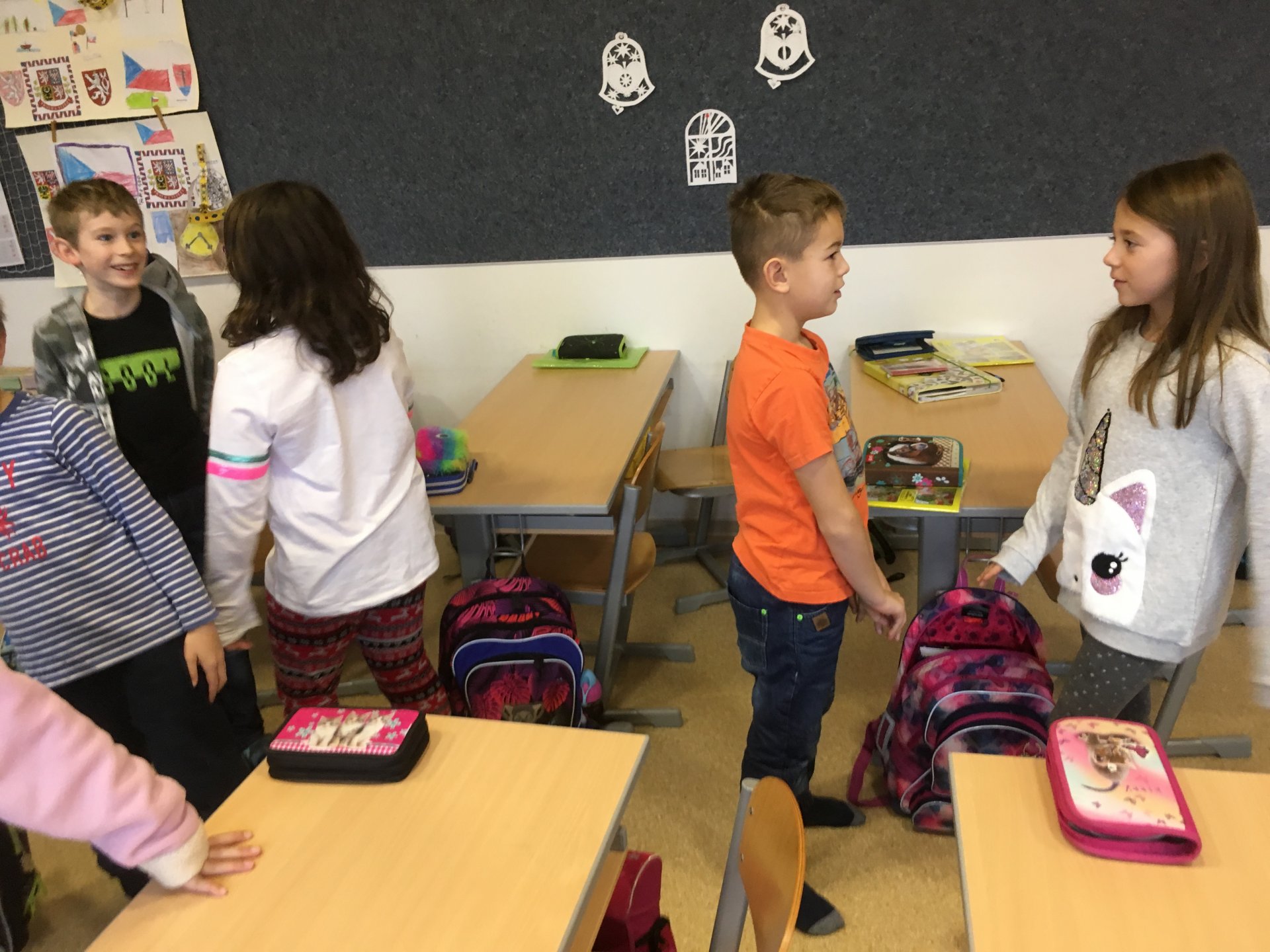 Na prvouku jsme si připravili každý svůj rodokmen. Poté jsme se vydali na "trh informací". Zde probíhalo vzájemné dotazování. Po návratu jsme si povídali o tom, co jsme se dozvěděli. Součástí byla kontrola, zda je vše správně reprodukováno. Všem se to líbilo, někdy to zase zkusíme.