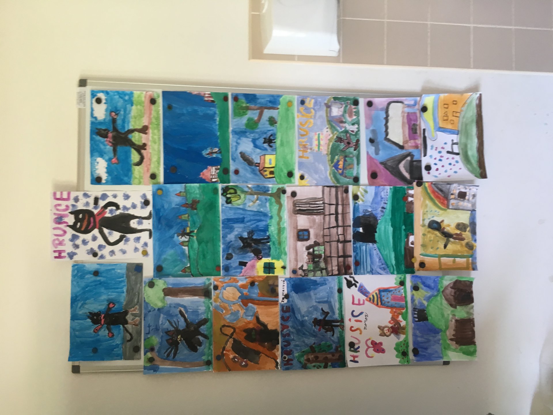 Spolu s našimi "sousedy" z 2.B jsme se vydali na poznávací výlet do Hrusic. Seznámili jsme se s místem, kde žil a tvořil malíř, ilustrátor a spisovatel Josef Lada a odkud pochází známá pohádková postava kocour Mikeš.