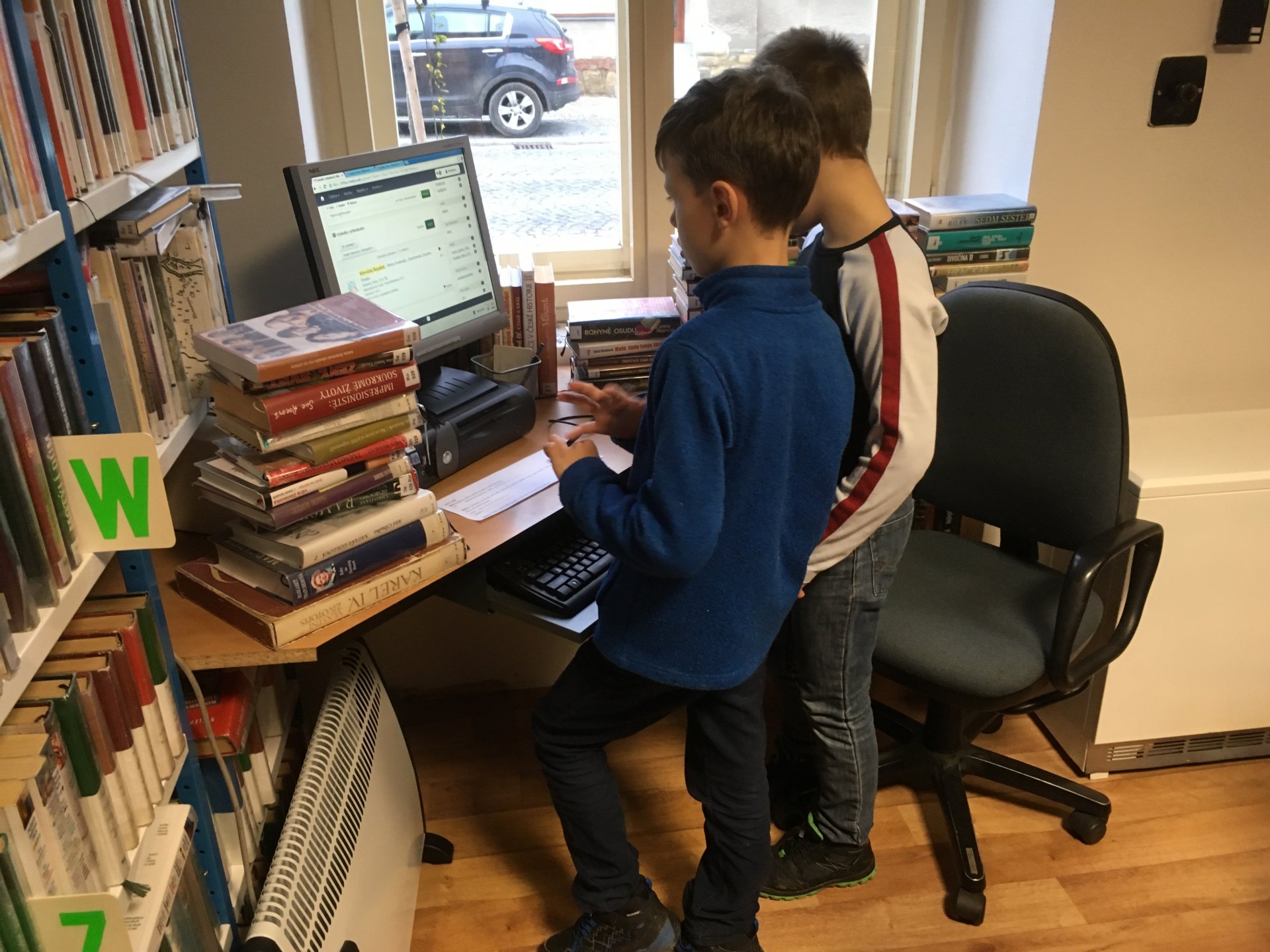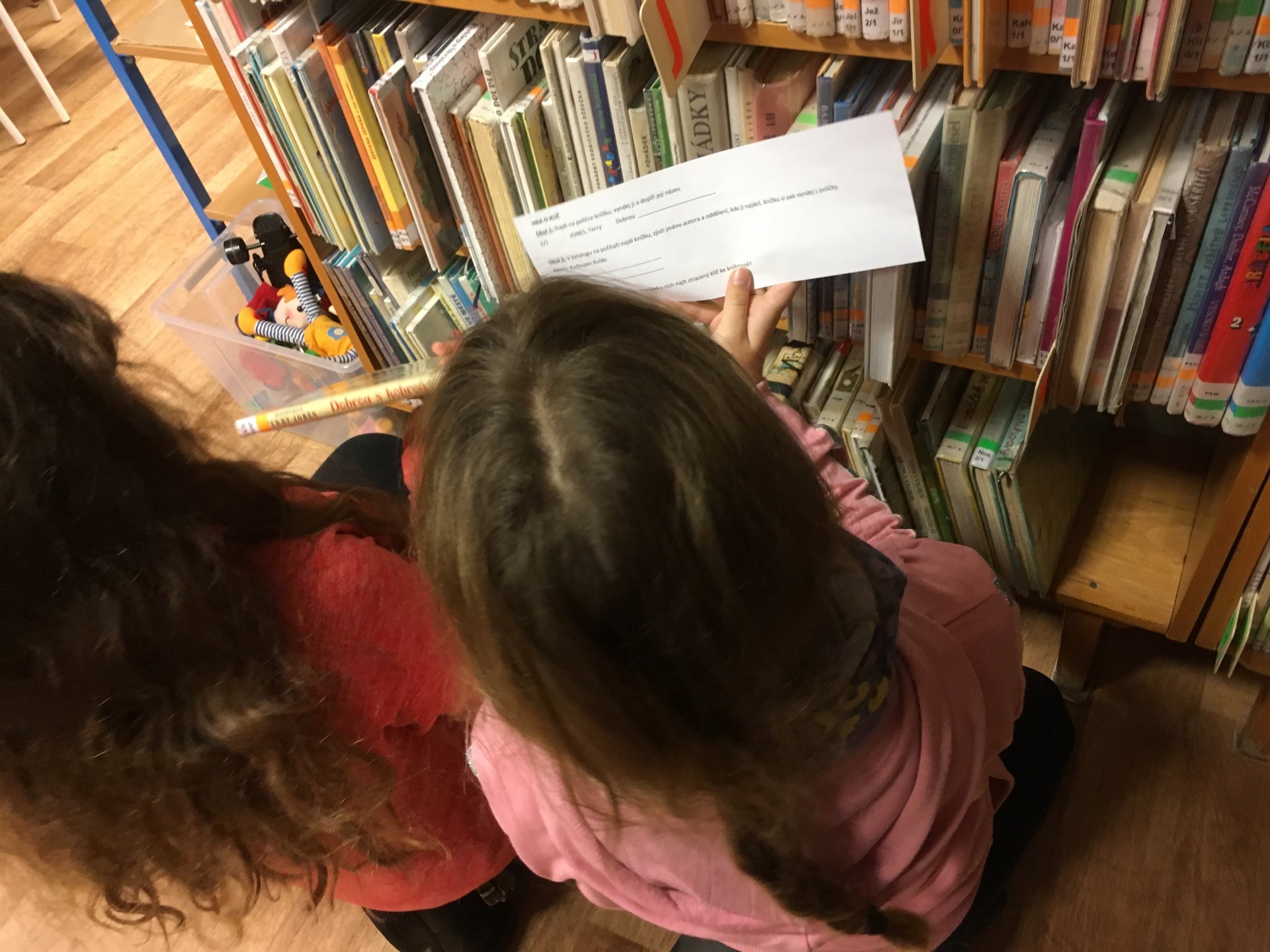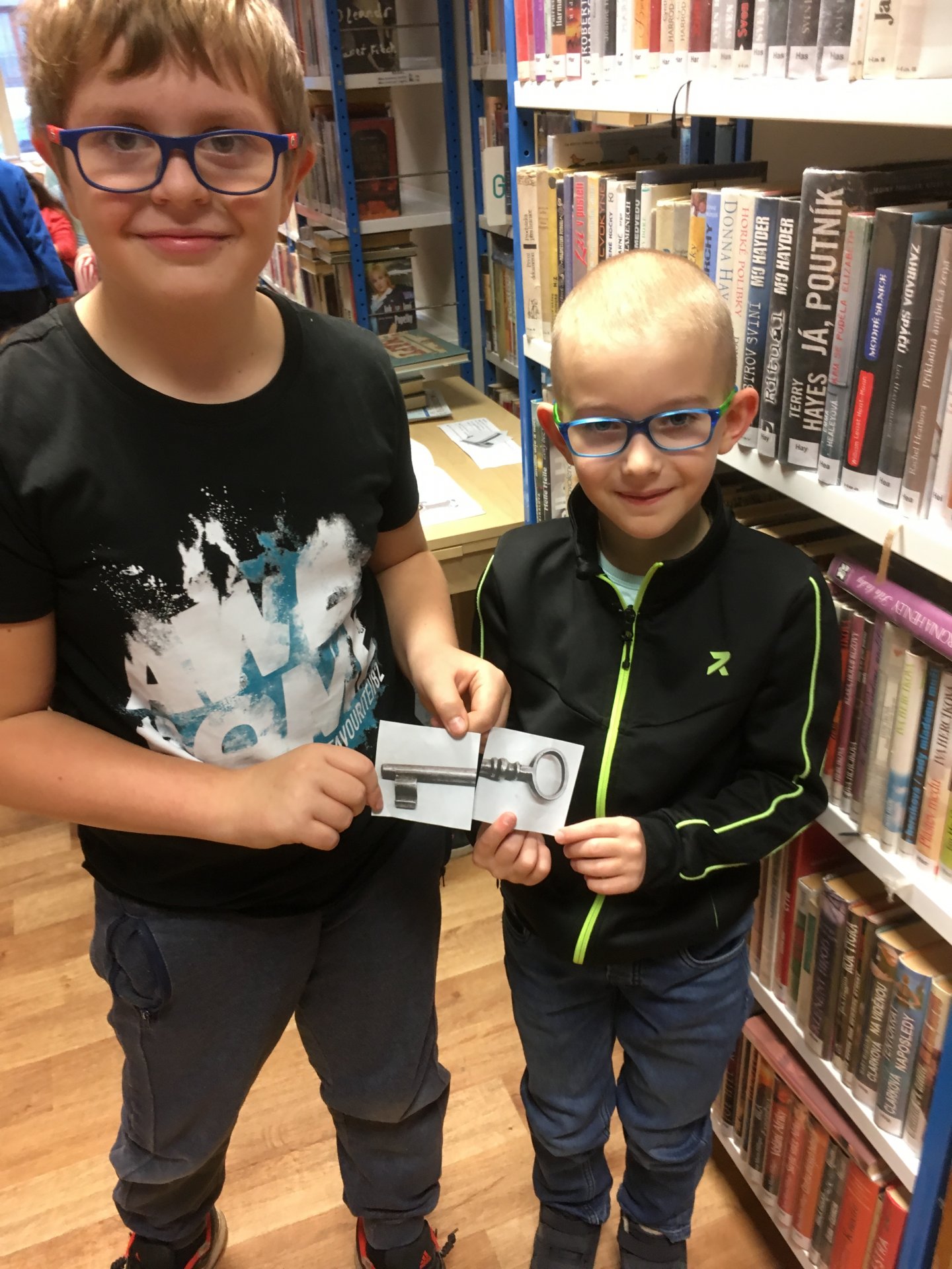 Navštívili jsme knihovnu v Úvalech. Nejprve nám paní knihovnice vysvětlily, co budeme dělat. Dostali jsme lísteček s "indiciemi" a naším úkolem bylo najít v katalogu i fakticky 2 knihy. Za každou jsme získali polovinu klíče.