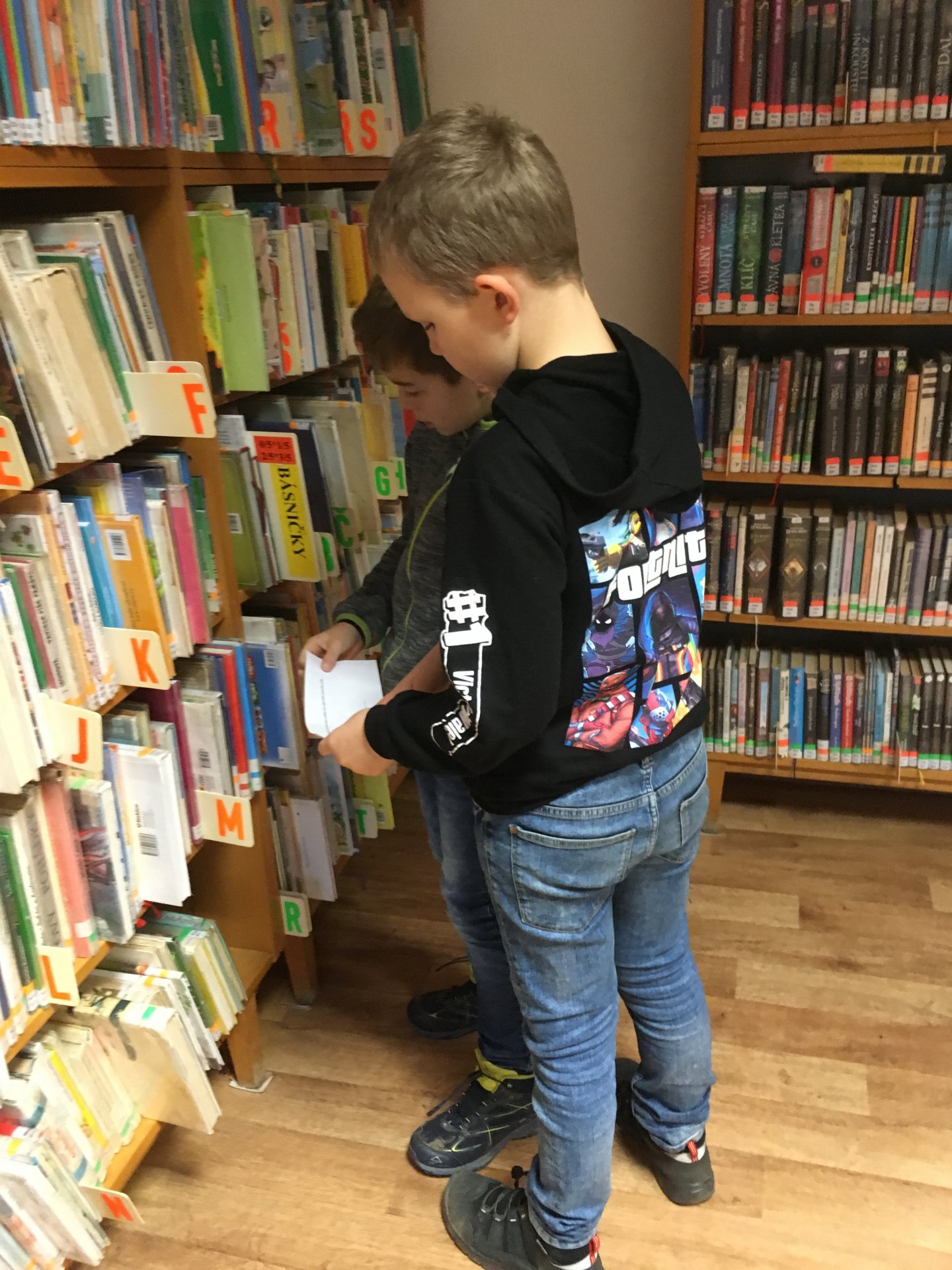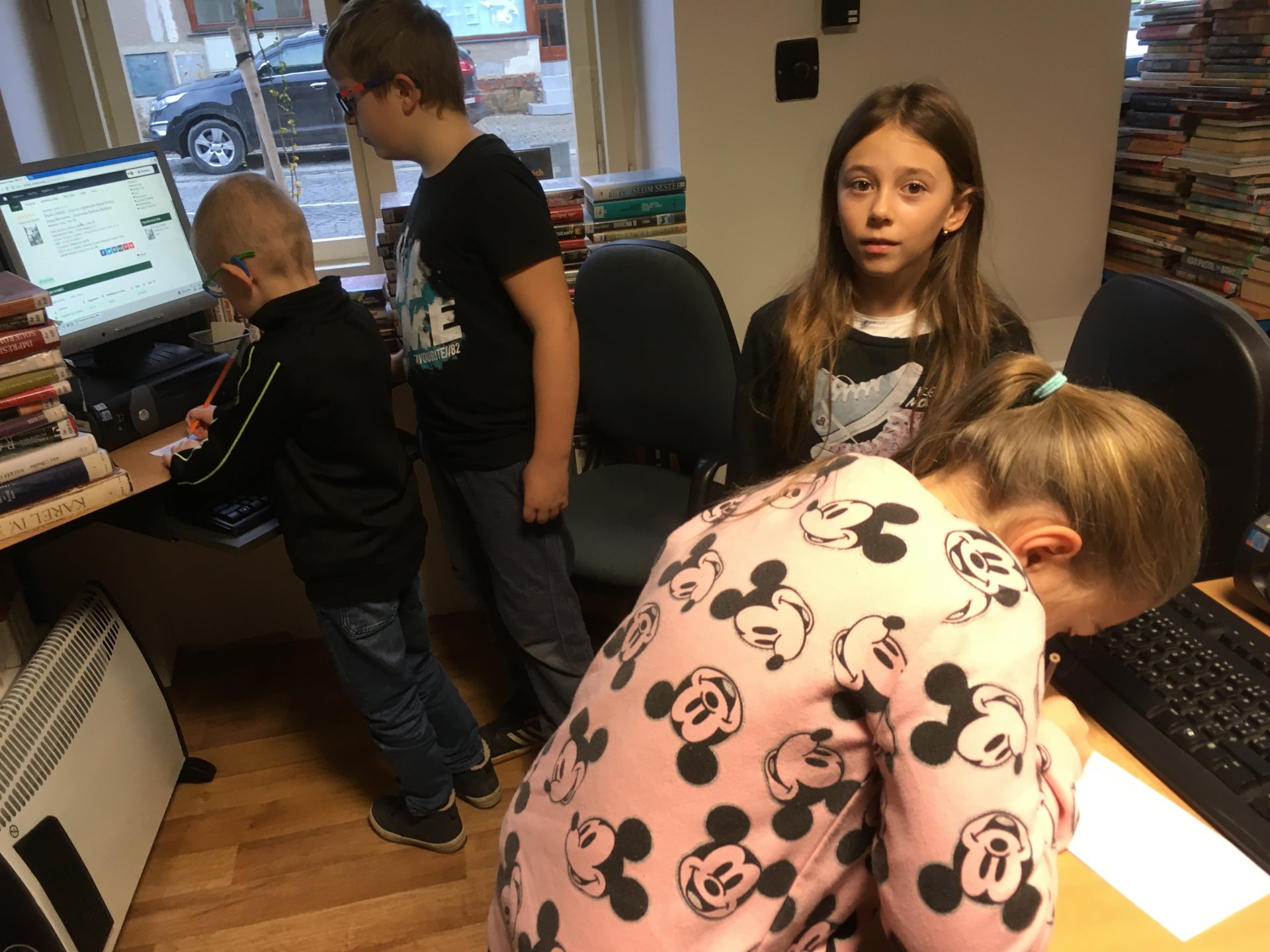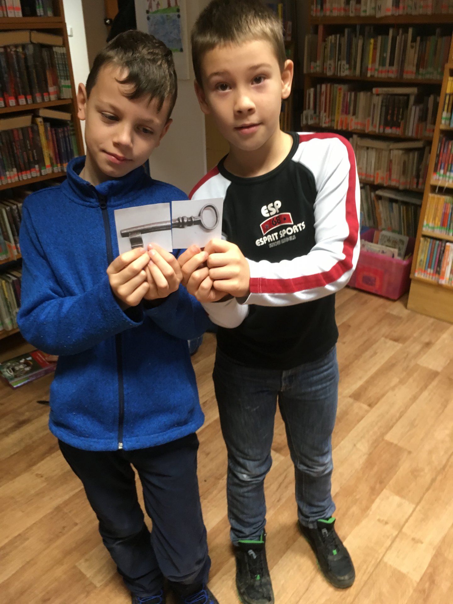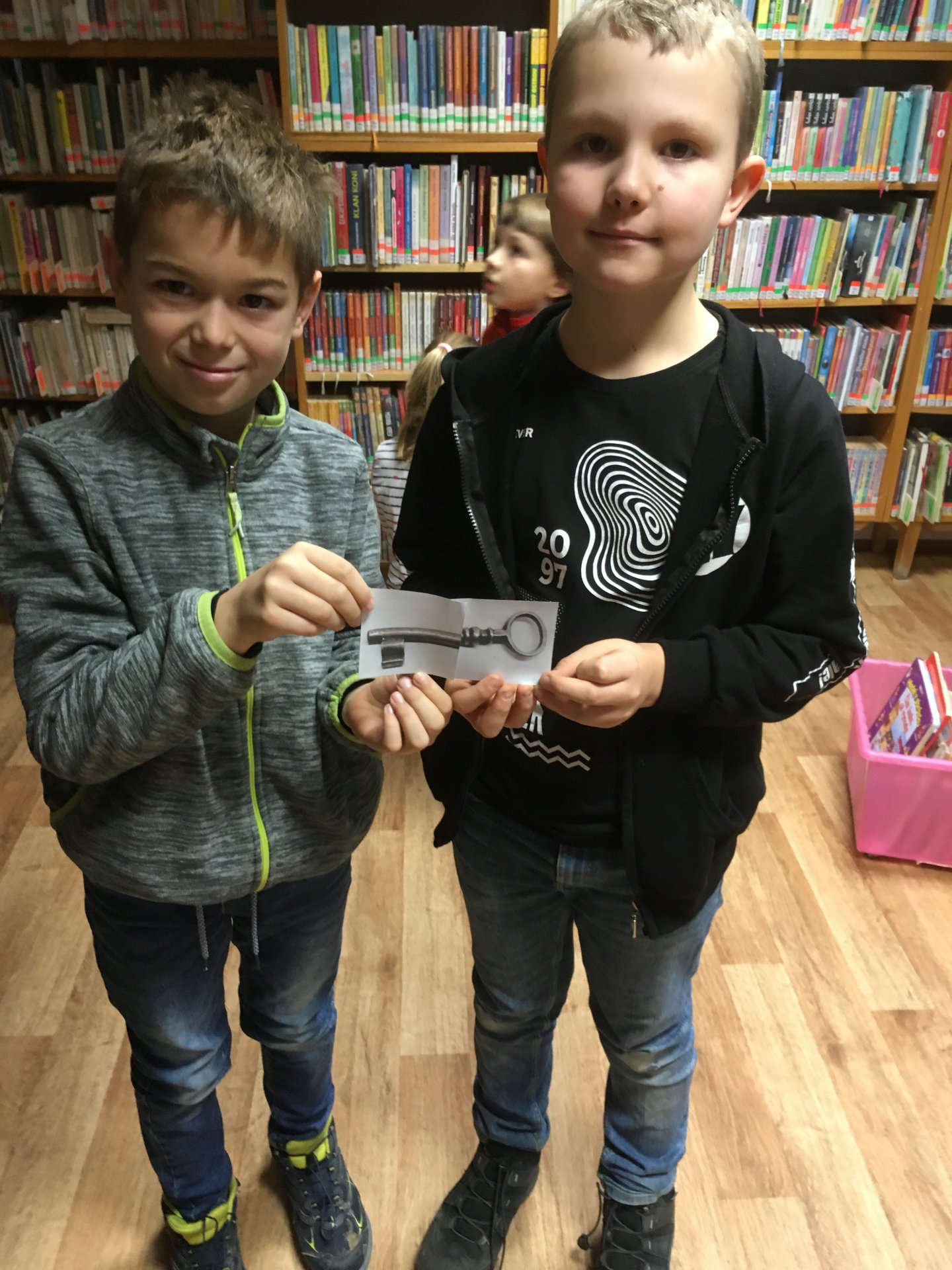 Navštívili jsme knihovnu v Úvalech. Nejprve nám paní knihovnice vysvětlily, co budeme dělat. Dostali jsme lísteček s "indiciemi" a naším úkolem bylo najít v katalogu i fakticky 2 knihy. Za každou jsme získali polovinu klíče.