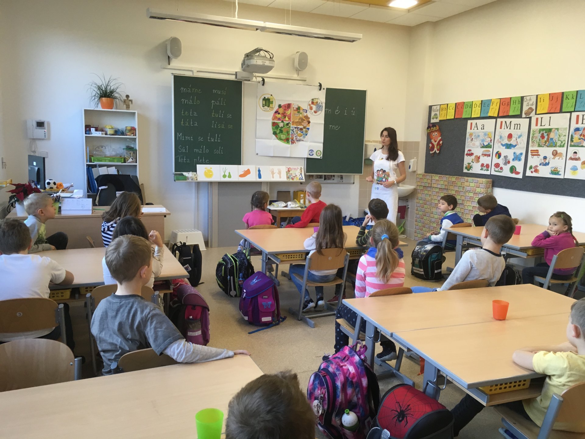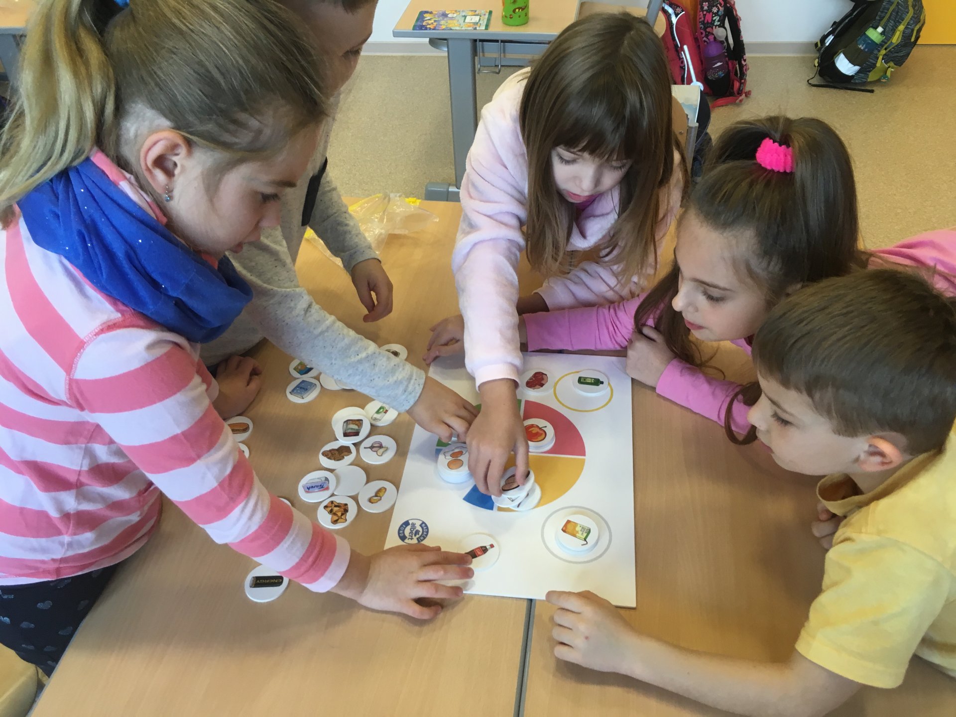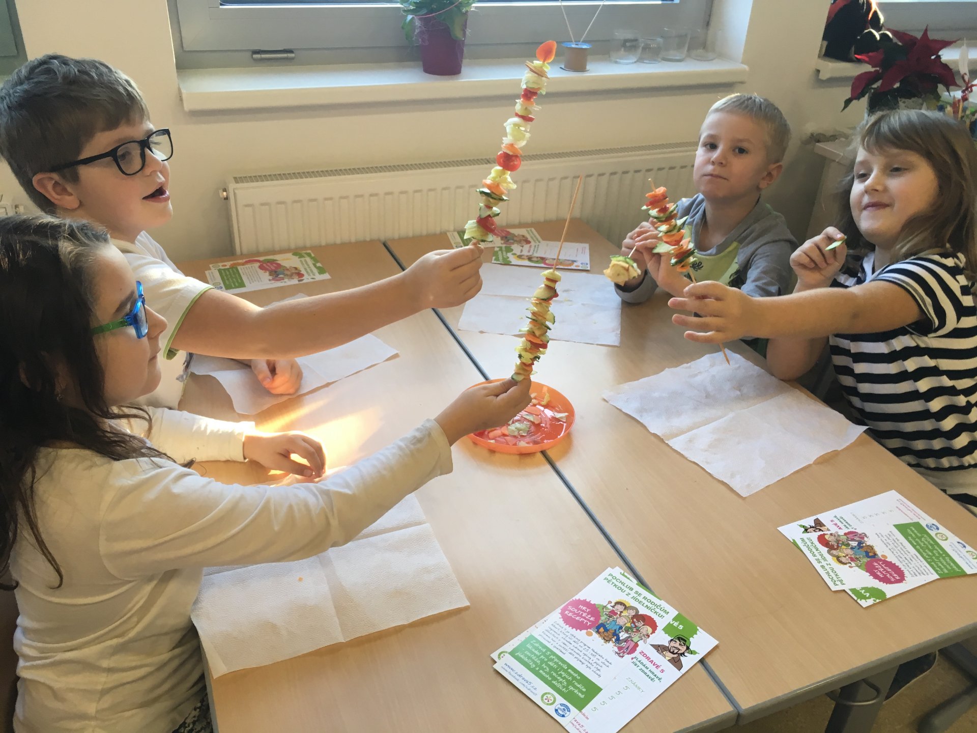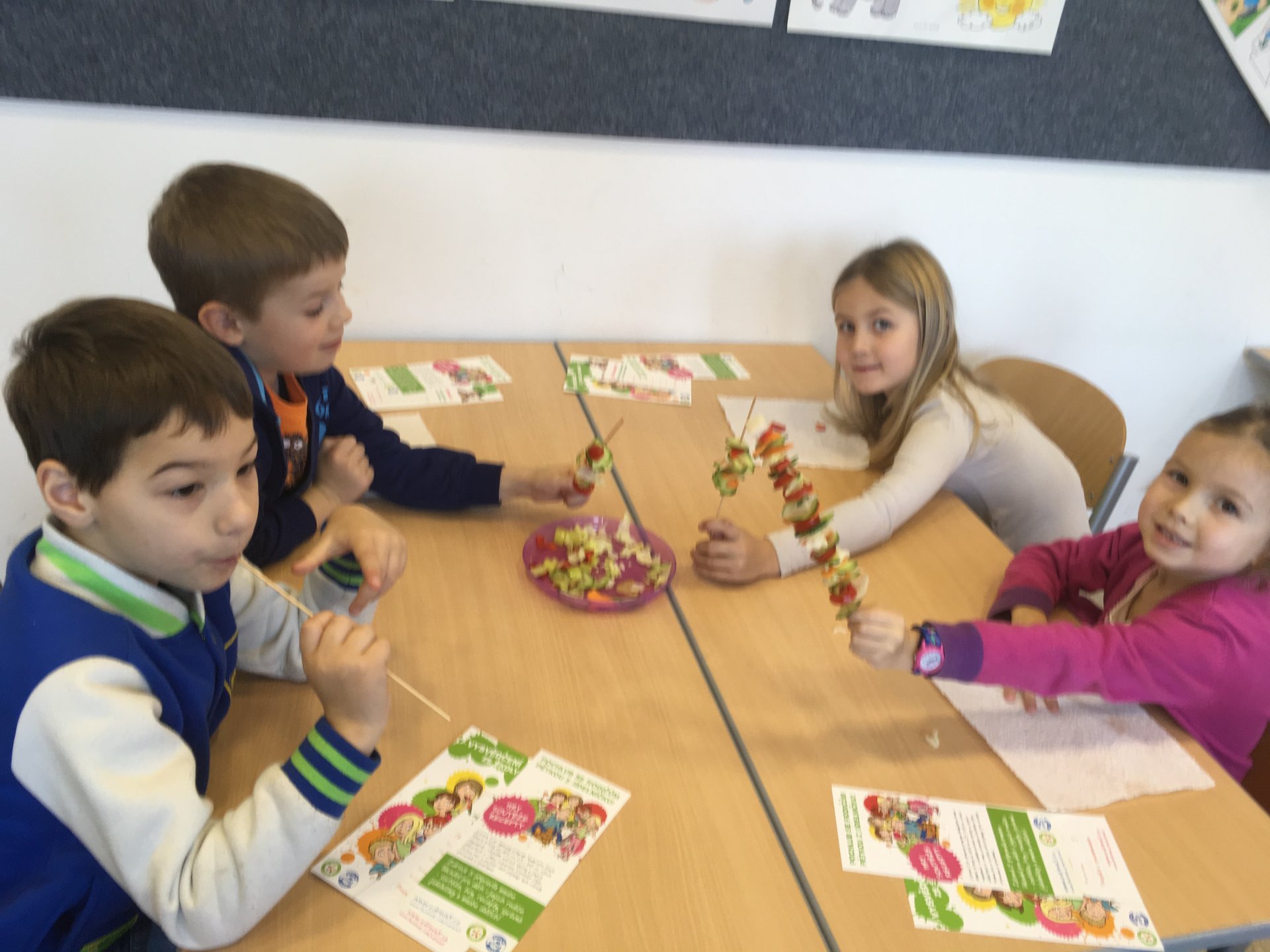 Povídání o zdravém stravování skončilo pro všechny z nás zdravou pětkou a diplomem. Už víme, co má být součástí správného jídelníčku, co je zdravé pít a jak přeslazená jsou mnohá dobře chutnající pitíčka. V praktické části jsme si zahráli hru a udělali jsme si vitamínový špíz. Zakončení bylo nejlepší - všem nám chutnalo a všechno jsme snědli. Pochvala nás neminula.