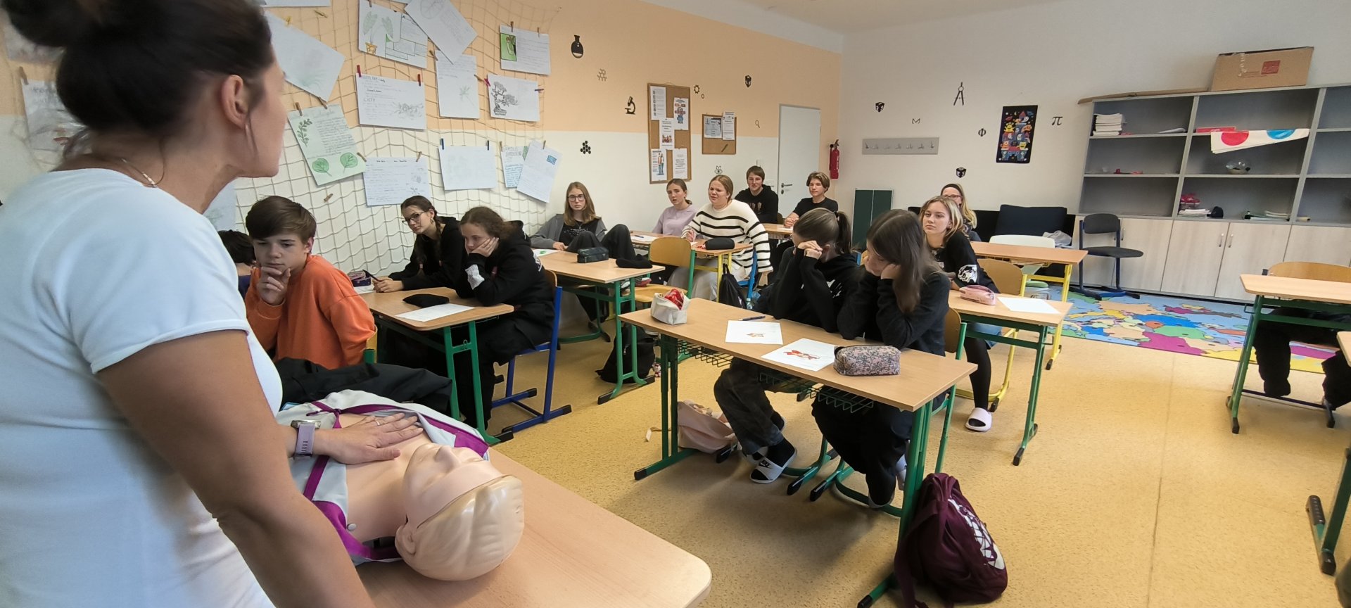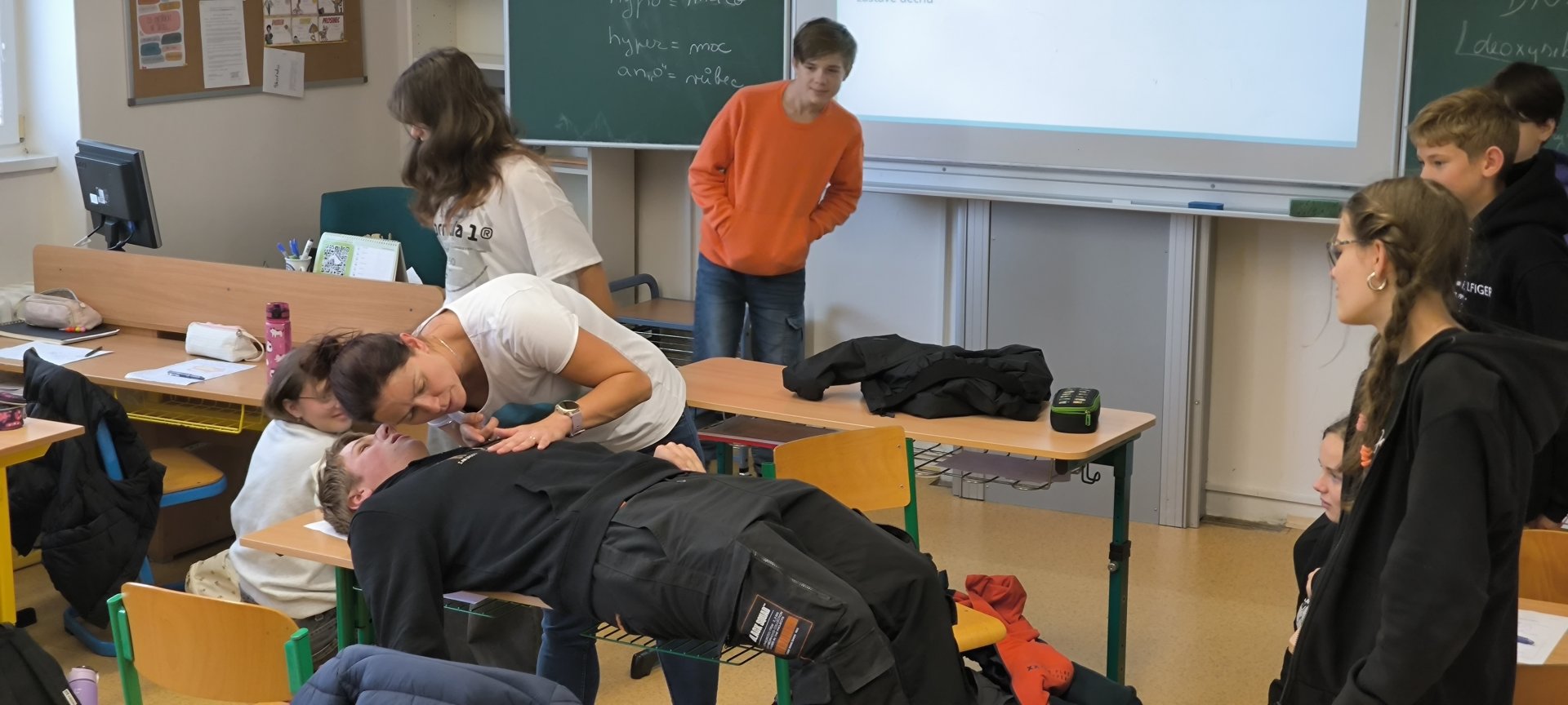 Pár momentek z volitelného předmětu Zdravověda, kde si žáci mohou vyzkoušet spousty dovedností, které by se jim v budoucnu mohly hodit.