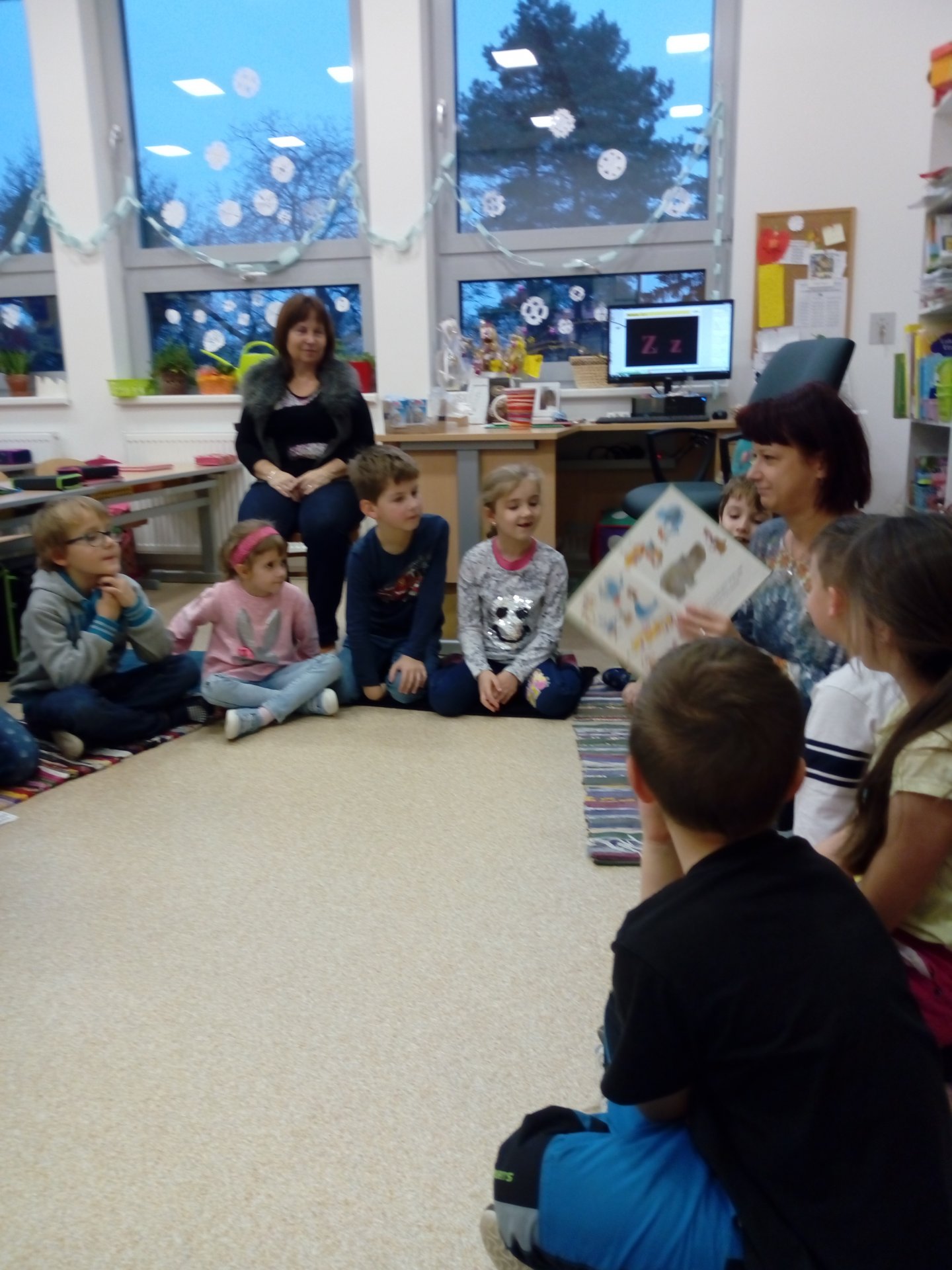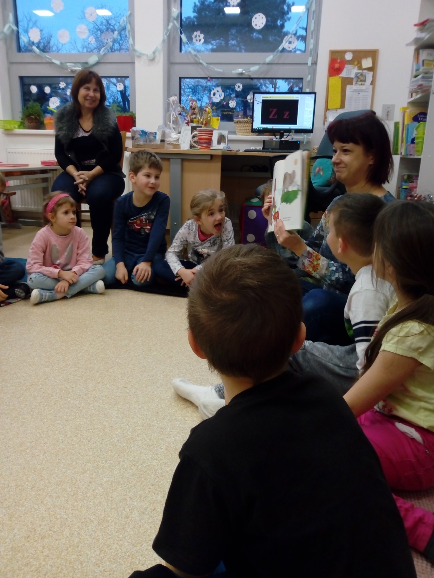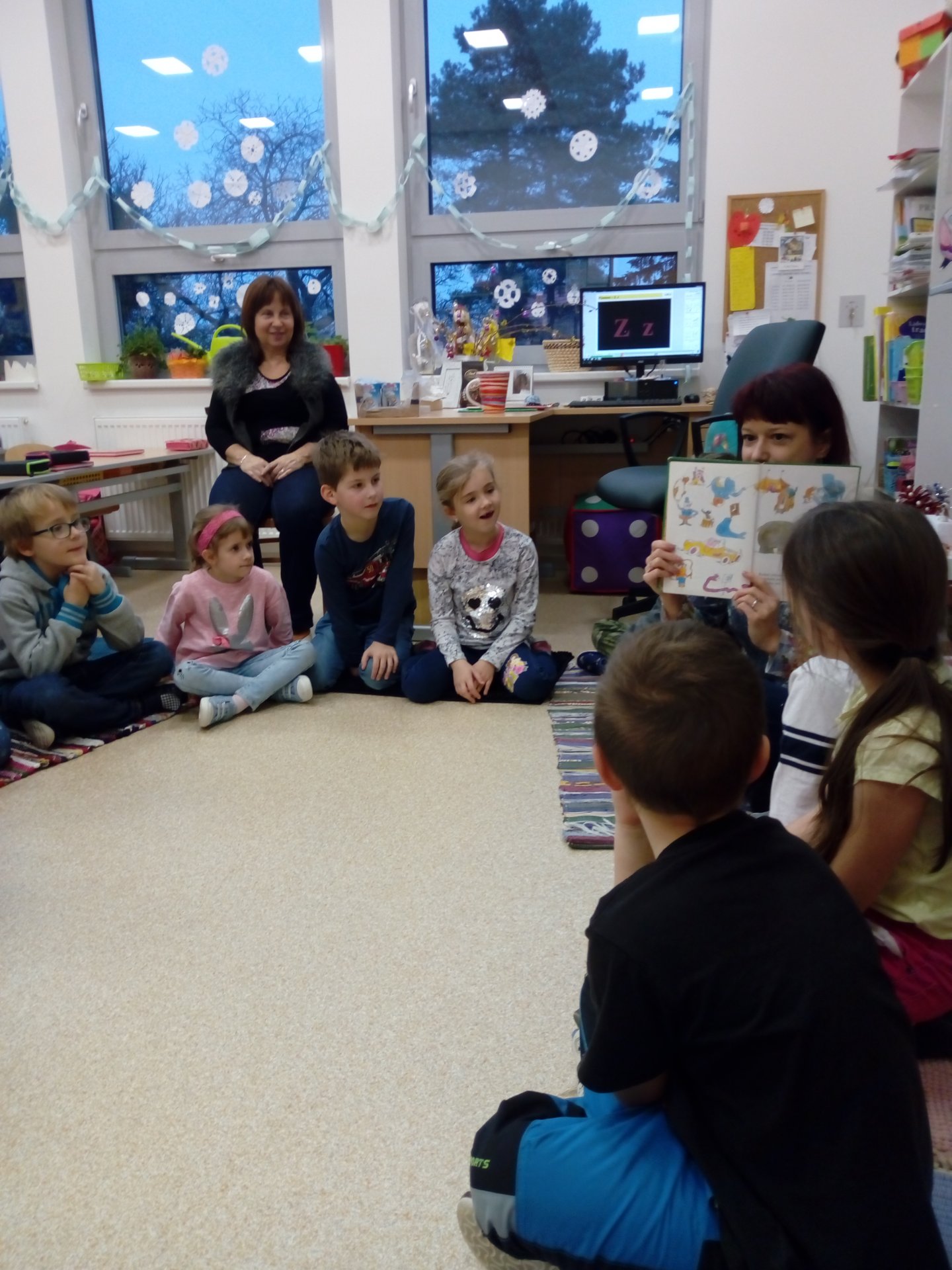 Společné sdílení příběhů má své kouzlo a neopakovatelnost. Dnes nám paní Dickerová, maminka Tobíska, přišla přečíst svou milovanou knížku z dětství. Možná u některých probudila větší touhu proniknout do světa knížek a četby. Moc jí za to děkujeme!