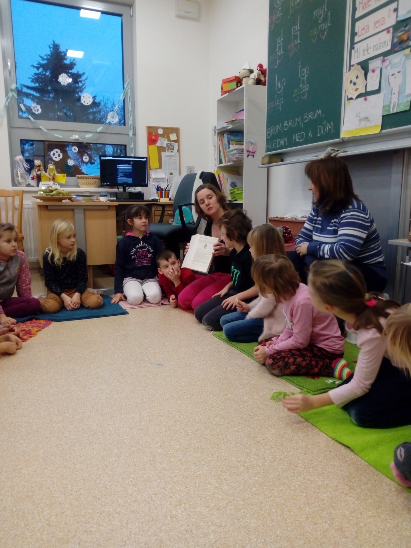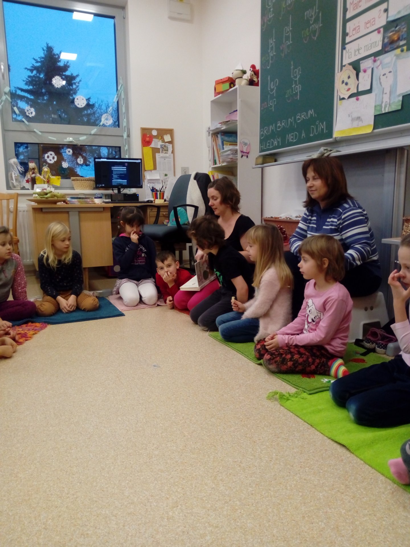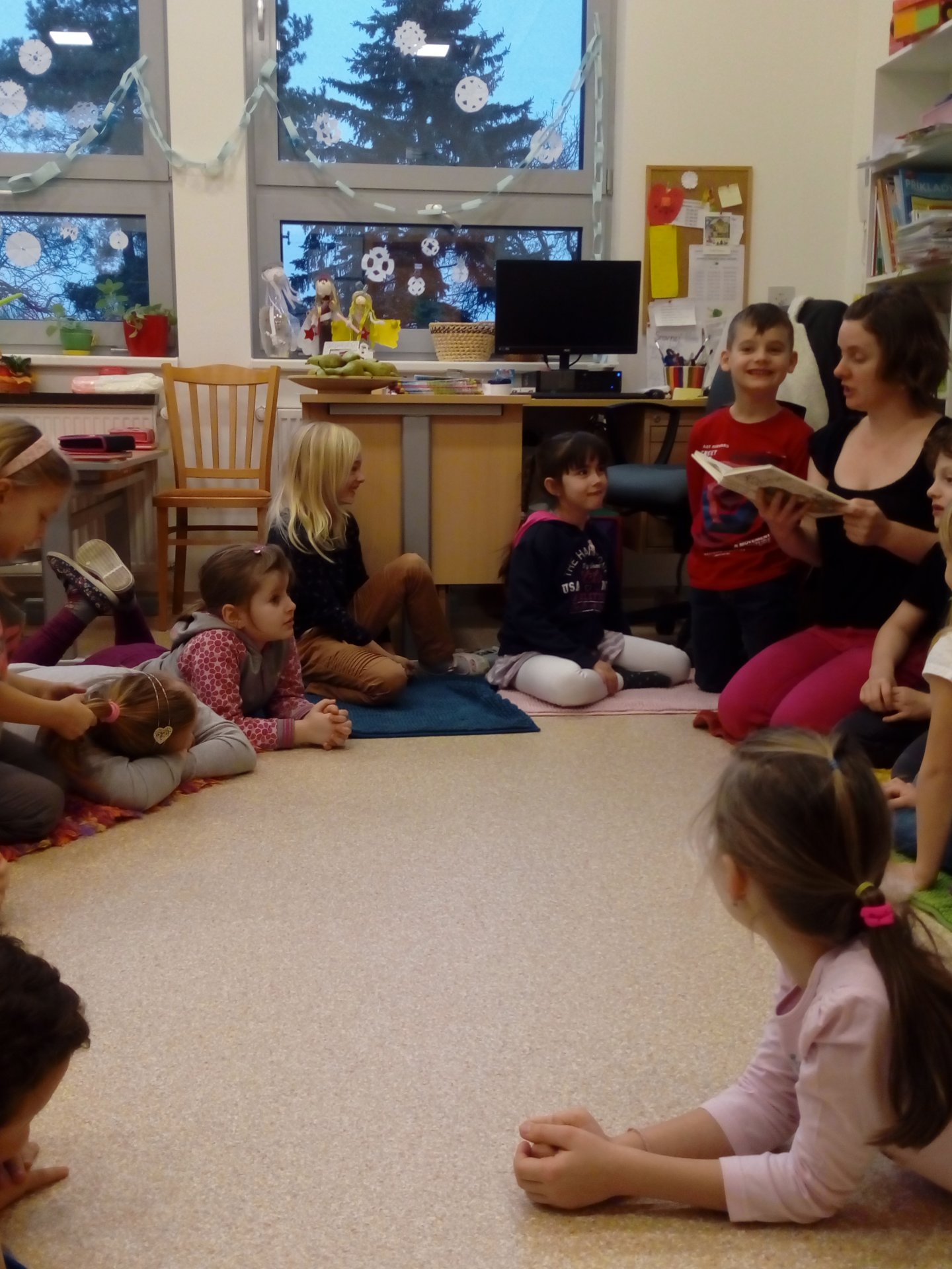 Tentokrát nás Mikuláškova maminka seznámila s knihou jejího dětství, které je určitě blízká jen jí. Děti z Bullerbynu se dětem moc líbily, zkusily si napsat jména hlavní hrdinů, zasmály se některým příběhům. Společné čtení je i výbornou motivací ke čtení. Dětem se rozvíjí slovní zásoba, zažívají radost a pocit sounáležitosti.