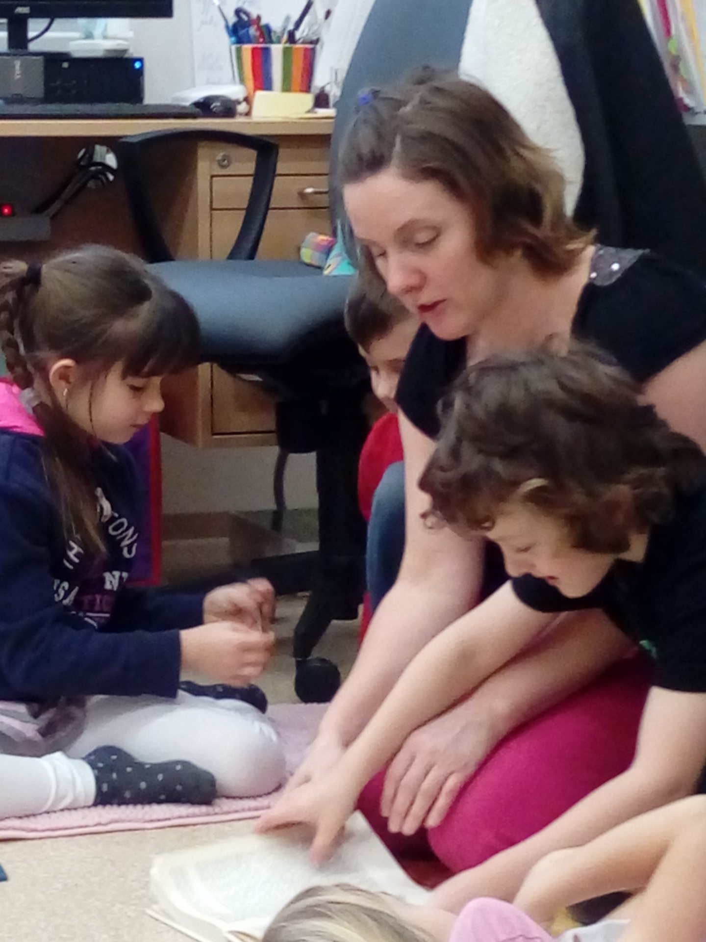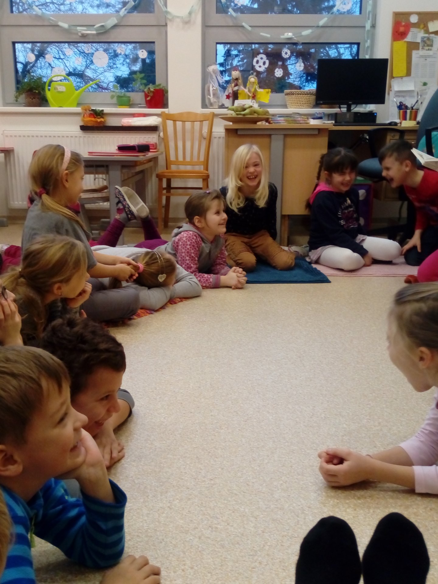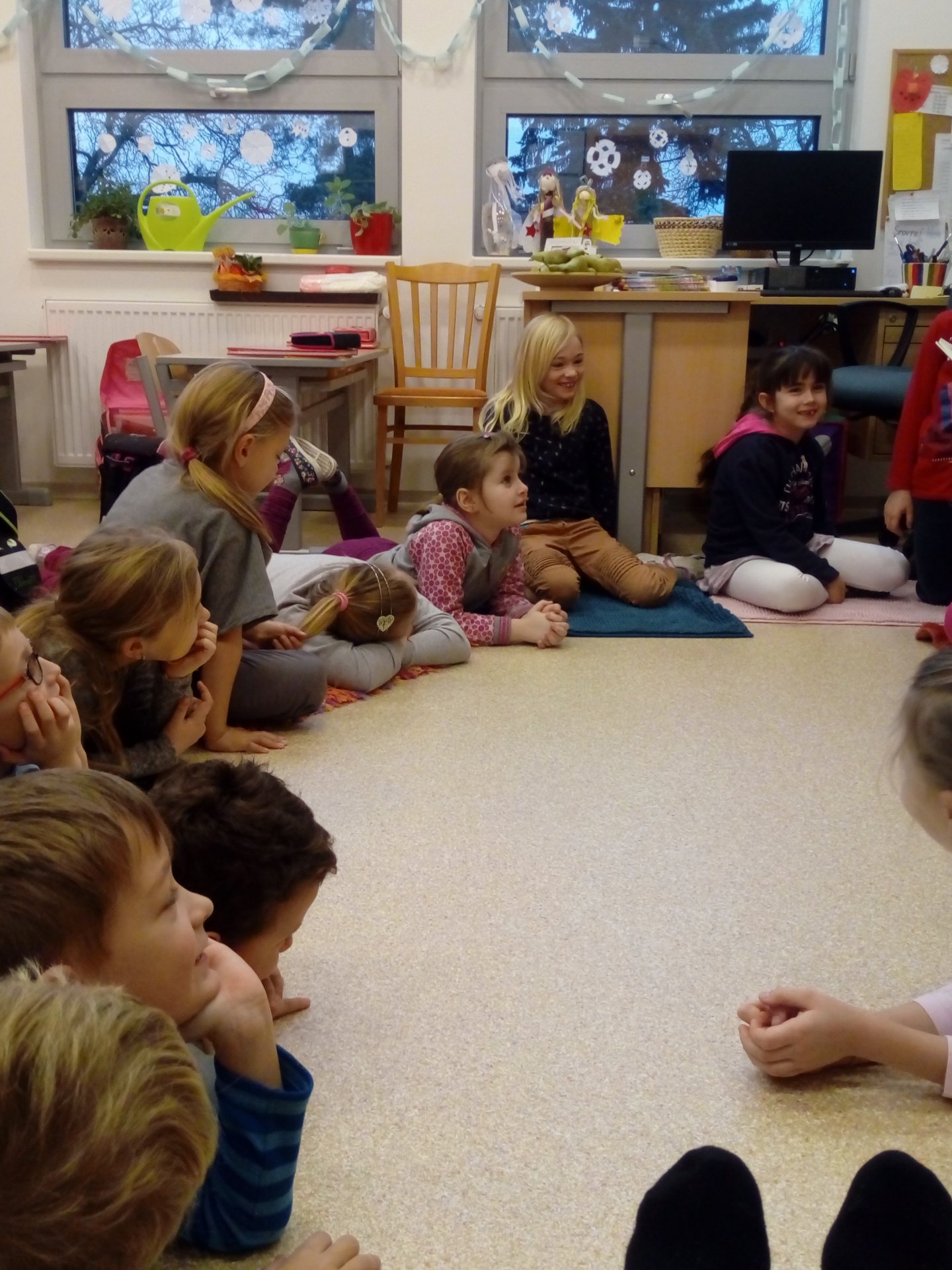 Tentokrát nás Mikuláškova maminka seznámila s knihou jejího dětství, které je určitě blízká jen jí. Děti z Bullerbynu se dětem moc líbily, zkusily si napsat jména hlavní hrdinů, zasmály se některým příběhům. Společné čtení je i výbornou motivací ke čtení. Dětem se rozvíjí slovní zásoba, zažívají radost a pocit sounáležitosti.
