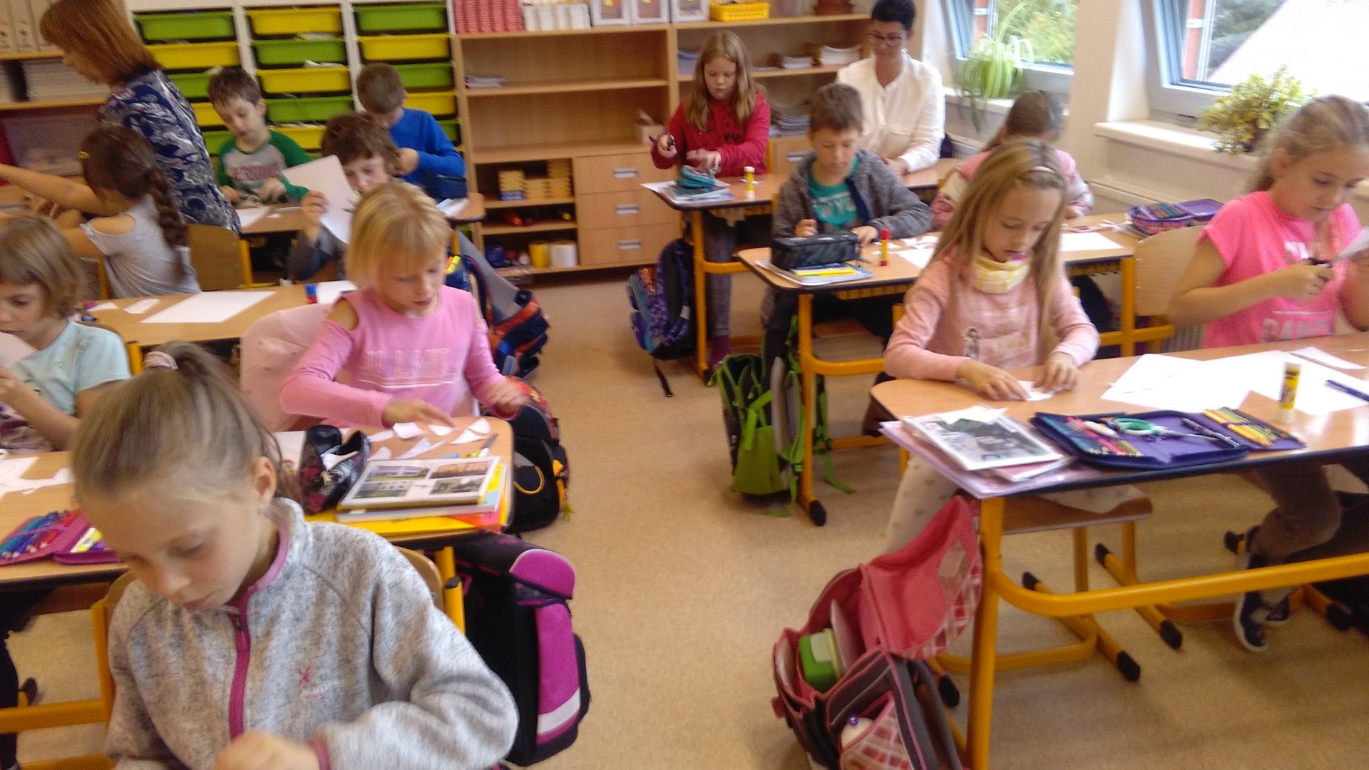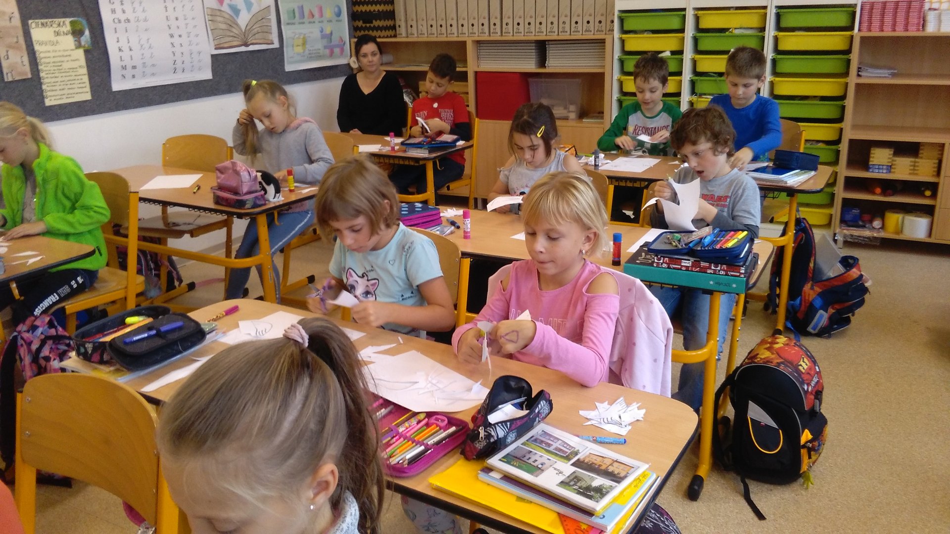 Několik obrázků z malého nahlédnutí do třídy v den otevřených dveří, kdy byly děti velmi soustředěné, zaujaté a hlavně tvořivé: