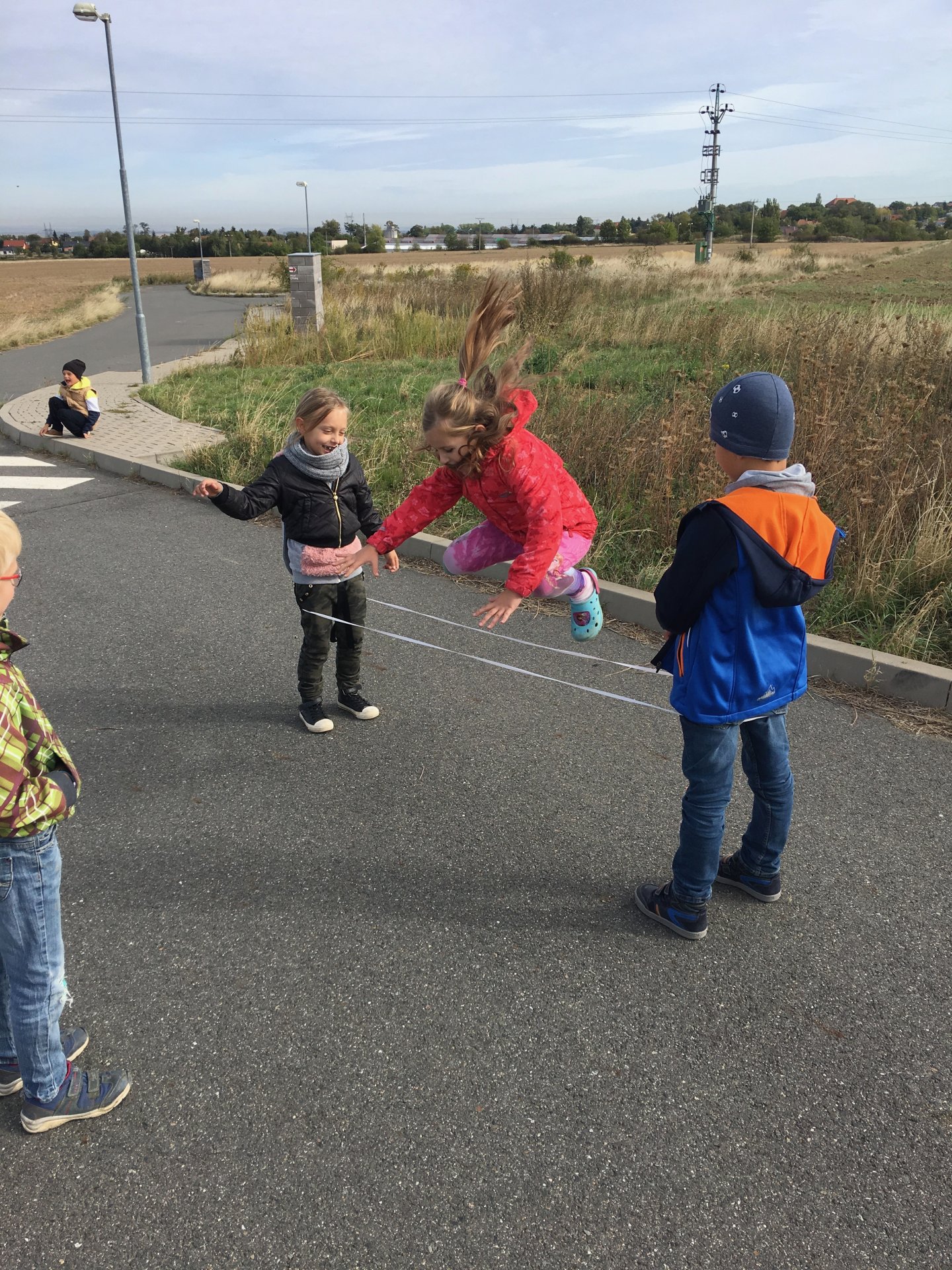 V rámci tělesné výchovy jsme spojili sportovní aktivity s prvoukou i výtvarnou výchovou. Počasí bylo nádherné, i když už chladněji. Zkrátka podzim je tu!
