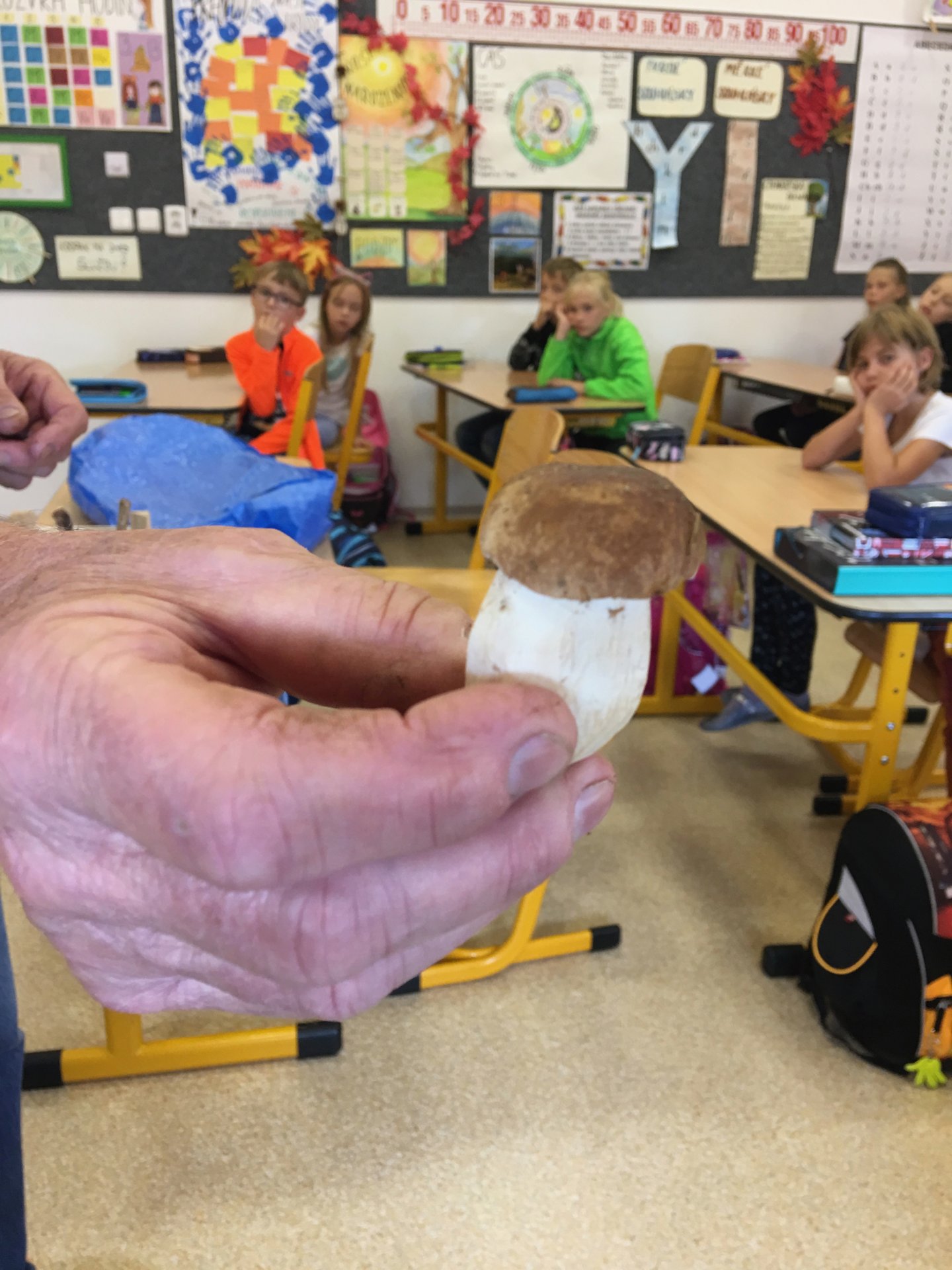 K podzimu neodmyslitelně patří "houbaření". Pan Trnka byl tak hodný, že nám houby nejen přinesl ukázat, ale hlavně nám o nich řekl spoustu zajímavých informací. Děkujeme za názornou ukázku v rámci hodiny prvouky.