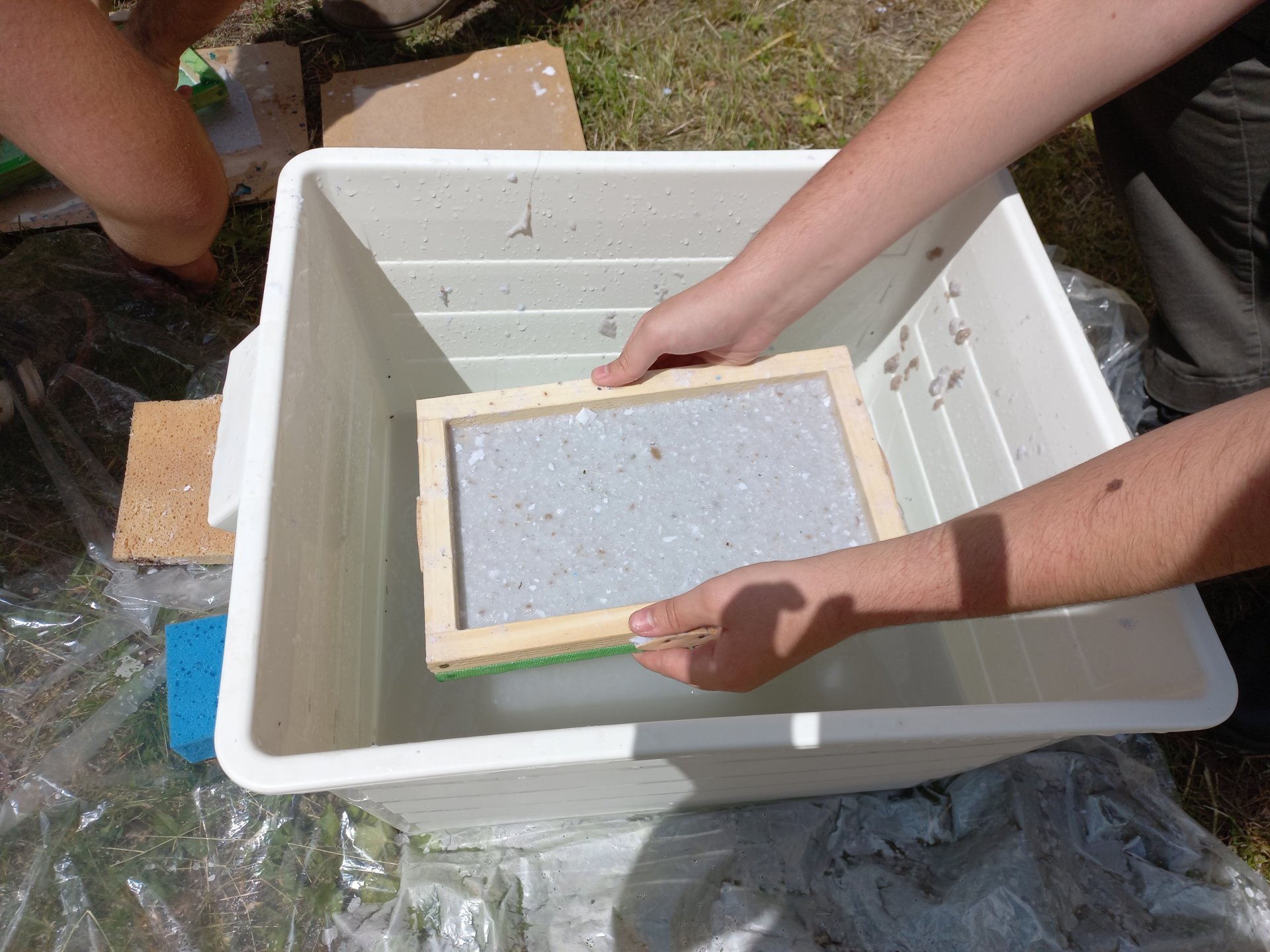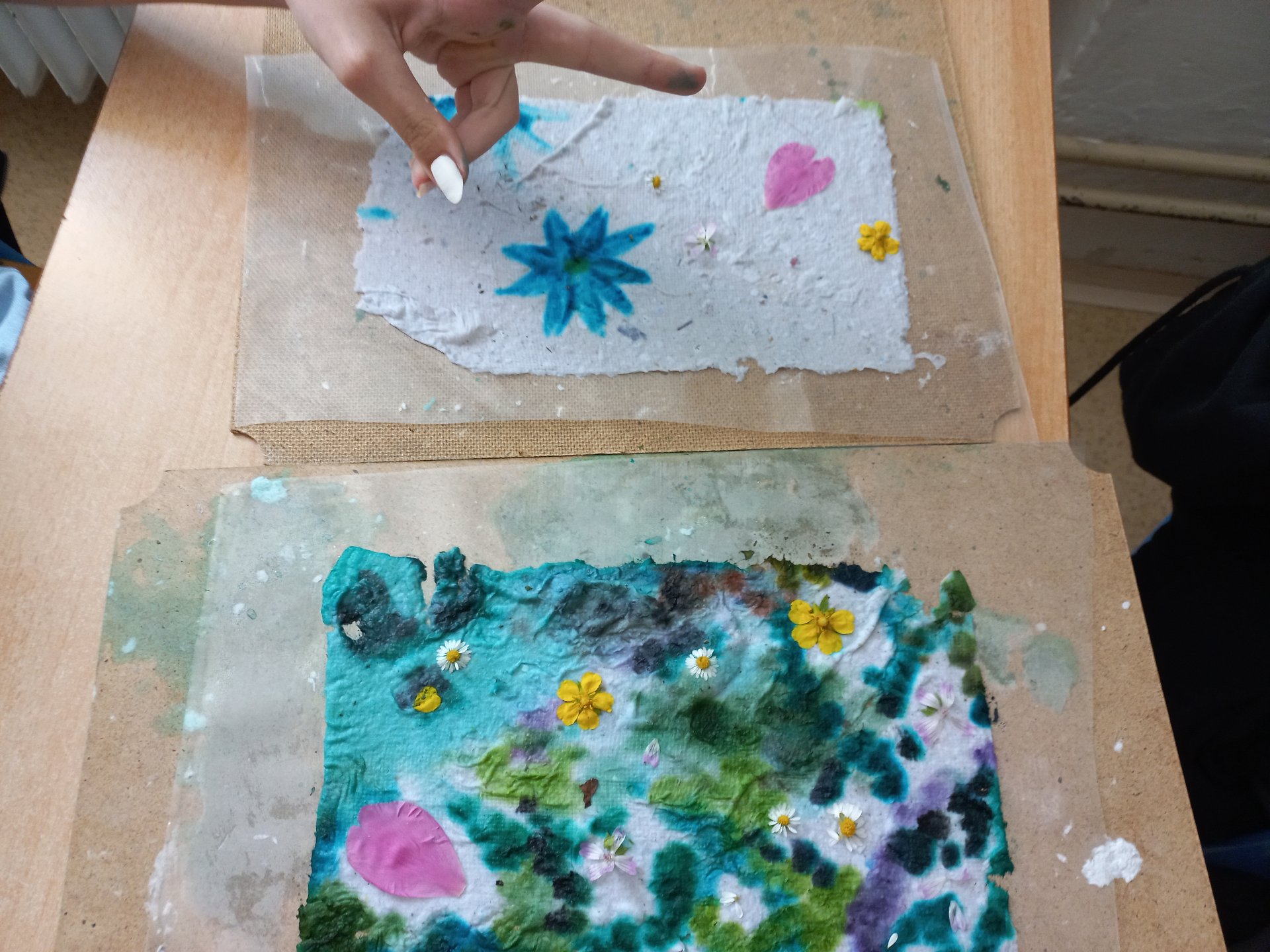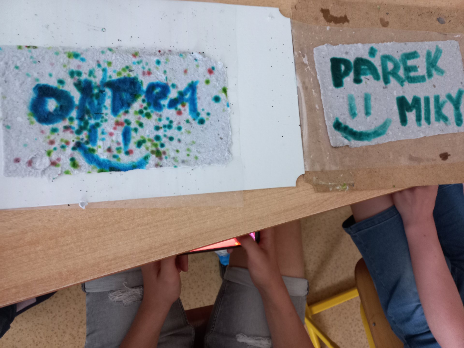 V rámci hodin výtvarné výchovy proběhlo v červnu vyrábění ručního papíru. Žáci byli seznámeni s postupem a pak si to vyzkoušeli v praxi. Svůj výtvor si ozdobili anilinovými barvami a přírodninami. Všem se výroba povedla.