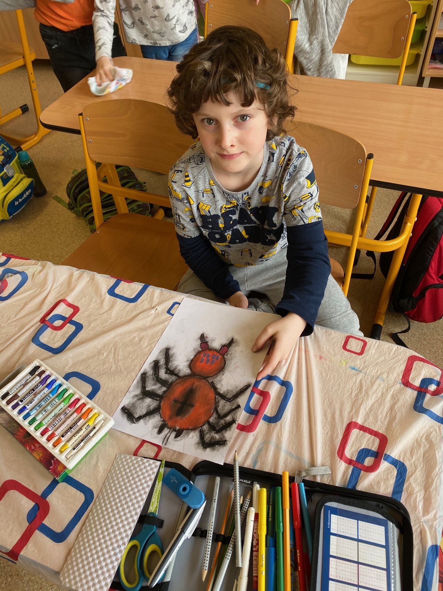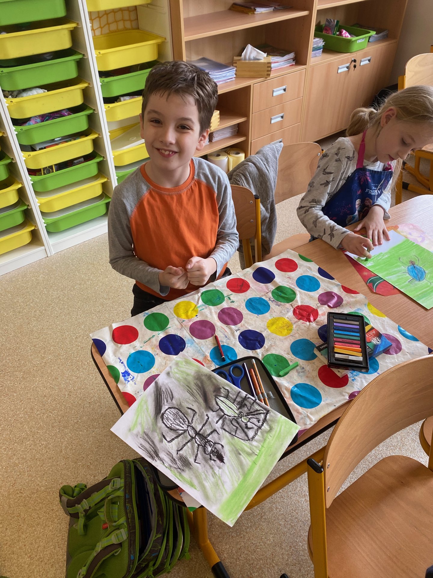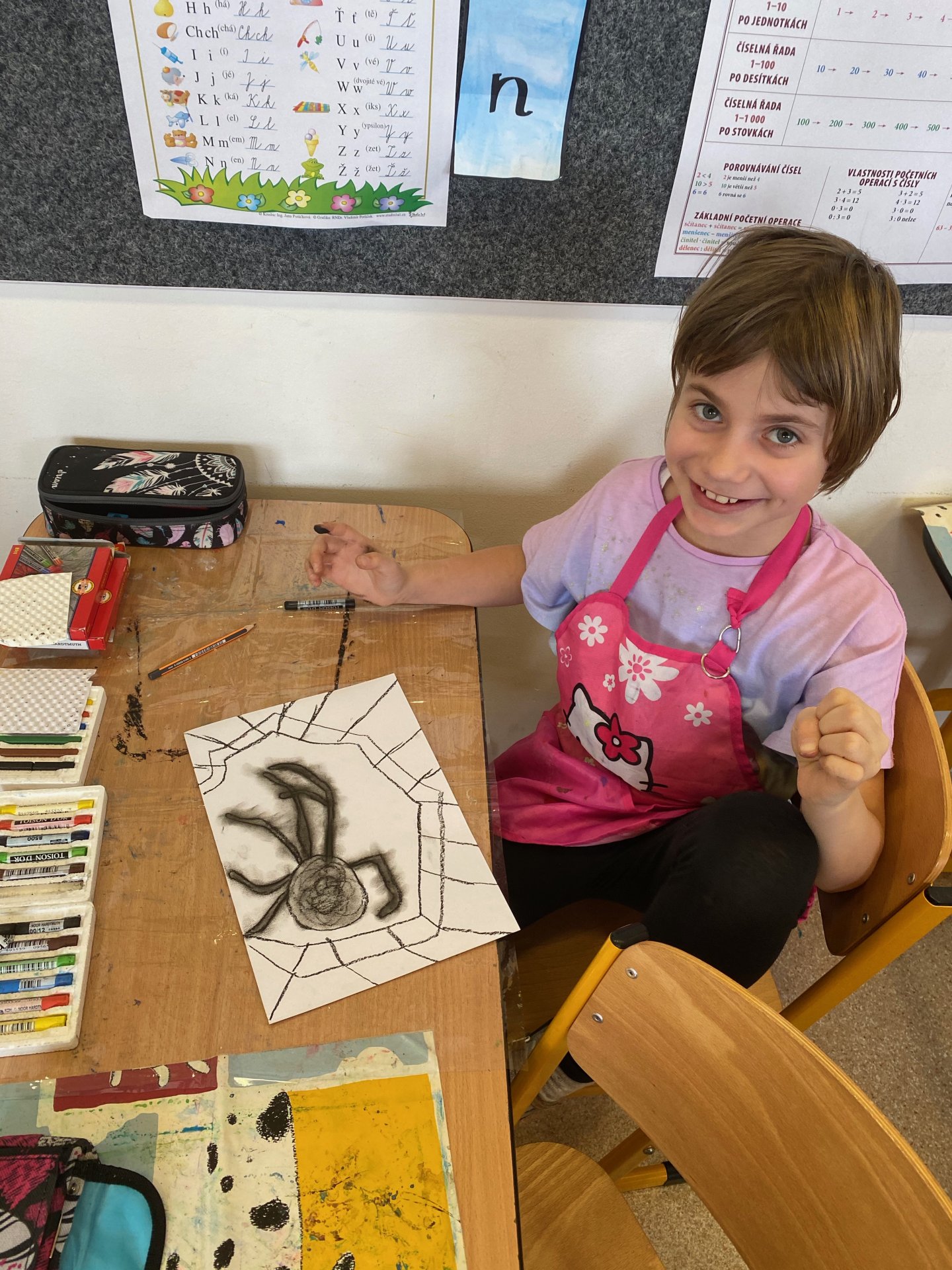 Samozřejmě, že ne ten skutečný - pouze namalovaný na čtvrtce. Ale povedl se - suché pastely jsou super a práce s nimi nám jde na výbornou !