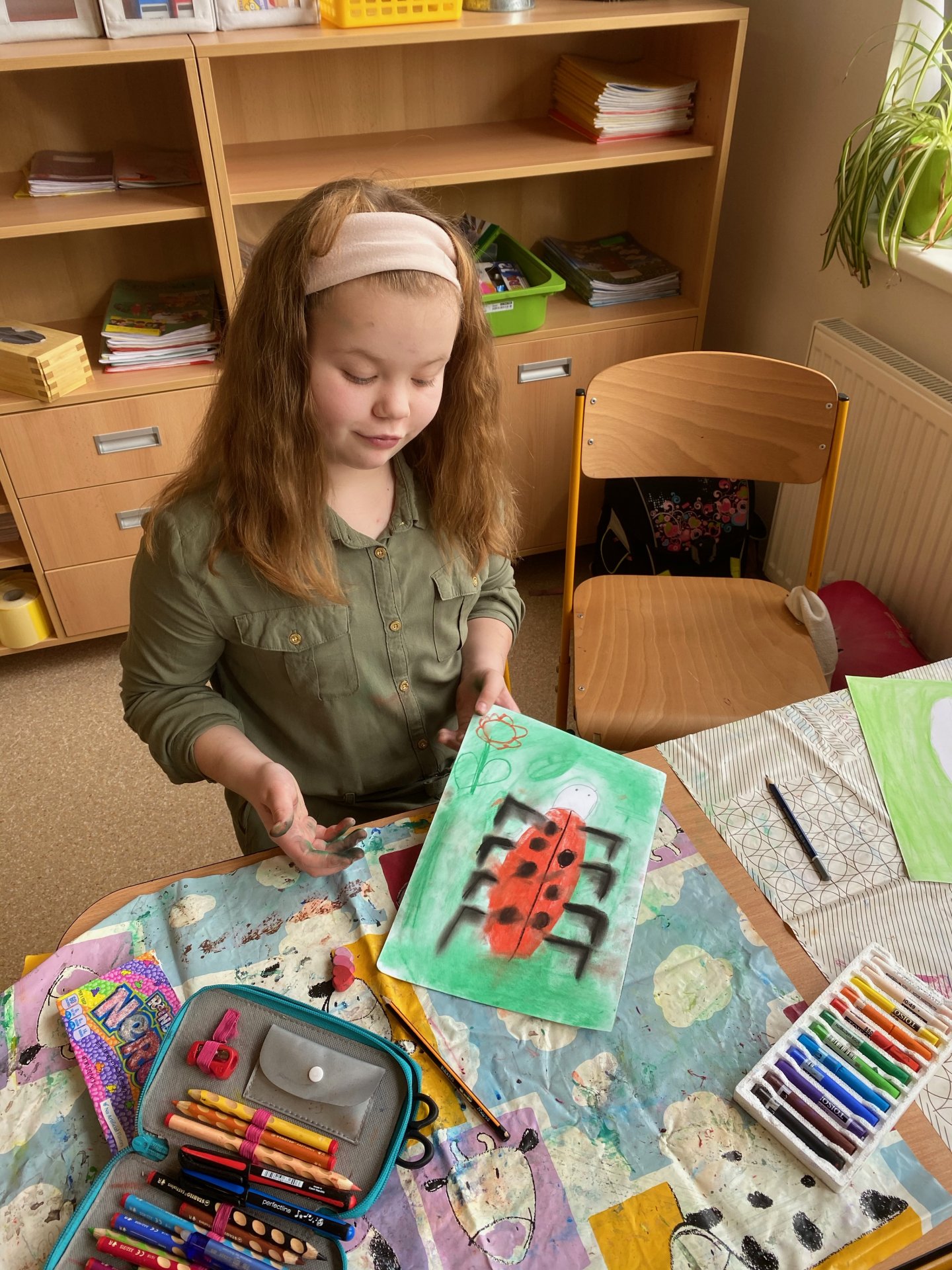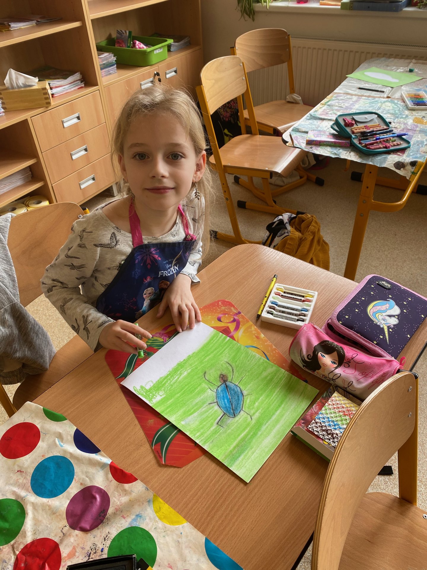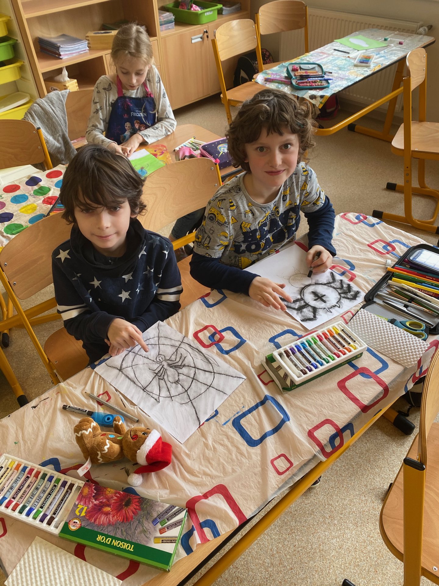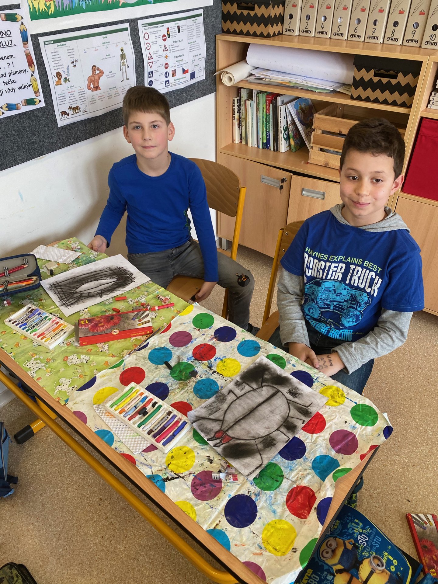 Samozřejmě, že ne ten skutečný - pouze namalovaný na čtvrtce. Ale povedl se - suché pastely jsou super a práce s nimi nám jde na výbornou !