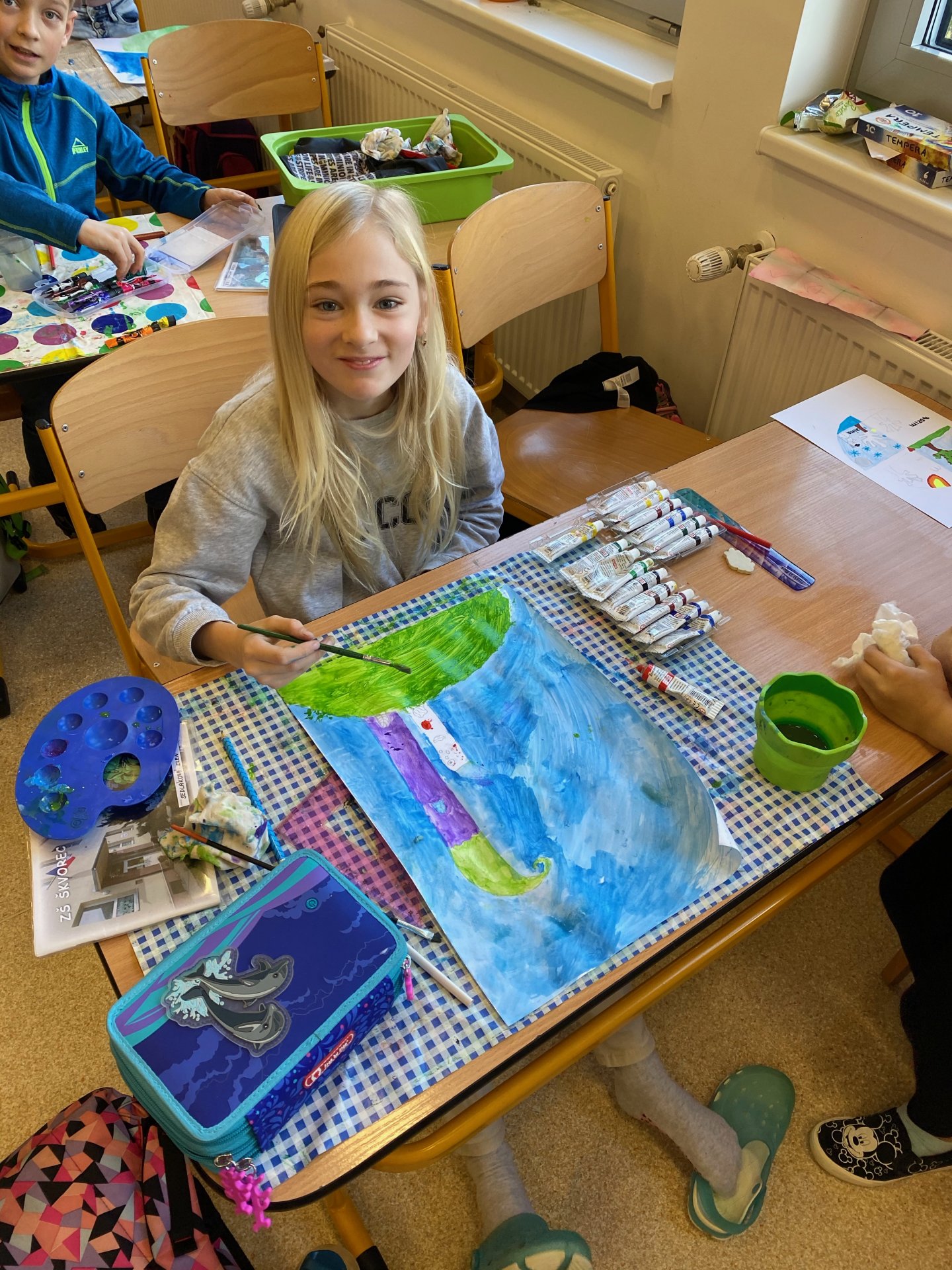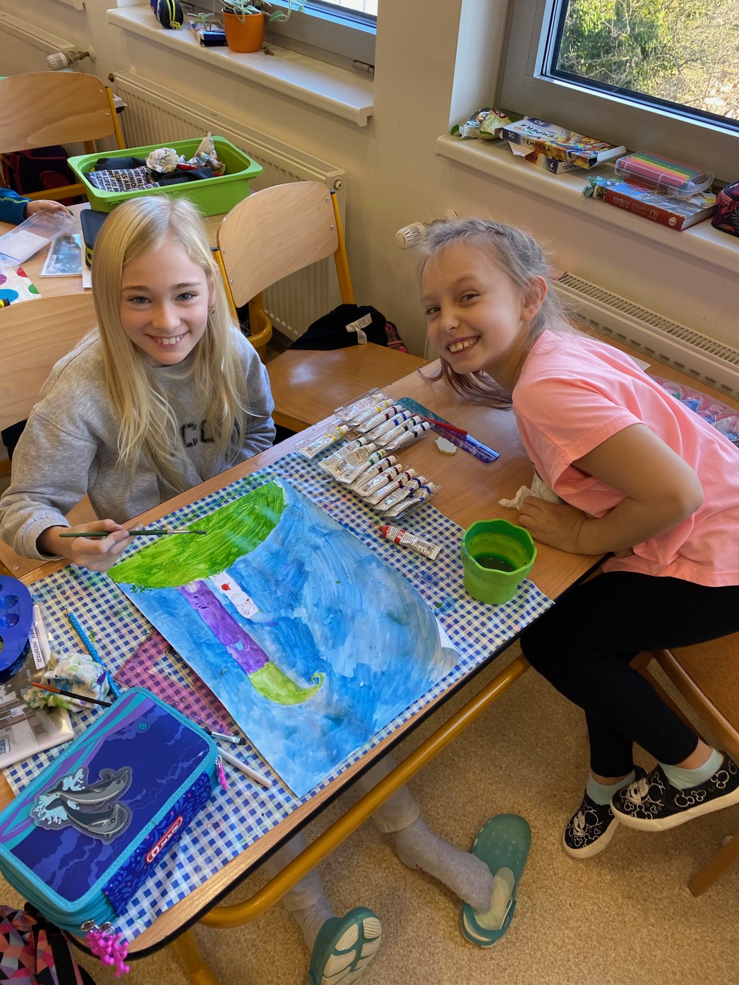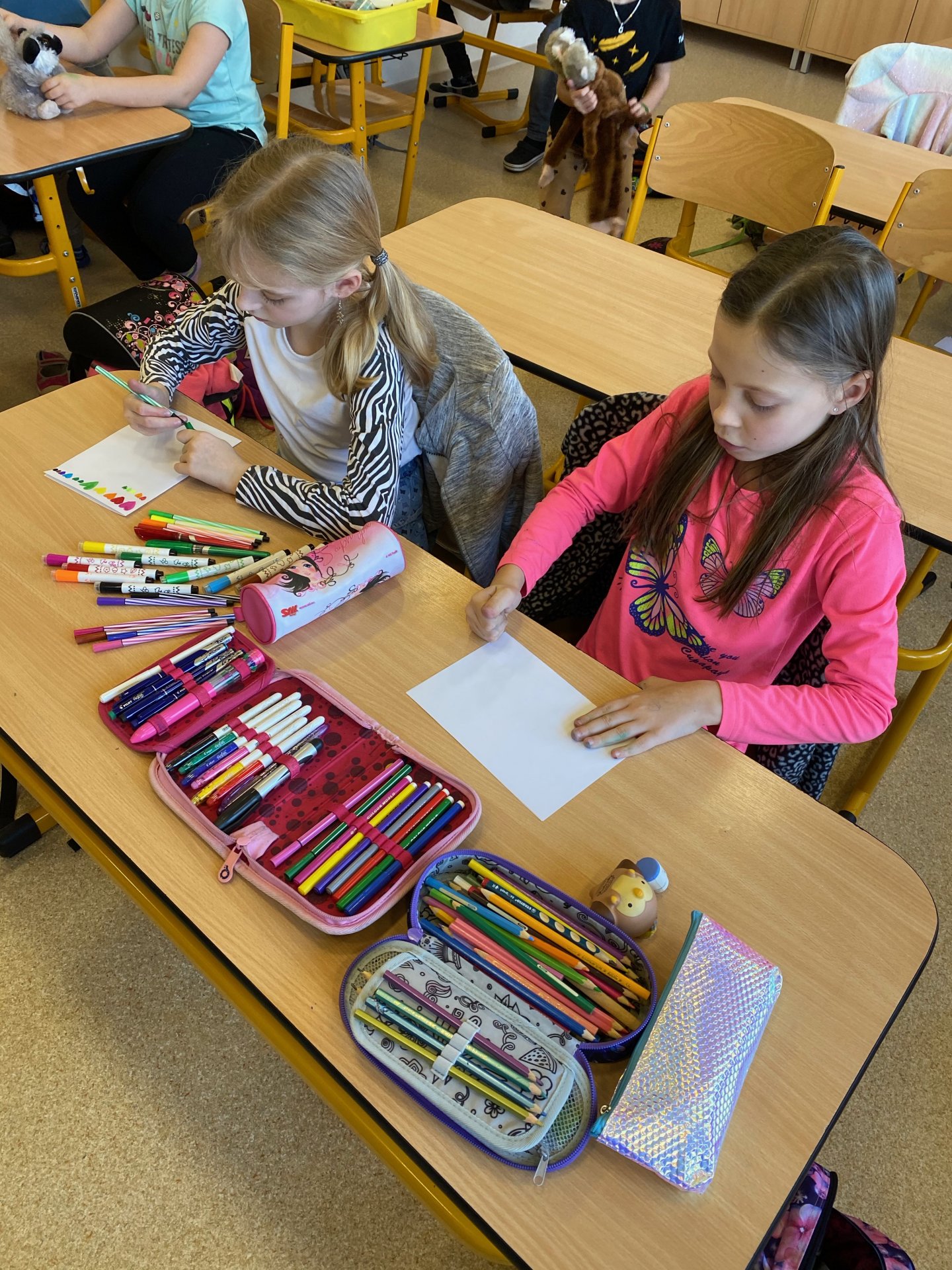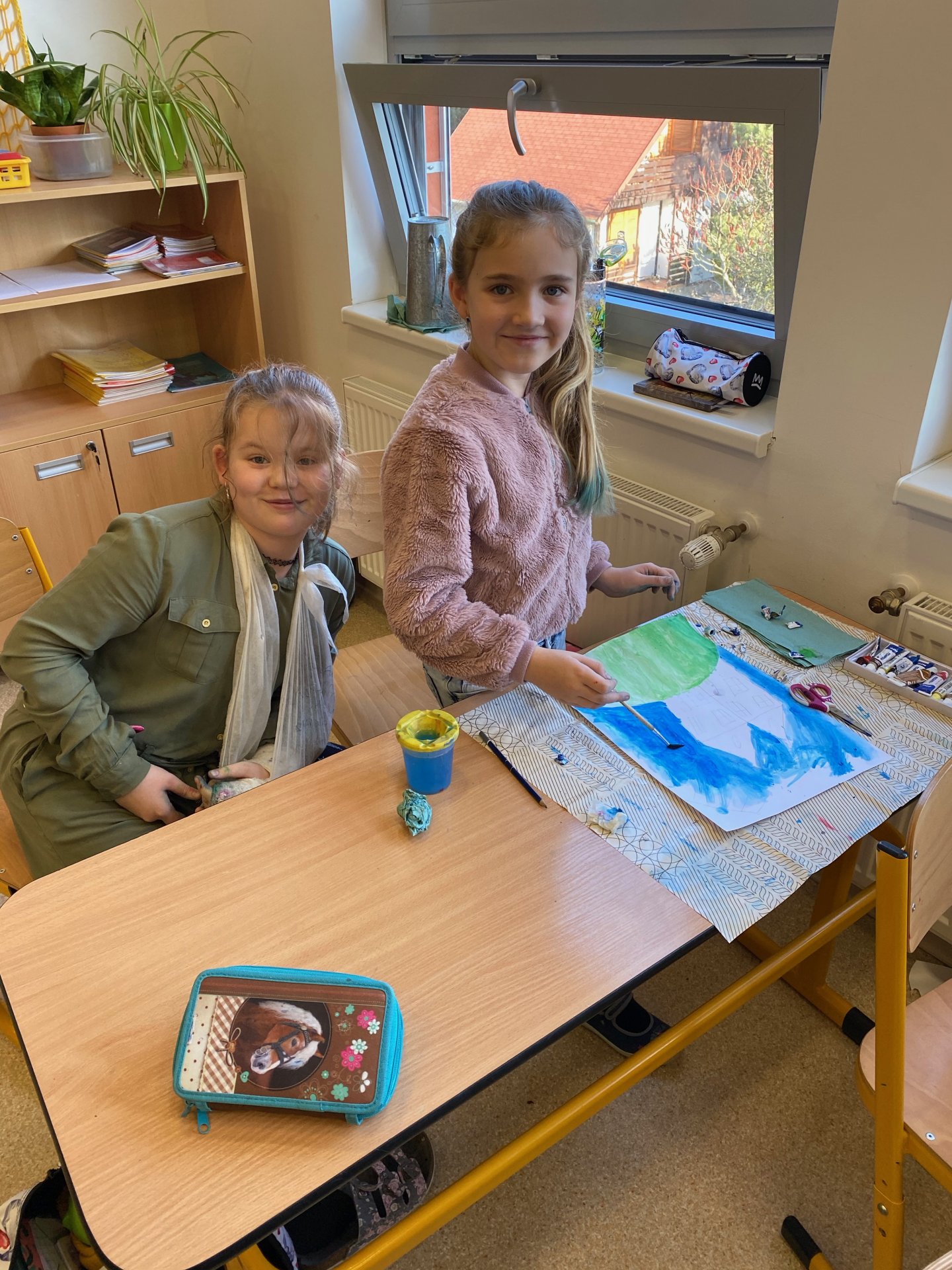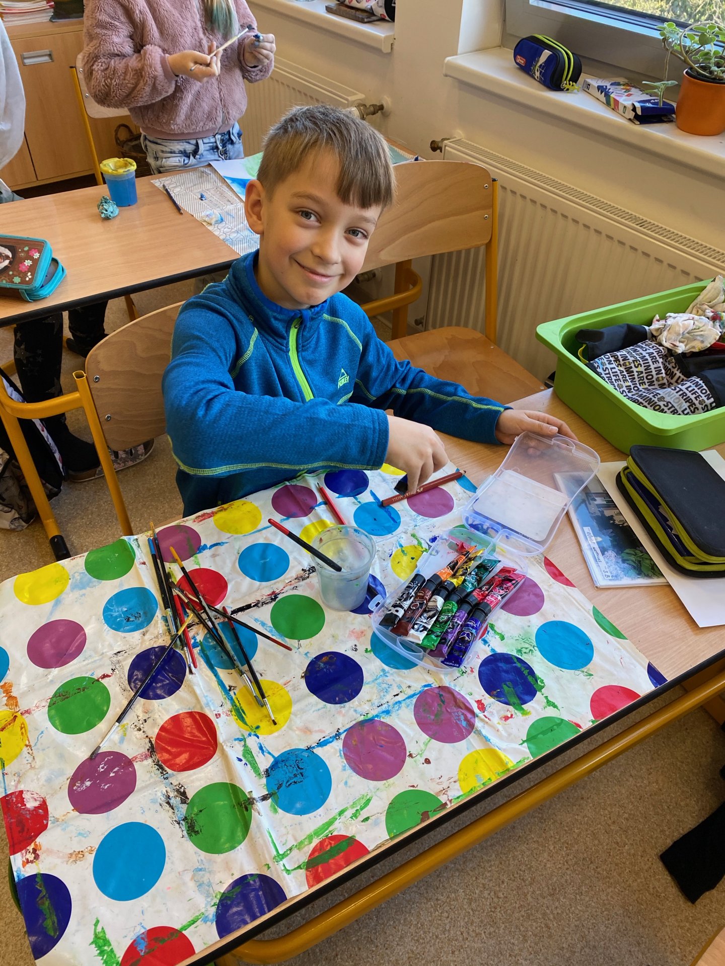 Hodiny výtvarné výchovy v každé třídě nejsou jen o výtvarné činnosti. Hodinám náleží pečlivá příprava pracovní plochy a také samozřejmě závěrečný úklid. A ve třídě 3.B tomu není jinak.
