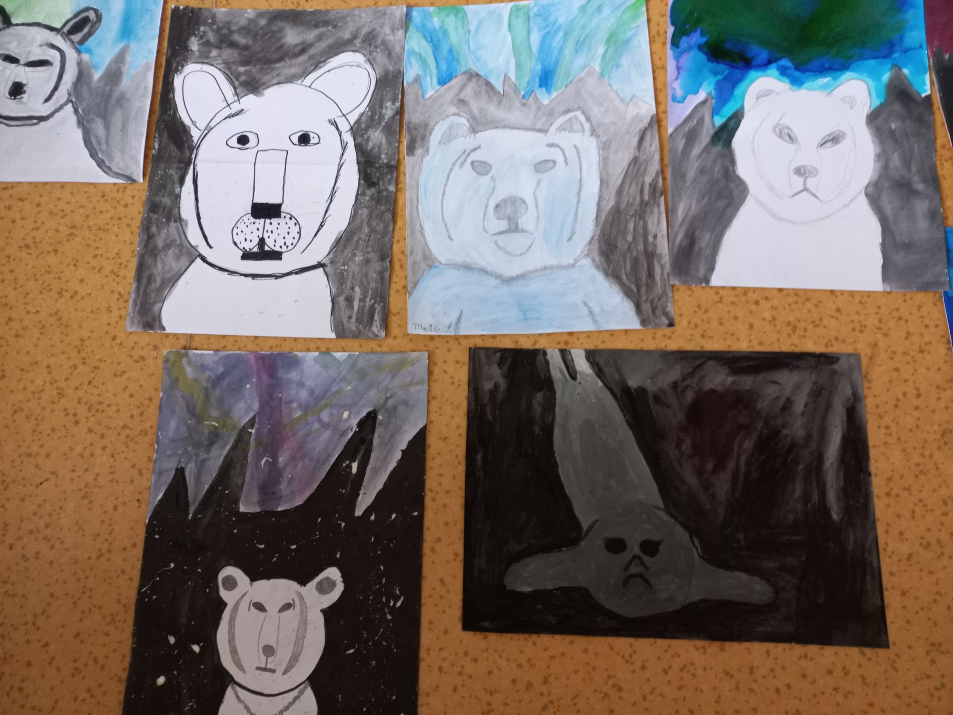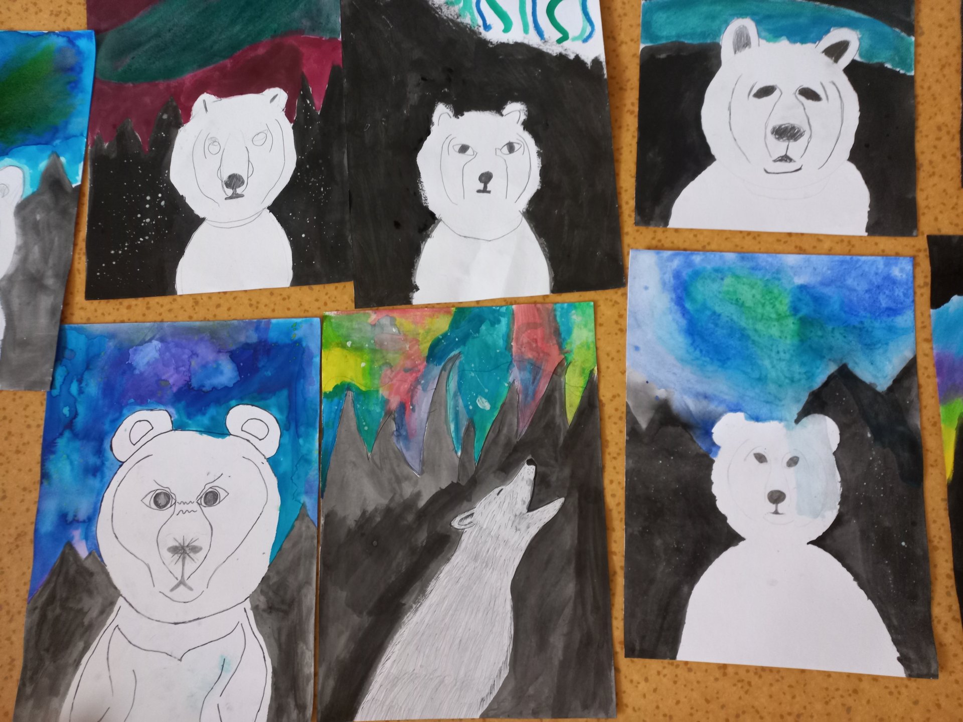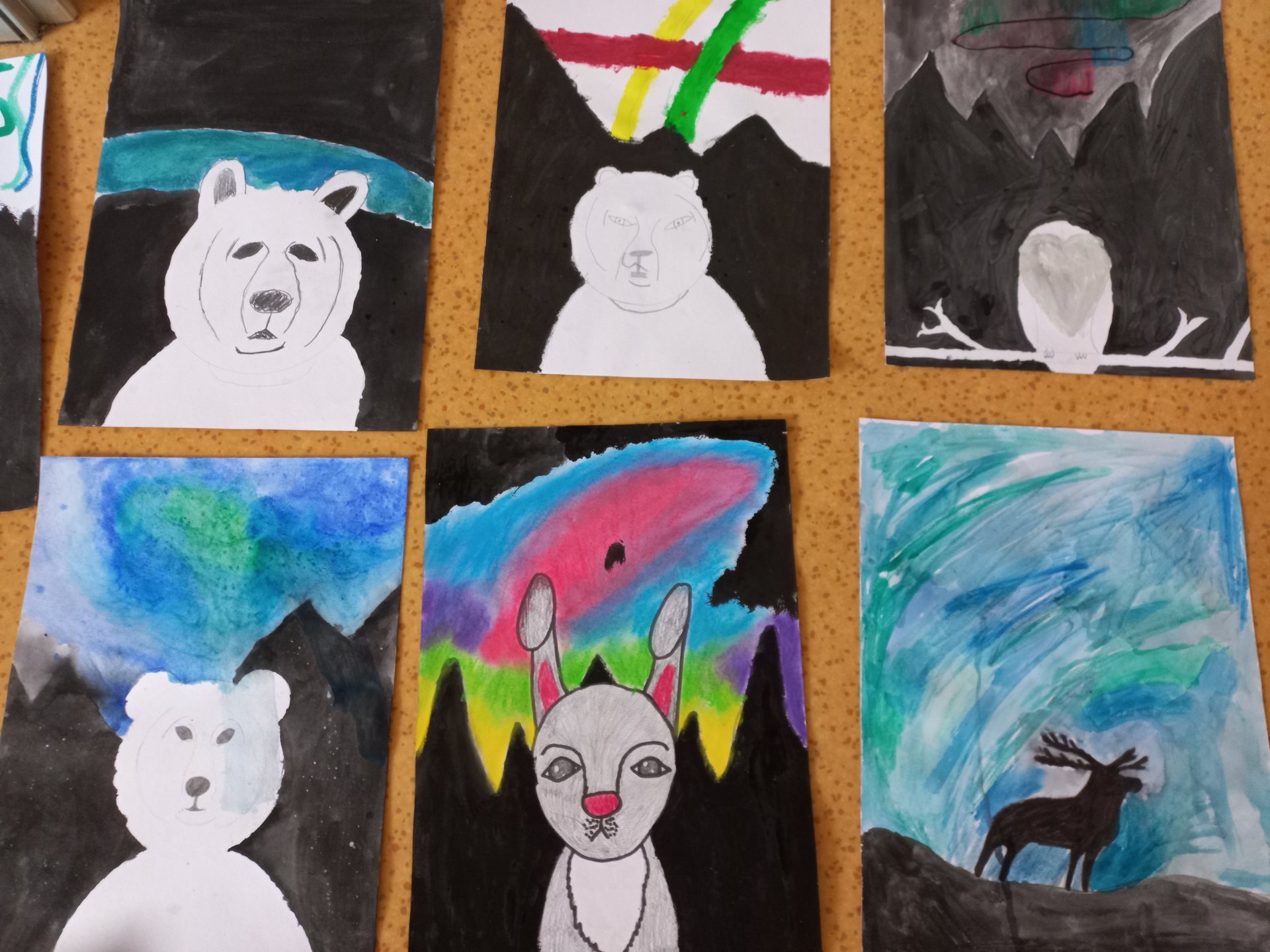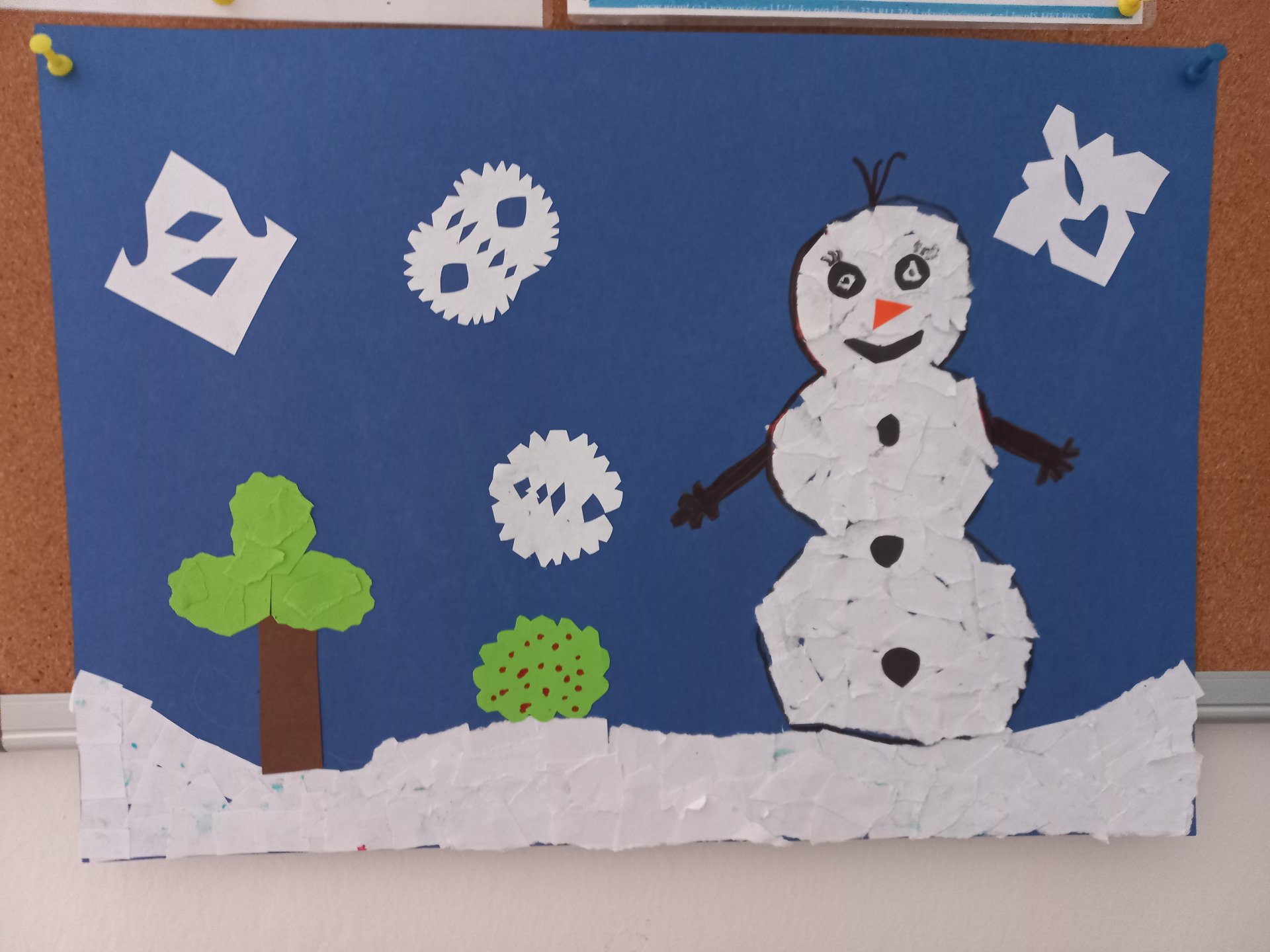 V listopadu si děti vyzkoušely tzn. “solený akvarel” a vznikaly tak hezké díla, která byla inspirovaná vesmírem. Dalším tématem bylo tvoření papírové lucerny, kdy děti vyzkoušely svou zručnost při vystřihování okének a tvarů, kterými prochází světlo. V rámci výzdoby školy děti dělaly originální návrhy na vánoční ozdoby (zvonek, baňka,..). Následovalo zpracování zimní mozaiky z papíru, dále malba temperovými barvami “Lední medvěd a polární záře”. Před Vánoci se děti učily vyrábět tašky, do kterých mohou svým blízkým dávat dárky.