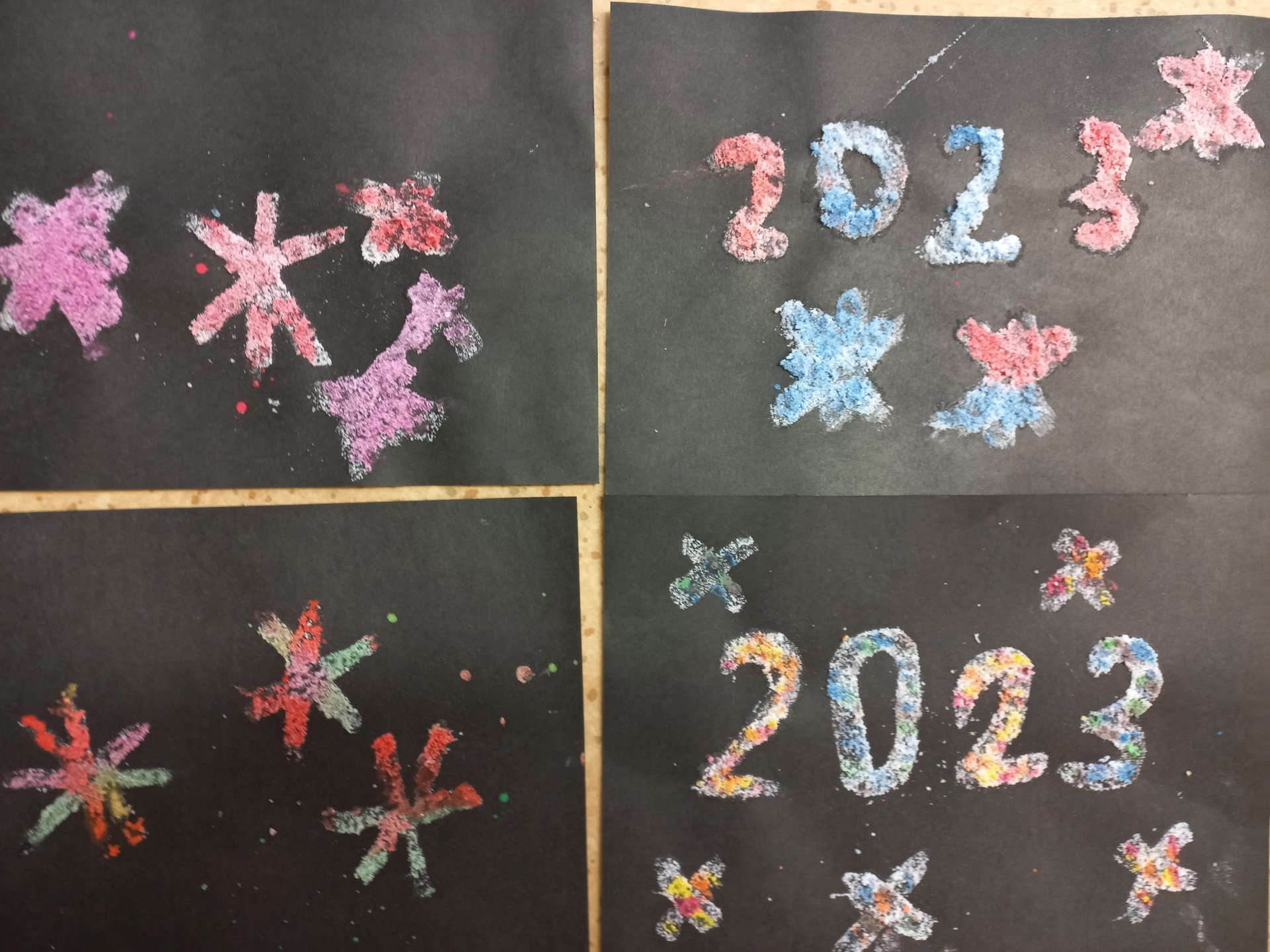 Leden jsme začali přivítáním Nového roku a každý si také vyzkoušel techniku s lepidlem, solí a vodovými barvami. Děti se zapojily do mezi třídního projektu, který byl zaměřen na vytváření kaligramů. Také se učily kreslit postavy v pohybu, což si vyzkoušely na různých sportovcích. Zabrousili jsme také do historie a děti vytvářely masku faraona a jeskynní malby. Dělali jsme také indický koberec “dhurries” formou koláže z barevných papíru a střapců z vlny.
