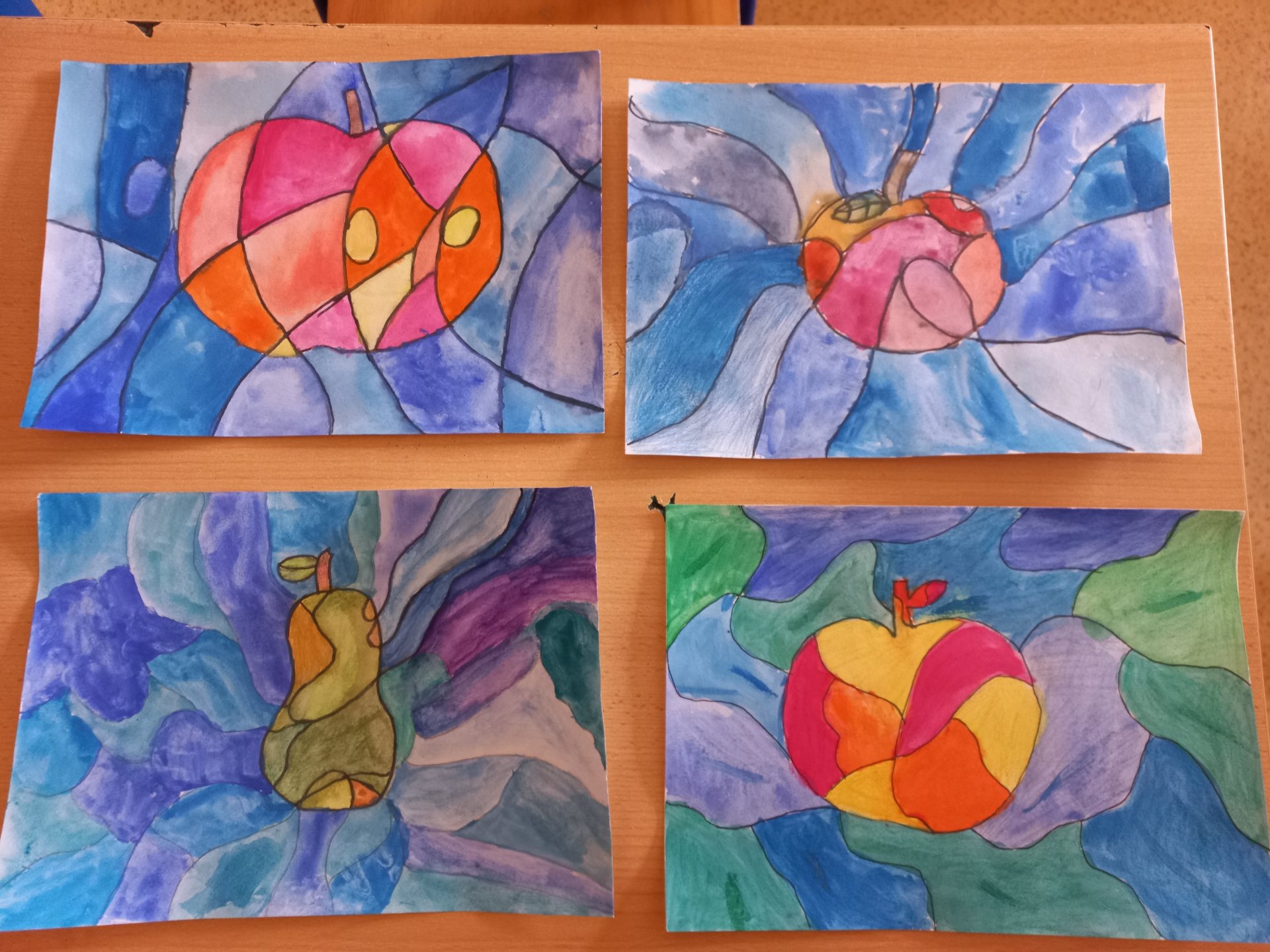 Výtvarnou výchovu jsme zahájili vzájemným seznámením. Děti vytvářely společenství své třídy - každý do jedné plástve nakreslil to, co ho charakterizuje. Dále byli žáci seznámení s celoškolním projektem, ke kterému posléze kreslili své nápady. Také se všichni zúčastnili mezitřídní soutěže - návrh na mikinu. Podzim jsme začali malbou ovoce ve spleti čar. Pokračovali jsme kresbou / malbou podzimního listí a vytvořili jsme také listy technikou origami. Listopad jsme zakončili tvořením k Halloweenu a vytvářením masek.