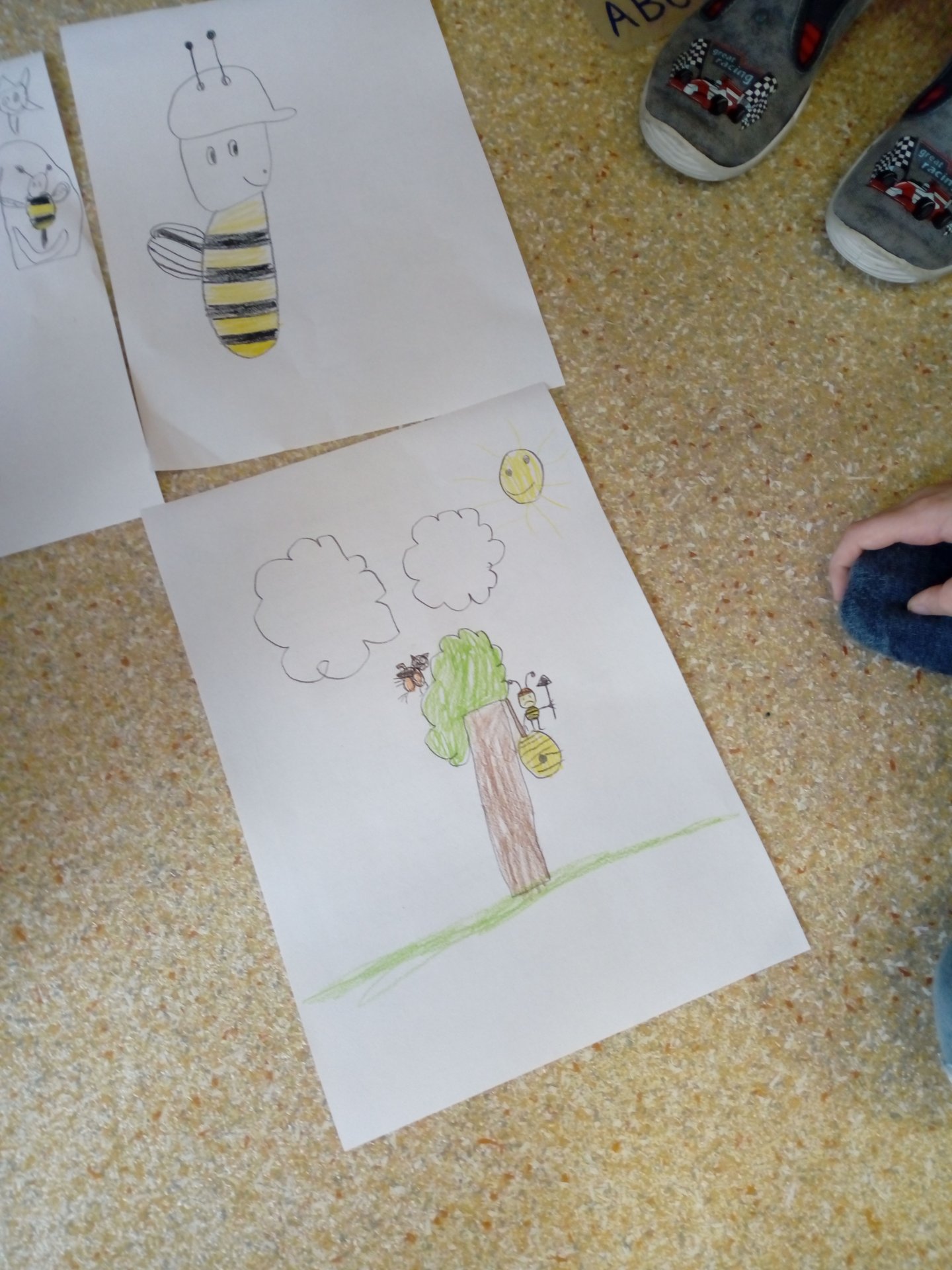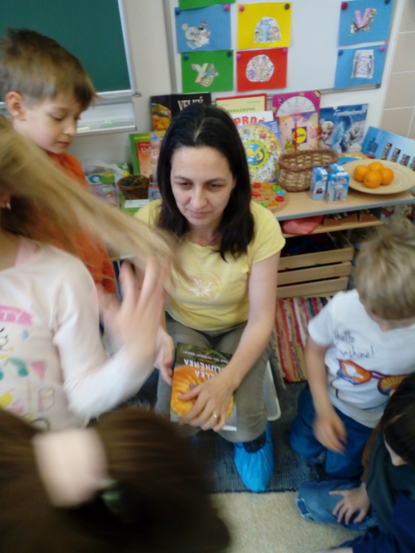 Tentokrát nás Matýskova maminka zavedla do světa včel. Prožili jsme jeden den ve včelím úlu s nově narozenou včelkou Sluněnkou. Nakonec své představy děti namalovaly a vytvořily krásné ilustrace.